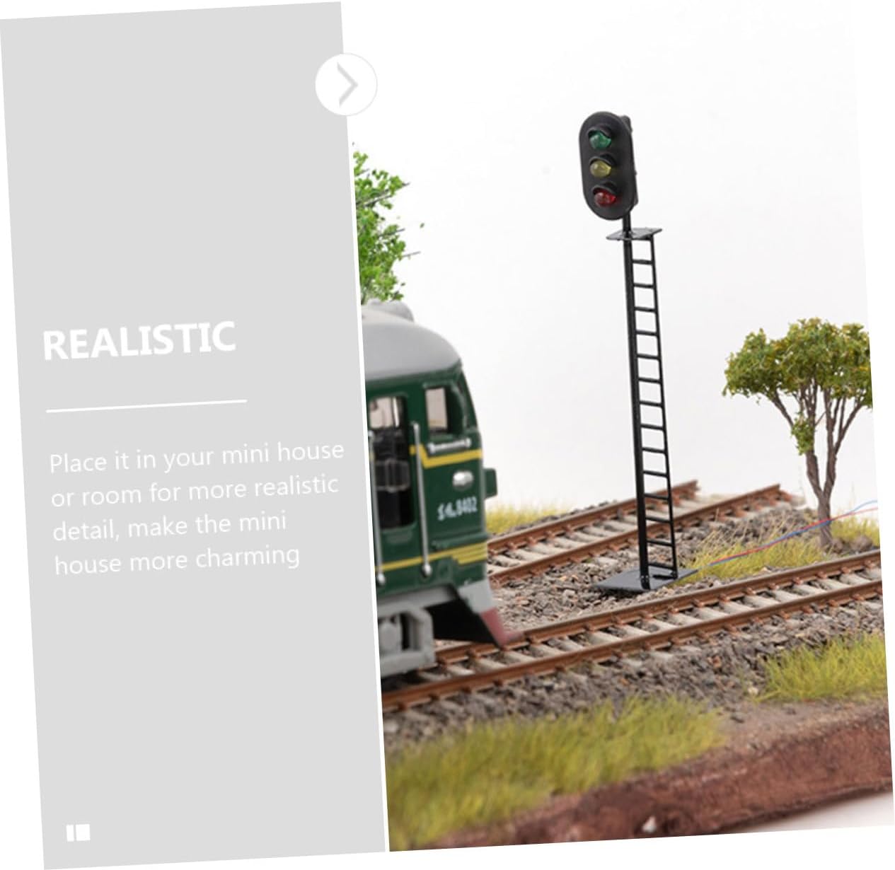 Mini semaforo: superficie liscia, aspetto semplice e vivace, decorativo, ornamento per la scena del tavolo di sabbia, giocattoli stradali. Simulazione del semaforo: l'ornamento del modello mini lampada di segnalazione è realizzato in materiale sicuro e affidabile, pratico da usare, modello semaforo ferroviario. Modello da tavolo con sabbia: di utilizzo multiplo, una buona decorazione, in particolare decorazioni paesaggistiche per mini case, giocattoli a semaforo. Set da gioco per il traffico: dimensioni compatte, facile da installare e rimuovere, facile da trasportare ovunque tu voglia, modello a lampada. Lampione stradale da tavolo in sabbia: adatto per mini casa, ottima decorazione per la tua mini casa, creazione di scene di colorate, giocattolo per semaforo.
