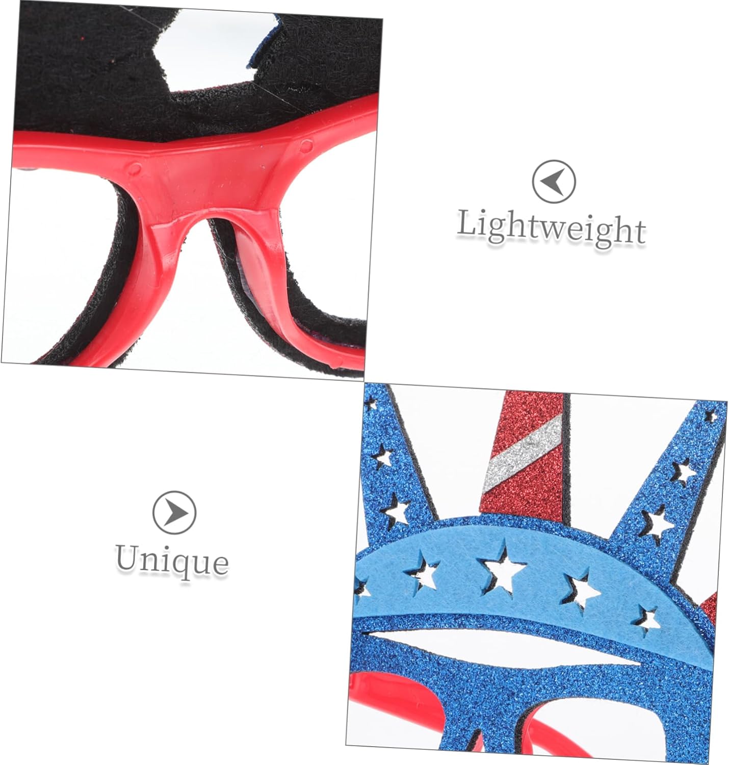 Design a tema: la statua del design aggiunge un tocco unico e memorabile alle tue foto, ornamenti patriottici, oggetti di scena per selfie Adatto a tutte le occasioni: ideale per eventi al chiuso che all'aperto, questi occhiali sono ottimi oggetti decorativi per qualsiasi celebrazione, divertenti oggetti di scena per cabine fotografiche, occhiali da sole per il dell'indipendenza Design unico: caratterizzati da elementi a forma di stella, questi occhiali mettono in risalto lo spirito del 4 luglio, aggiungendo divertimento a qualsiasi festa, oggetti di scena per cabine fotografiche patriottiche, occhiali patriottici Design a stella patriottica: il design a stella esalta l'atmosfera del dell'indipendenza, rendendo la tua celebrazione più piacevole, oggetti di scena per cabine fotografiche per feste, occhiali da sole della statua della libertà Comodi da indossare: i materiali leggeri garantiscono che questi occhiali siano comodi da indossare a lungo termine durante le celebrazioni, le decorazioni patriottiche, i costumi del dell'indipendenza