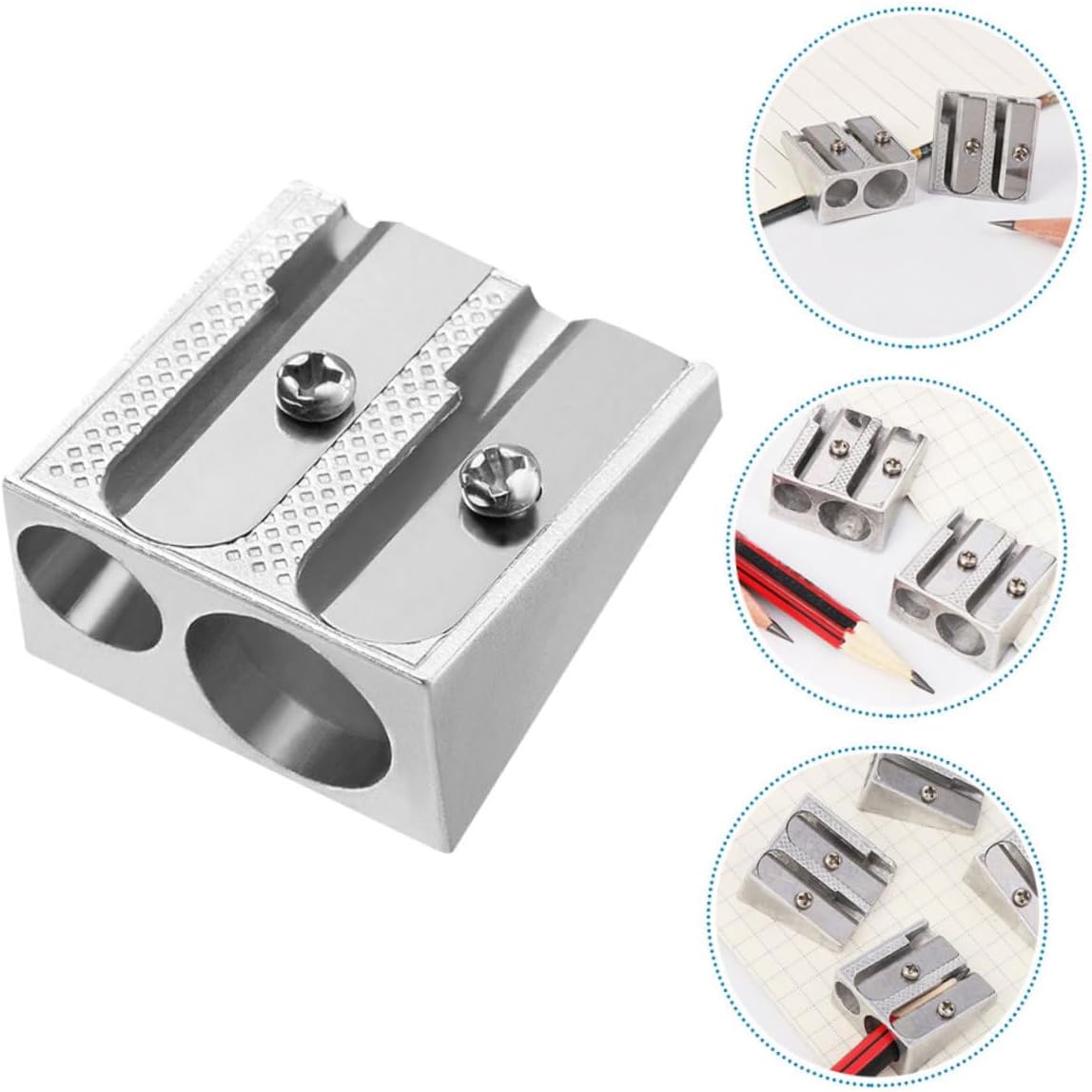 Portatile e pratico: compatto e facile da trasportare, questo temperamatite è ideale per studenti, professionisti e artisti che necessitano di strumento affidabile in movimento, temperamatite creativo, temperamatite vintage Comodità portatile: leggero e compatto, questo temperamatite è facile da trasportare, il che lo rende adatto per l'uso a scuola, in ufficio o in viaggio, piccolo temperamatite per , temperamatite spesso Design creativo: l'innovativo temperamatite in lega di alluminio a doppio foro semplifica l'affilatura delle matite, migliorando l'efficienza del lavoro, temperamatite per pastelli, mini temperamatite Affilatura di precisione: questo temperamatite assicura un'affilatura precisa, fornendo punte di matita ben appuntite per migliori esperienze di scrittura e disegno, temperamatite per schizzi, temperamatite per matite colorate Design innovativo: l'affilatrice in lega di alluminio a doppio foro presenta un design creativo che semplifica il processo di affilatura delle matite, mini temperamatite manuale, temperamatite