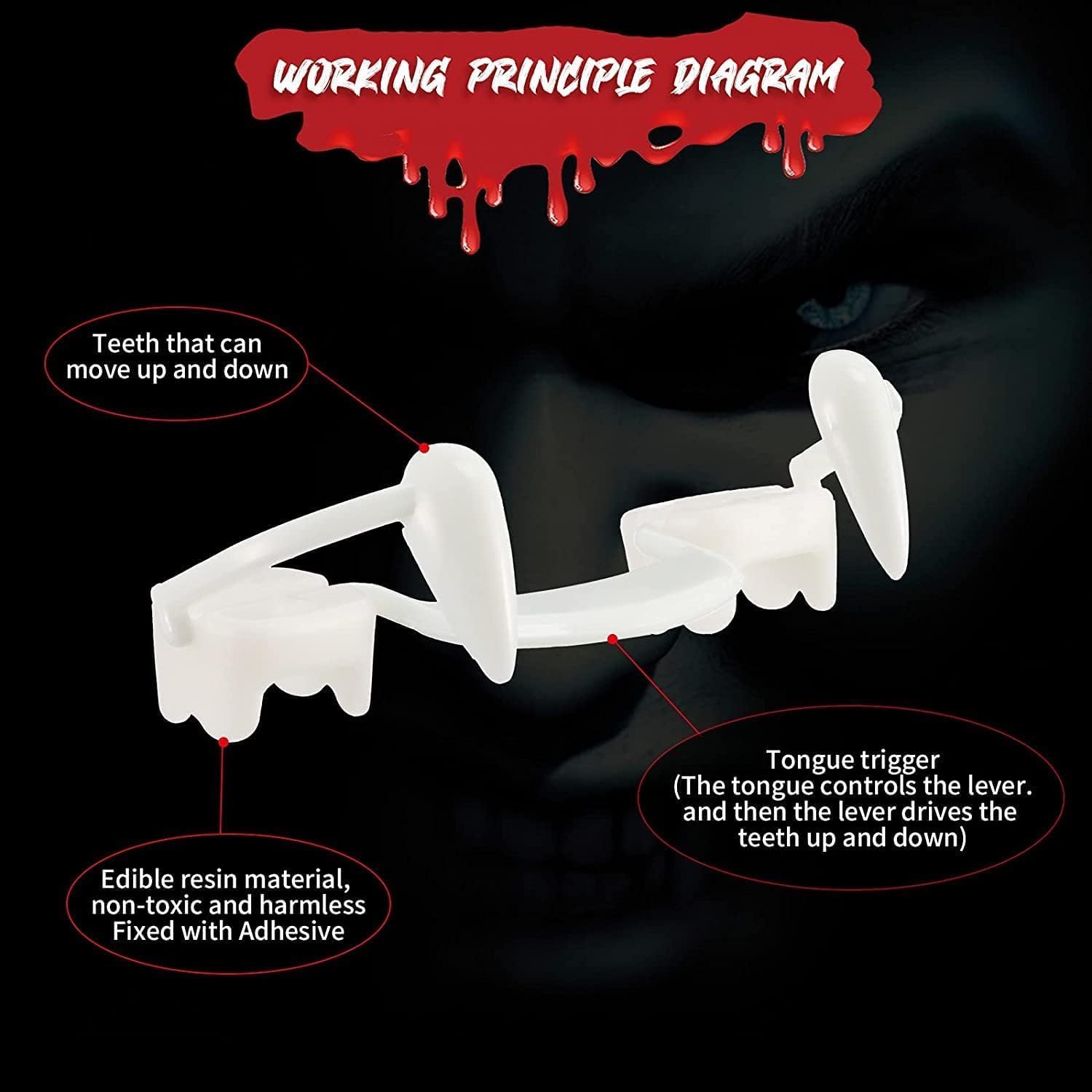 【Zanne da Vampiro Retrattili】Le nostre finte zanne da vampiro adottano un design retrattile. Controllando il dispositivo nascosto all'interno attraverso la lingua, puoi controllare quando le zanne appaiono e scompaiono, come un vampiro, controllando le tue zanne per espandersi quando necessario per trasformarti completamente in un vampiro realistico e ritrarre le tue zanne quando non ne hai bisogno , proprio come le normali zanne per essere invisibili. 【Materiale di Qualità】Le zanne dei vampiri di Halloween sono realizzate in resina composita di alta qualità, sicure, resistenti, possono essere riutilizzate lavandole con acqua. Ti permette di mostrare le tue zanne da vampiro ai tuoi amici sempre e ovunque. ed è facile da usare con la forma della bocca della maggior parte delle persone. e puoi sciacquare accuratamente con sapone e acqua tiepida prima dell'uso, regalandoti un'esperienza di utilizzo confortevole. 【La Confezione Include】Riceverai 4 zanne da vampiro retrattili. La dimensione dei denti di ogni terribile vampiro è di circa 2,4 x 1,2 x 0,7 pollici; Sono confezionati in una piccola scatola, sufficiente per soddisfare i tuoi oggetti di scena in costume di Halloween e le tue esigenze di ricambio, regalandoti una meravigliosa ed emozionante festa di Halloween. 【Design Vivido e Unico】Il design unico delle zanne zombi vampiri retrattili ti porta nel mondo dell'orrore e dei veri vampiri. Le zanne del vampiro sono piccole e facili da trasportare, ed è più comodo e facile da indossare e da usare in un unico pezzo, facile da offrire intrattenimento allo stesso tempo non sarà facilmente visto, come un vero vampiro, il controllo libero del suo zanne in fuori e ritratta. Sbrigati e stuzzica i piccoli amici che trascorrono insieme Halloween. 【Ampiamente Applicabile】Le zanne da vampiro di Halloween retrattili non possono essere utilizzate solo nella vita quotidiana, ma anche accessori per costumi da vampiri, lupi mannari, zombi e cosplay, adatti per feste a tema horror, feste di Halloween, feste in maschera, feste in maschera, carnevale, Natale. Rendi il tuo costume cosplay più realistico, abbinalo ai tuoi vestiti da vampiro, sbalordisci tutti e regalati un'esperienza indimenticabile.