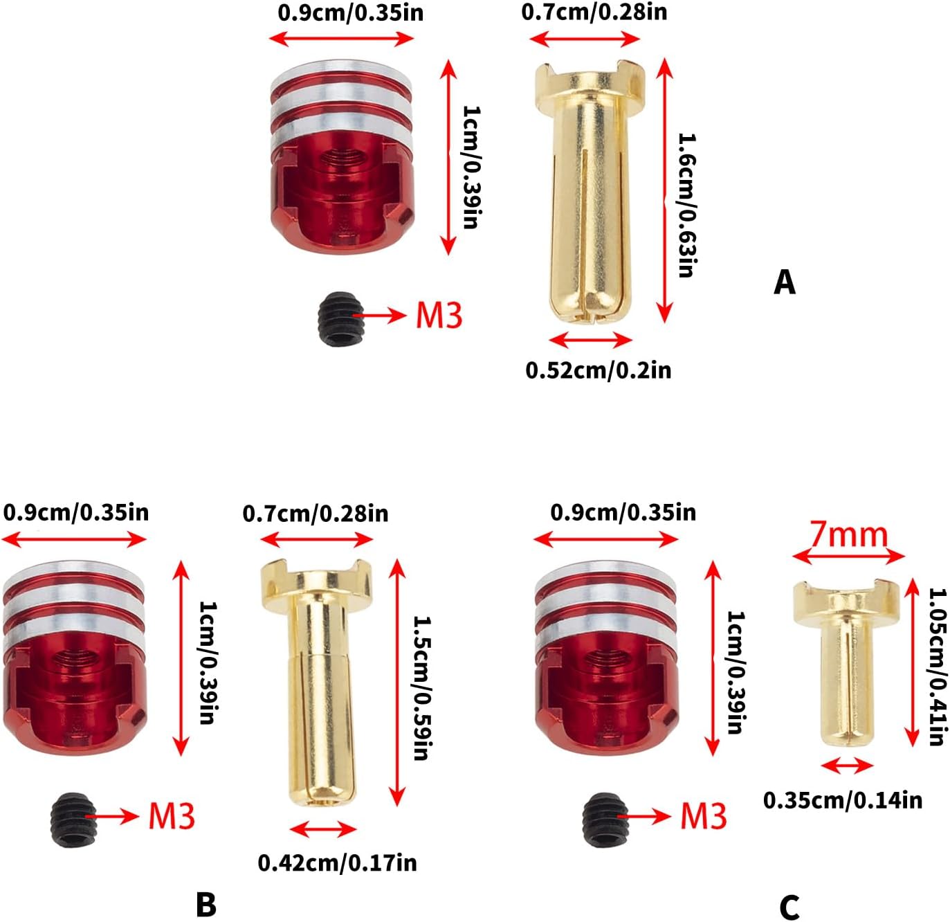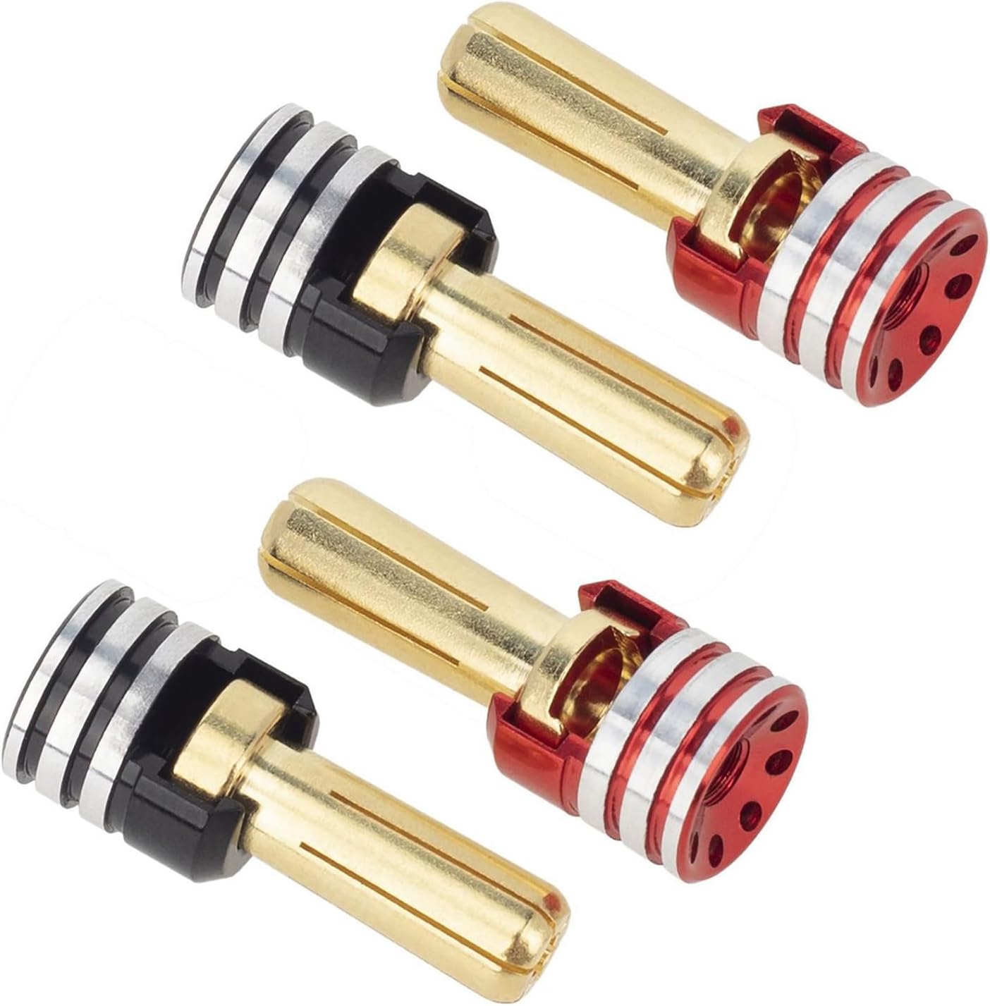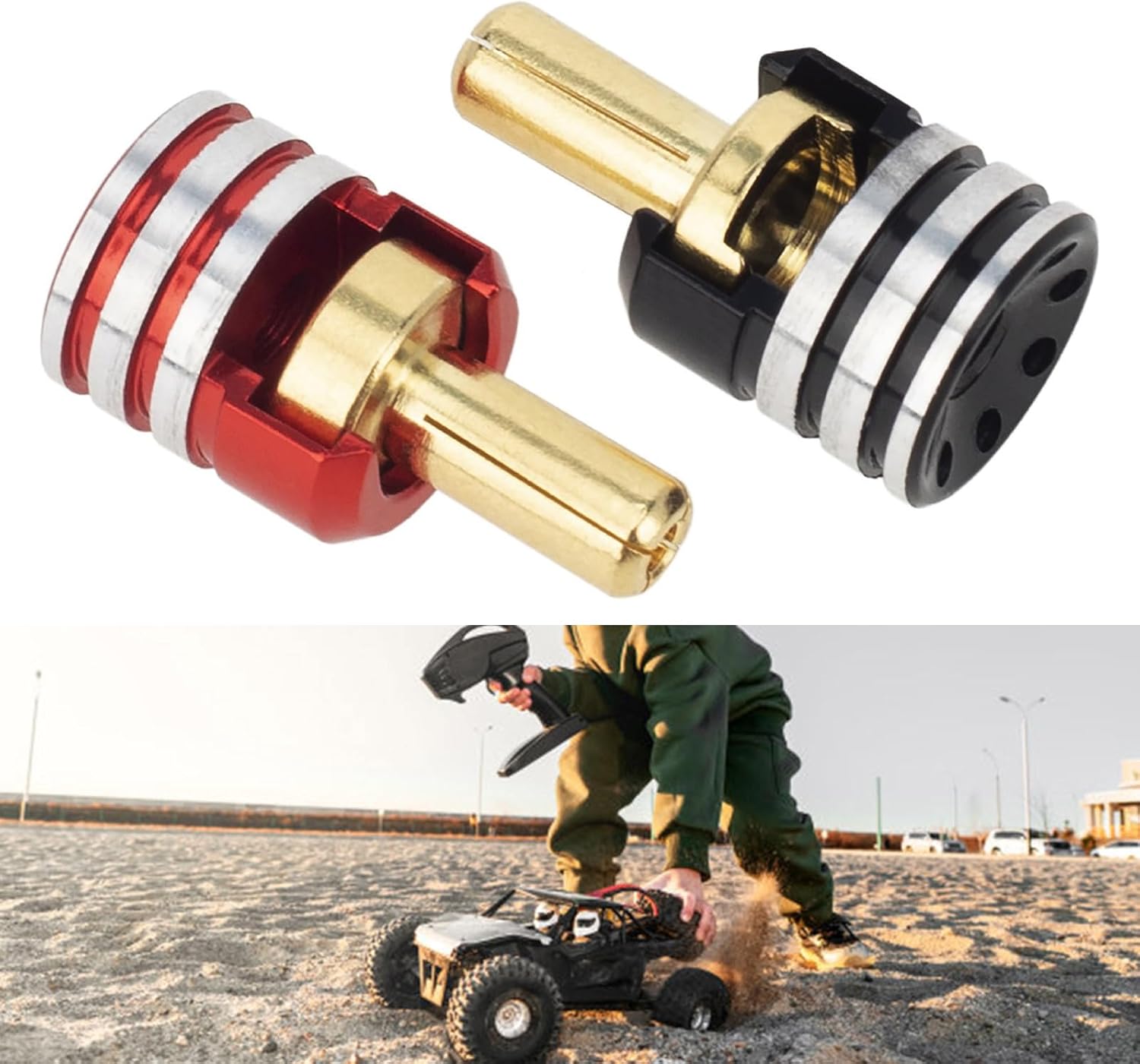 Il design facile da installare consente di far scorrere le maniglie del radiatore sopra la spina in dotazione e fissarle con una vite fissa per un maggiore comfort e una migliore stabilità del cavo Ideale per gli appassionati di telecomandi, i giocatori di auto e gli ingegneri professionisti, questo accessorio soddisfa le diverse esigenze degli utenti e migliora l'esperienza complessiva dei veicoli a lunga distanza Migliorare le auto con telecomando con connettore a banana, design per un'efficiente distribuzione del calore e una maggiore durata della batteria per garantire un alimentatore stabile per i modelli di scala 1/10 Utilizza lega di alluminio selezionata e ottone, questi connettori sono resistenti all'usura e offrono un design a spina di banana di 3 dimensioni per una connessione sicura e perfetta Perfetti per l'uso in modelli di telecomandi, droni e altri dispositivi elettronici che richiedono una gestione termica efficiente, questi connettori offrono prestazioni migliori negli ambienti più esigenti.