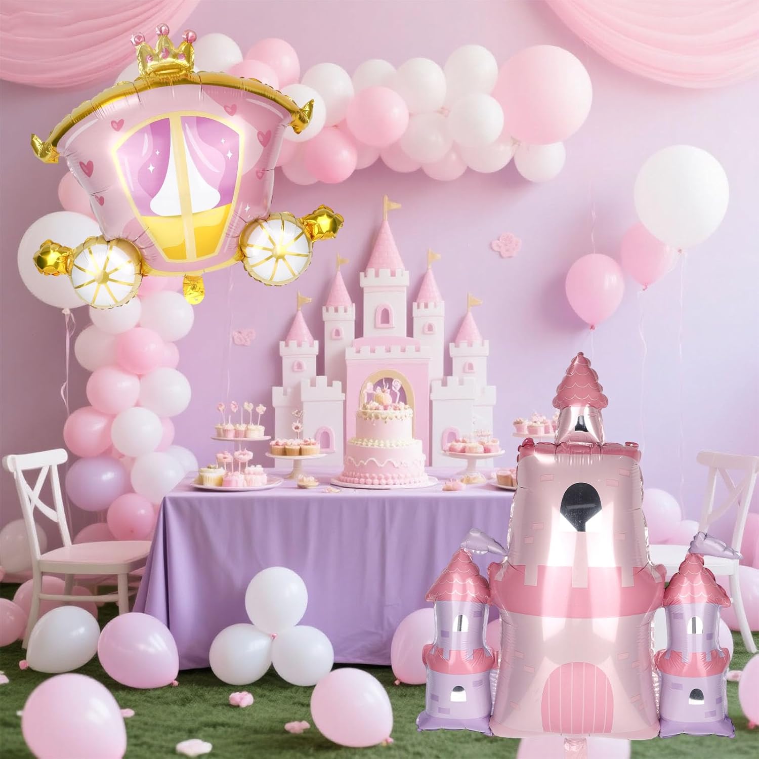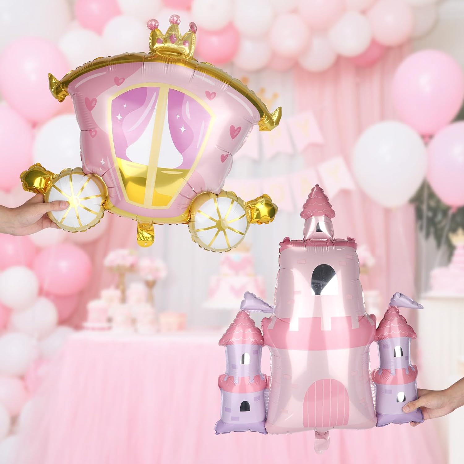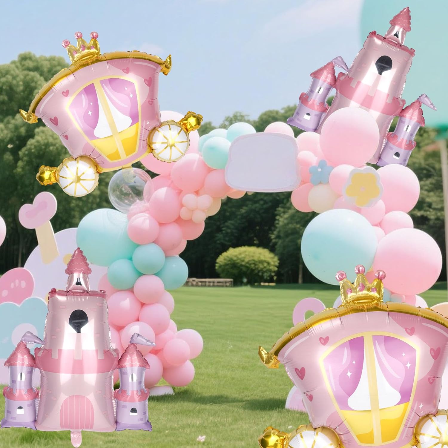Pacchetto incluso: otterrai 4 pezzi di palloncini da festa della principessa e arriverai con 1 nastro e 1 paglia. Sono 2 pezzi di palloncini del castello e 2 pezzi di palloncini in carrozza, che possono soddisfare le esigenze della decorazione del gruppo. Materiale fantastico: questo pallone da festa della principessa è principalmente realizzato in materiale per film in alluminio affidabile, che è forte e resistente, non facile da strappare e sbiadire e può mantenere il suo stato per molto tempo dopo essere stato gonfiato. Bellissimo design: questo pallone da festa adotta principalmente il design del tema principessa di Castle and Carriage, che è bello e alla moda, rendendo la decorazione della tua festa più affascinante e lasciando ricordi indimenticabili. Ampiamente usato: i nostri palloncini da festa della principessa sono adatti per varie occasioni di feste come decorazioni, come feste di compleanno, feste a tema principessa, docce per bambini o feste di laurea e sono molto versatili. Dimensioni adatte: la dimensione del nostro palloncino di carrello è di 63x74 cm e la dimensione del palloncino del castello è di 79x65 cm, il che è abbastanza grande da rendere più gioiosa l'atmosfera della tua festa.
