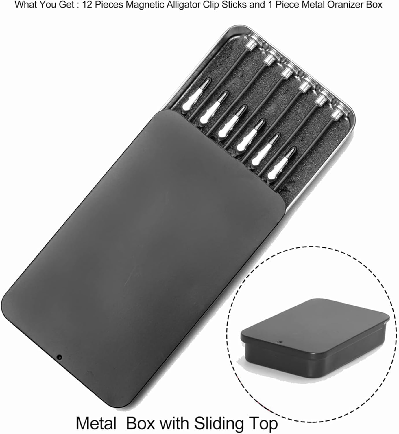 Scatola organizer in metallo: questa clip per cabina in metallo è anche una scatola per organizzare i bastoncini, rendendola un regalo perfetto per gli appassionati di modellini in miniatura. in gomma resistente: la copertura in gomma isolante migliorata non danneggerà gli oggetti bloccati e aiuterà i modellisti a proteggere le parti del modello dai graffi. Inoltre, il design giunture della punta garantisce che la pinza a coccodrillo fissi saldamente le lavorazioni di modelli pesanti o piccoli causare danni. flessibile con morsetto a coccodrillo: l' flessibile può aiutare a regolare le parti del modello a qualsiasi angolazione, facilitando il disegno di piccole parti del modello. Forte magnetica: l' con morsetto a coccodrillo è dotata di un potente magnete che può stare stabilmente su una base tremare. Puoi posizionare facilmente il bastoncino su una base di metallo. Cosa ricevuto: 4 staffa in miniatura in metallo per dipingere e 48 aste magnetiche con clip a coccodrillo con punte in gomma. La dimensione della staffa base del morsetto è 6,5 x 4 x 0,83 pollici (16,6 x 10,3 x 2,1 cm).