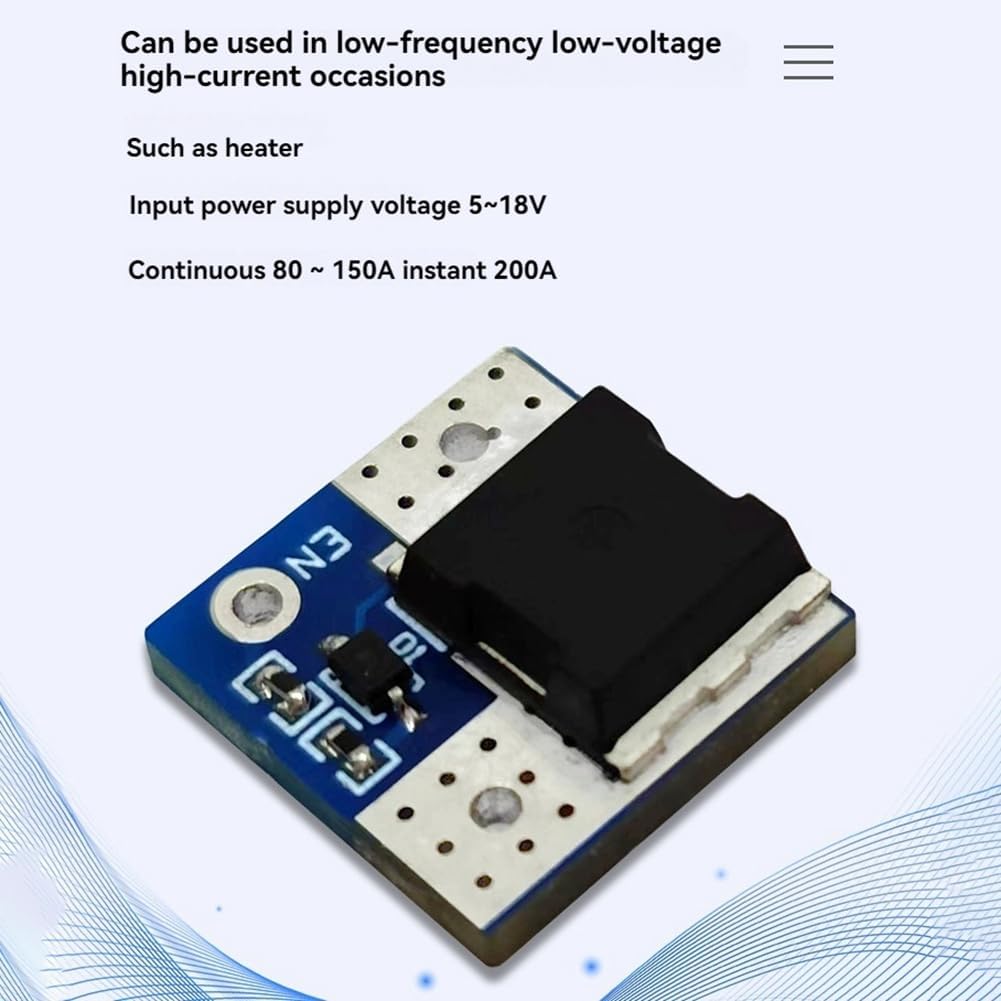 Corrente: continua 80-150A, istantanea 200A Tensione di ingresso: 5-18V di zecca e di alta qualità. Alta precisione, piccole dimensioni, stabilità. Può essere utilizzato per applicazioni a bassa frequenza, bassa tensione e alta corrente, come i riscaldatori.