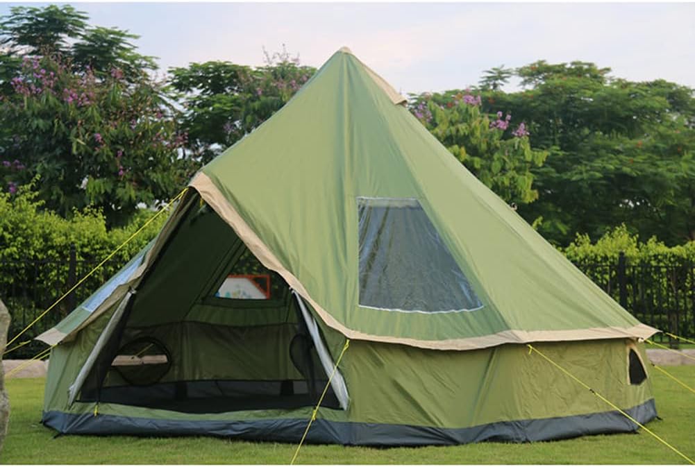 : Realizzato in fibra ad alta poliestere, il spazioso ha un diametro standard di 4M, che rende la tenda estremamente confortevole perché lo spazio può essere utilizzato da tutti gli angoli. È molto facile e veloce da impacchettare e installare. Stabile e sicuro: per mantenere asciutta l'attrezzatura da campo, il robusto materiale in poliestere sul corpo della tenda all'aperto e la mosca della pioggia rimovibile aiutano l'acqua non si fa strada all'interno della tenda impermeabile per il viaggio a secco. impermeabile: può essere impermeabile e può facilmente far fronte al cambiamento del clima all'aperto, il parasole può anche essere allestito indipendentemente come una tonalità o una copertura di pioggia senza la tenda dai poli della tua tenda di Yurts. unico: la grande tenda progettata a forma di yurta offre abbastanza spazio, in questa casa può essere insieme agli amici o giocare con gli adulti o conservare i loro giocattoli. Non perdere mai l'occasione di divertirsi con il tuo. traspirante: la tenda per la stufa è dotata di una porta e finestre dello schermo con una cerniera per consentirti di aprire la tenda per una brezza o una vista senza preoccuparti di insetti o creature. Quattro fori per scarico liscio.