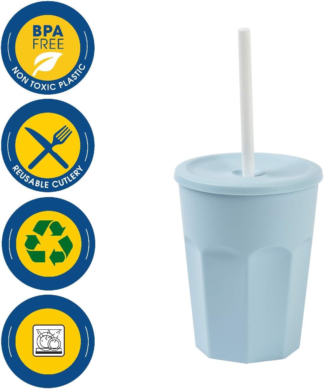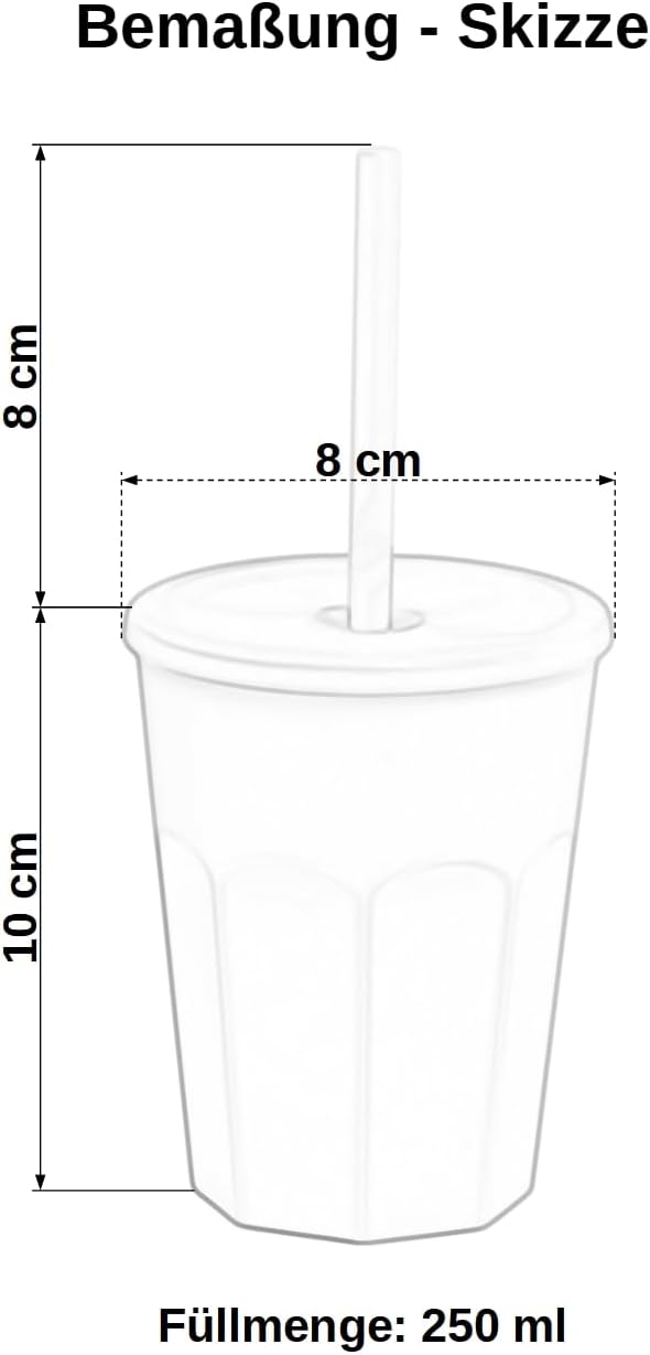 5 bicchieri di plastica con coperchio e cannuccia, colore blu/azzurro Capacità: 250 ml/0,25 l, lavabile in lavastoviglie, infrangibile, protezione dagli insetti Ideale per feste, campeggio, discoteca, barbecue, bicchieri da coktail, feste per bambini Dimensioni (A x Ø) 100 mm x 80 mm / salvaspazio e riutilizzabile Senza BPA, senza BPA, resistente alle temperature, ai raggi UV, impilabile