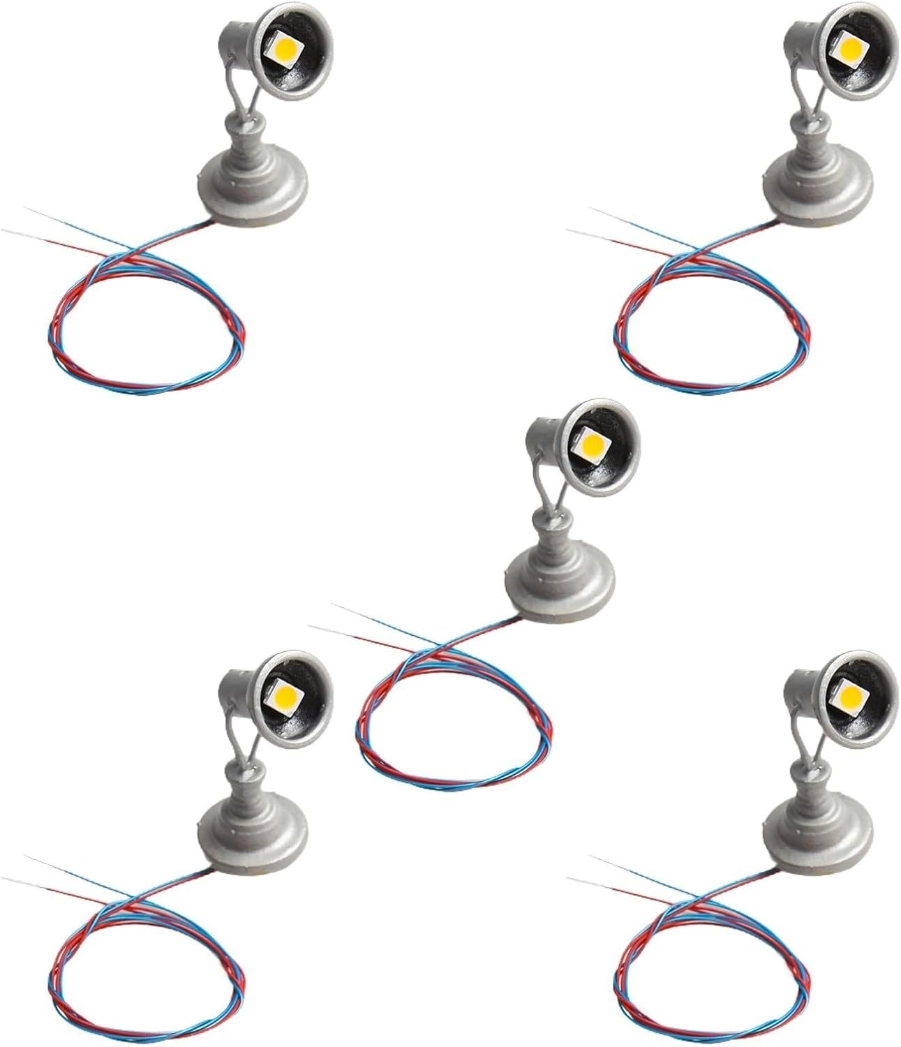 【Luci a LED calde】 I proiettori per modellini ferroviari sono dotati di LED bianchi caldi che creano un'atmosfera accogliente e invitante per il tuo layout. Questi modelli di lampioni sono completi di cavi e LED, il che li rende comodi da installare e illuminare nella scena ferroviaria. 【Tensione adatta】 I lampioni sono progettati per l'uso solo con una tensione di alimentazione di 3 V. È importante non collegarli direttamente a 12V o 16V per evitare danni ai LED. Scala accurata: misurando circa 15 mm, questi lampioni sono adatti per modellini ferroviari in scala 1:75~87 o HO, aggiungendo un tocco realistico al tuo layout. 【Design a colonna in rame】 Realizzati con modelli a colonna in rame, questi lampioni non solo emettono una luce brillante e calda, ma aggiungono anche un tocco elegante e classico al tuo paesaggio ferroviario in miniatura.