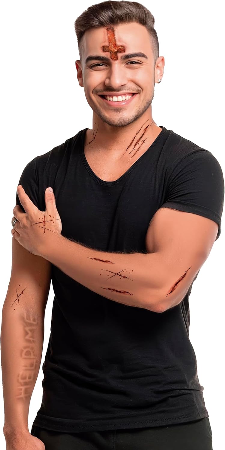 Set di tatuaggi da clown di halloween: Ci sono 5 diversi adesivi per tatuaggi all'interno del set, il numero di adesivi per tatuaggi è sufficiente per soddisfare le tue esigenze di trucco di Halloween e cosplay zombie di Halloween, è un grande accessorio per andare con il tuo costume da festa di Halloween Materiale di alta qualità: Materiale del tatuaggio di alta qualità, nessun danno alla pelle umana, i bambini possono anche essere utilizzati, durevoli e impermeabili, l'uso normale non cadrà facilmente, puoi avere una grande esperienza di festa, puoi usarli con sicurezza Design unico: Questi tatuaggi spaventosi e spettrali contengono diversi disegni che possono essere applicati in modo preciso e creativo su viso, petto, spalla o mano ovunque tu voglia, puoi mescolare e personalizzare come creare il tuo stile cosplay di Halloween Facile da attaccare e rimuovere: I nostri adesivi sono delicati sulla pelle e impermeabili e possono adattarsi perfettamente alla pelle entro 10-20 secondi con acqua, proprio come i veri tatuaggi. Rimovibile, facile da rimuovere con alcool, olio per il corpo, olio d'oliva, senza lasciare traccia Versatilità di utilizzo: Gli adesivi temporanei per tatuaggi sono adatti per Halloween, feste in maschera, notte dei morti, feste rave, compleanni, eventi festivi, feste a tema, giorno dei morti, Halloween. Grazie all'unicità dei tatuaggi, puoi mascherare rapidamente il tuo viso e creare il trucco perfetto