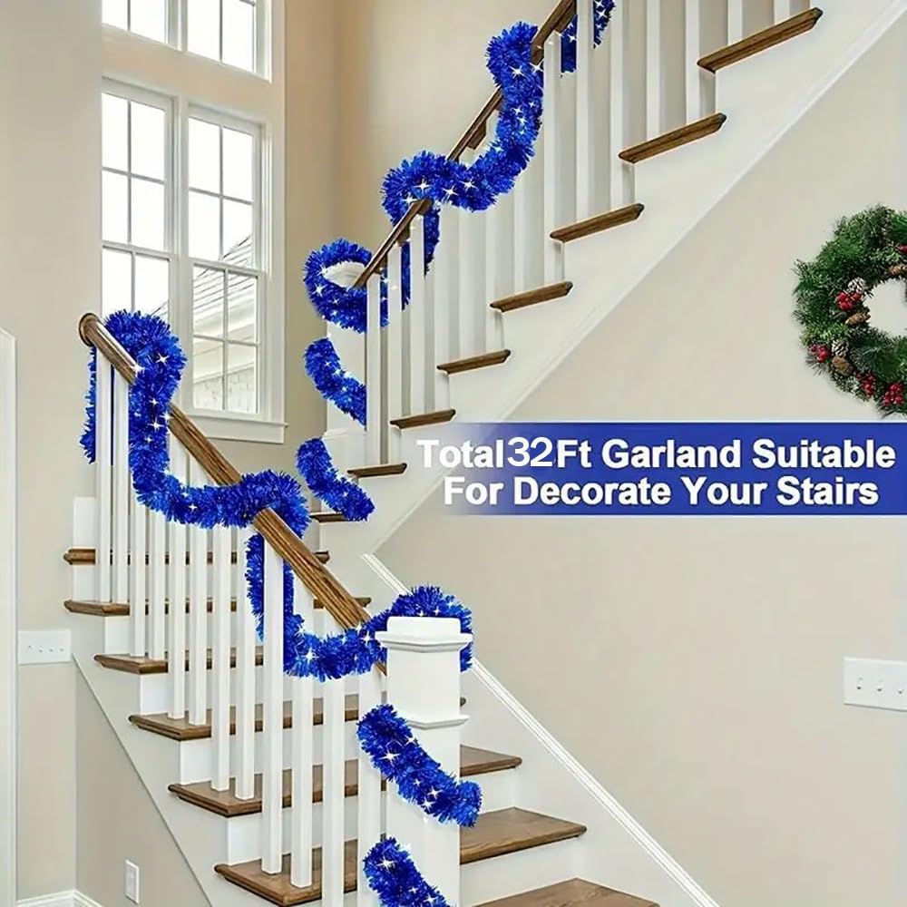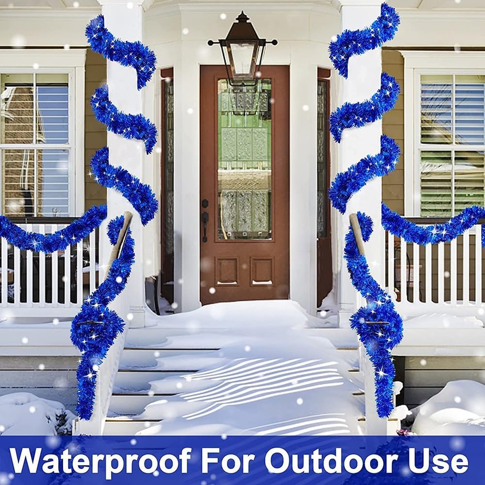 [ 5 Pack Christmas Tinsel Garlands ] Pack of 5 Tinsel Christmas Garlands decorations, total 32.81 feet long. Meeting your various needs for your Christmas home decorations. [ Thick & Thin Tinsel Design ] The Christmas garlands are designed with thick and thin, 2 different width tinsel foil metallic streamers, creating a layered and fluffy looking. [ Shiny & Sparkling ] Bright and high reflective foil metallic streamers make it look shiny, sparkling and festival. The Christmas garlands are made of tinsel materials with a soft wire inside, easy to bend and shape. [ Versatile DIY ] Can be bend, cut or twisted together easily for satisfying your DIY needs. You can use it to wrap 3.5-6.5 Ft Christmas trees or 6 ft long fireplace, or twisted together to wrap around 24 Ft stairs railing. [ Xmas Decorations for Home]Christmas decorations for home indoor and outdoor, door frames, walls,mantels, fireplaces, window sills, stair railings, shopping malls, corridors, ceiling, or other place.Not afraid of wind and snow weathe