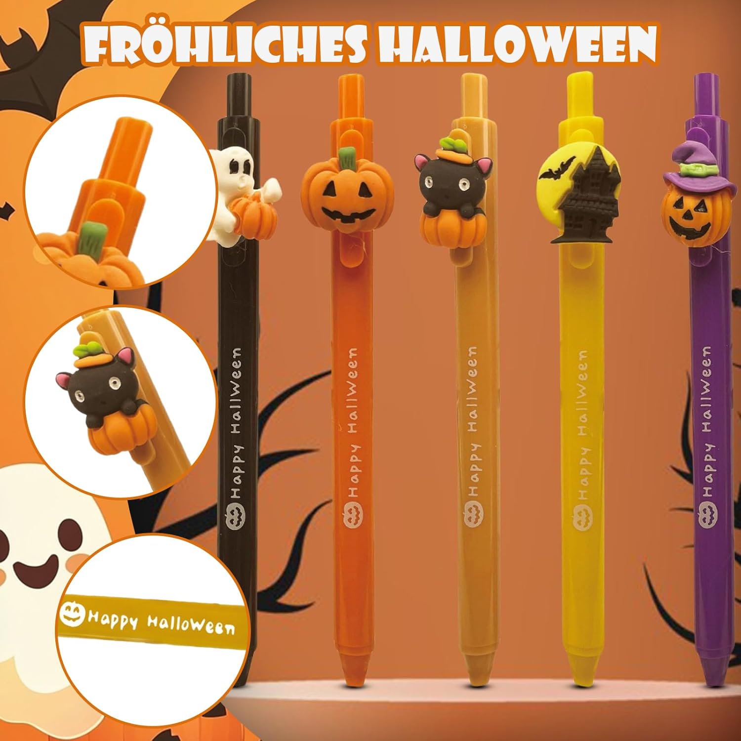 Design spooky di Halloween per la gioia dei bambini: la penna a sfera è progettata con motivi amorevoli di Halloween come fantasmi bianchi, zucche colorate e simpatici berretti da strega. Perfetta per risvegliare l'umore di Halloween nei bambini. Il design allegro invece di terribile si adatta perfettamente ai bambini a partire dai 5 anni e rende la scrittura o il gioco un'esperienza festosa Sicure e durevoli: realizzate in plastica atossica, senza BPA, le penne sono sicure per bambini e adulti. La lavorazione robusta e i materiali di alta qualità garantiscono una lunga durata 【 0,5 mm di alta qualità per una scrittura fluida】 Le penne dispongono di una mina precisa da 0,5 mm, che garantisce una scrittura uniforme e pulita. La mina è infrangibile e offre una lunga durata anche in caso di uso frequente. La forma ergonomica riduce l'affaticamento della mano durante la scrittura prolungata Ideale per la scuola, l'ufficio e in viaggio: questo set di penne ha una vasta gamma di applicazioni come materiale scolastico, lavoro d'ufficio o progetti creativi. Le penne si adattano a qualsiasi astuccio o portapenne e, grazie alle loro dimensioni compatte, sono perfette anche per i viaggi Regalo per Halloween per bambini: ideale come piccolo regalo per feste di Halloween, lezioni, trucchi o compleanni per bambini. La penna è adatta anche come regalo per feste o come elemento decorativo per la cameretta dei bambini, rende ogni momento di Halloween più divertente