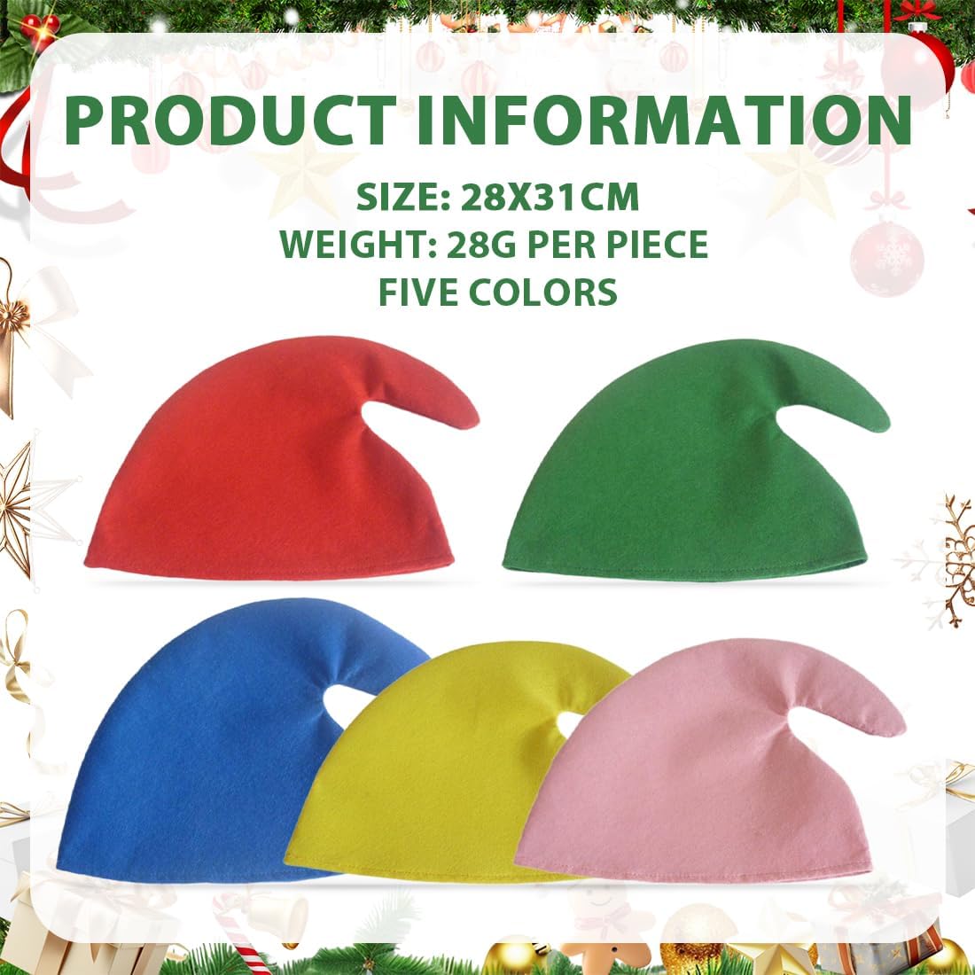 Cappelli da elfo colorati: disponibili in cinque colori (rosso, verde, giallo, rosa e blu), con un design giocoso, perfetti per Natale, le feste e l'uso quotidiano. Aggiungono un tocco di allegria a qualsiasi outfit e possono essere indossati da adulti e bambini per creare un'atmosfera allegra. Materiale in feltro confortevole: realizzato in feltro morbido, leggero e delicato sulla pelle, comodo da indossare; dimensionalmente stabile, mantiene la forma anche dopo un uso ripetuto, unisce estetica e funzionalità ed è comodo anche per un uso prolungato. Misura universale: 28 × 31 cm, si adatta alla maggior parte delle dimensioni della testa grazie alla sua elasticità, quindi non devi preoccuparti della taglia. Puoi acquistare diversi colori da abbinare a seconda dell'occasione e migliorare l'interazione alle feste. Applicazioni versatili: adatte per feste di Natale in famiglia, feste con gli amici, feste per bambini e altre occasioni. Garantiscono foto fantastiche, aggiungono creatività alle foto di gruppo e rendono i ricordi ancora più preziosi. Accessorio per travestimenti semplice: non sono necessarie combinazioni complicate, basta indossarlo e sarete vestiti e adattati rapidamente all'atmosfera del tema. Ottimo rapporto qualità-prezzo, un set è sufficiente per diverse persone ed è un accessorio pratico per i preparativi delle feste e le decorazioni natalizie.
