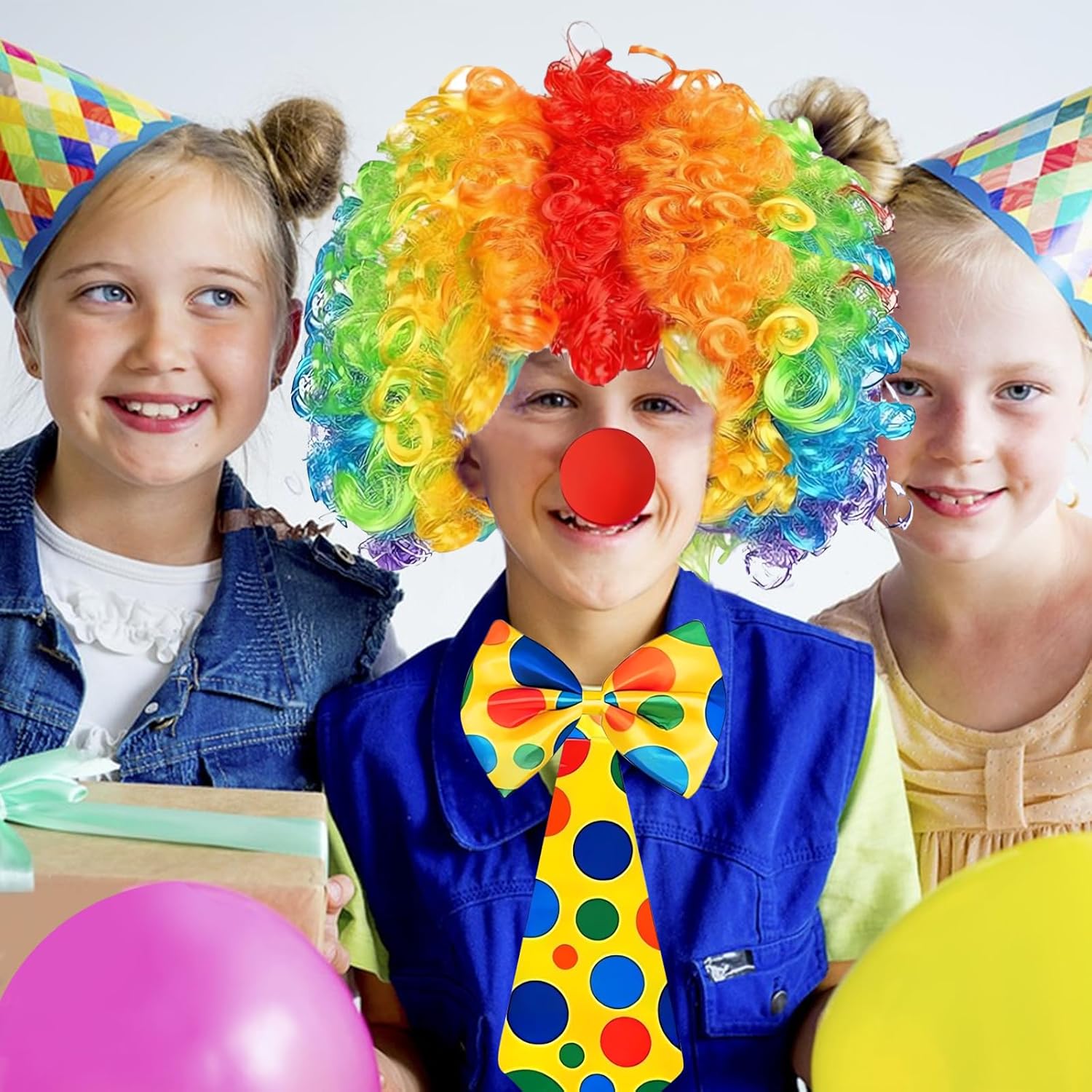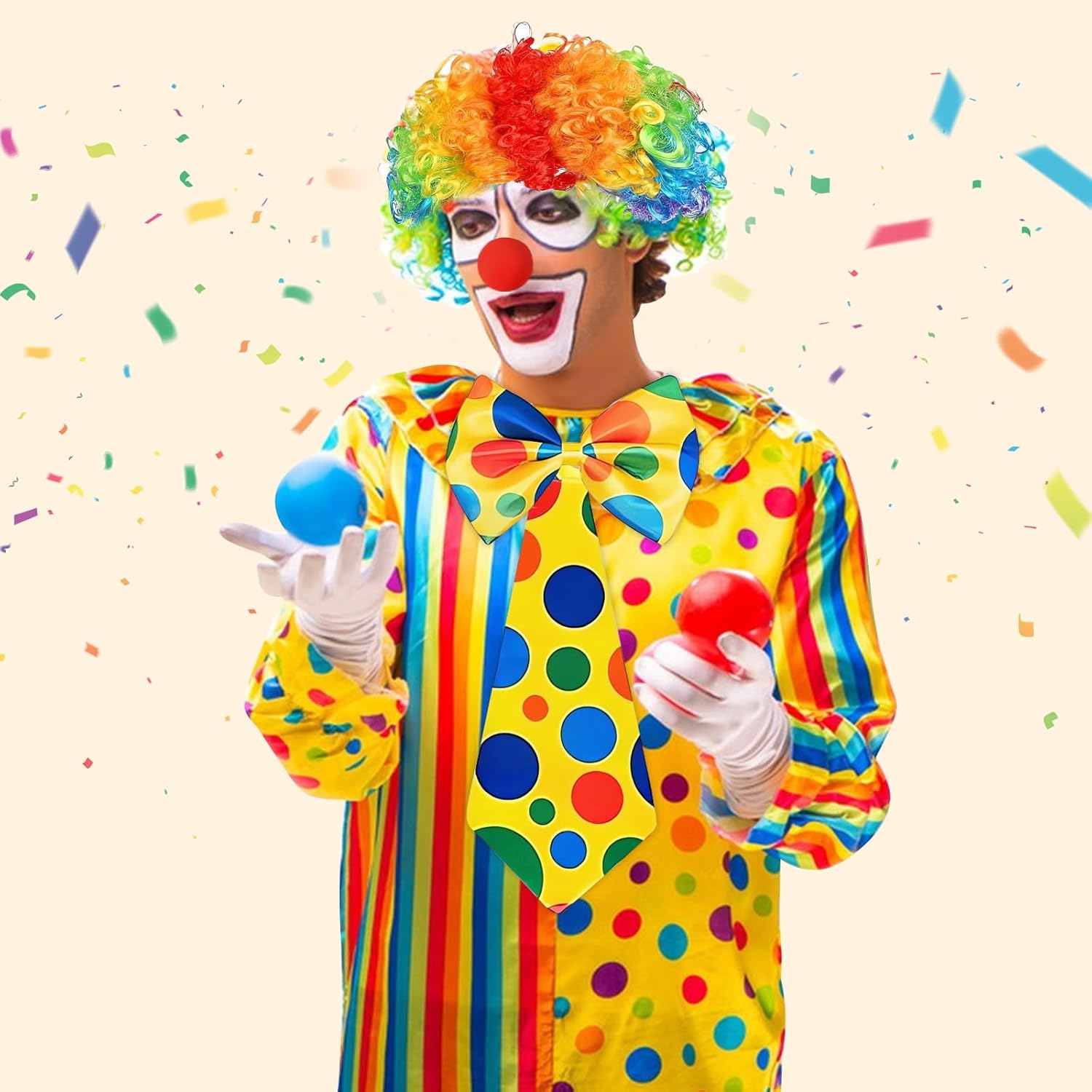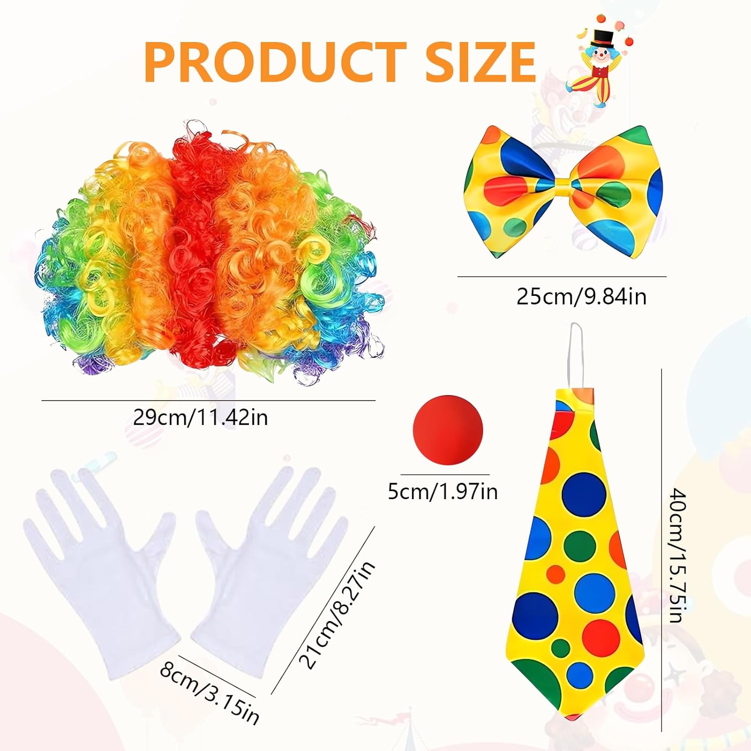 5 Pezzi Accessori Costume Clown, Parrucca Riccia da Clown, Naso Rosso, Cravatta Colorata, Papillon, Guanti, Set di Costumi Clown per Festa, Cosplay, Evento Artistico, Carnevale. Descrizione: Riceverai 1 parrucca da clown, 1 naso da clown, 1 cravatta colorata, 1 papillon, 2 guanti. Parrucca da clown è realizzata con fibre sintetiche di alta qualità, naso rosso è realizzato in spugna di alta qualità, cravatta e papillon è realizzata in tessuto di alta qualità. Con un costume da clown, puoi divertirti a spettacoli eventi, mostrare il tuo umorismo e il tuo talento divertente e far ridere gli altri. Accessori per Costumi da Clown adatti a molte occasioni, come asquerade, carnevale, feste a tema circo, parchi a tema, eventi sportivi, festività, ecc. Accessori per Costumi da Clown può anche essere un regalo perfetto per i tuoi figli, amici e familiari. Specifiche: Materiale: Fibre sintetiche, spugna, tessuto Dimensioni: Come mostrato Colore: Come mostrato Pacchetto include: 1 x parrucca da clown 1 x naso da clown 1 x cravatta colorata 1 x papillon 2 x guanti Nota: Si prega di consentire una leggera differenza di dimensione a causa della diversa misurazione manuale. A causa della luce e della differenza di impostazione dello schermo, il colore dell'articolo potrebbe essere leggermente diverso dalle immagini.