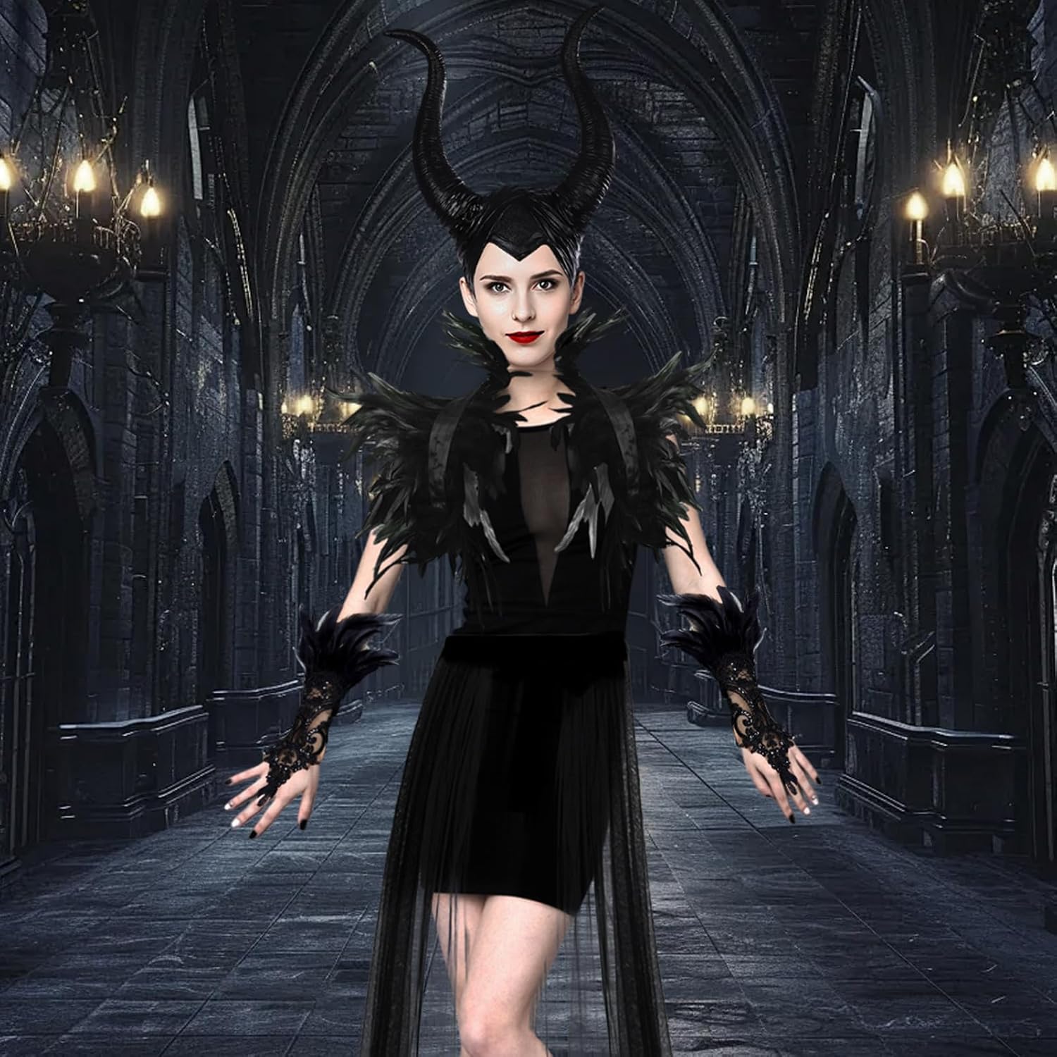 Descrizione prodotto Costume Maleficent per donna. Costume di Halloween da donna con gonna in tulle, mantello di piume, corna e polsini. Alta qualità. Ideale per Halloween, carnevale, cosplay e feste. Le dimensioni si adattano a molti. - Contenuto: gonna in tulle nero, mantello di piume, corna e polsini a piuma. - Dimensioni: gonna 120 cm, corna per max. Circonferenza testa 60 cm, mantello 76 cm, adatto a molti. - Regolabile: regolabile in base alle misure del corpo con cinghie regolabili. - Qualità: mantello di piume in piume resistenti, gonna in tulle morbido. - Applicazioni: ideale per Halloween, carnevale, cosplay, ecc. - Effetto: dona un look elegante e misterioso. Specifiche: Nome del prodotto: costume da donna Malefica Materiale: piume, pizzo, tulle Quantità: 6 pezzi. Colore: nero La confezione include: 1 gonna in tulle nero. 1 mantello nero in piuma. 1 corna Maleficent. 2 manicotti a molla. 1 retina per capelli. Nota: 1. Le misure potrebbero risultare leggermente diverse a causa della misurazione manuale. 2. Per qualsiasi domanda sul prodotto, non esitate a contattarci direttamente e saremo lieti di rispondere per voi. Avviso di sicurezza No