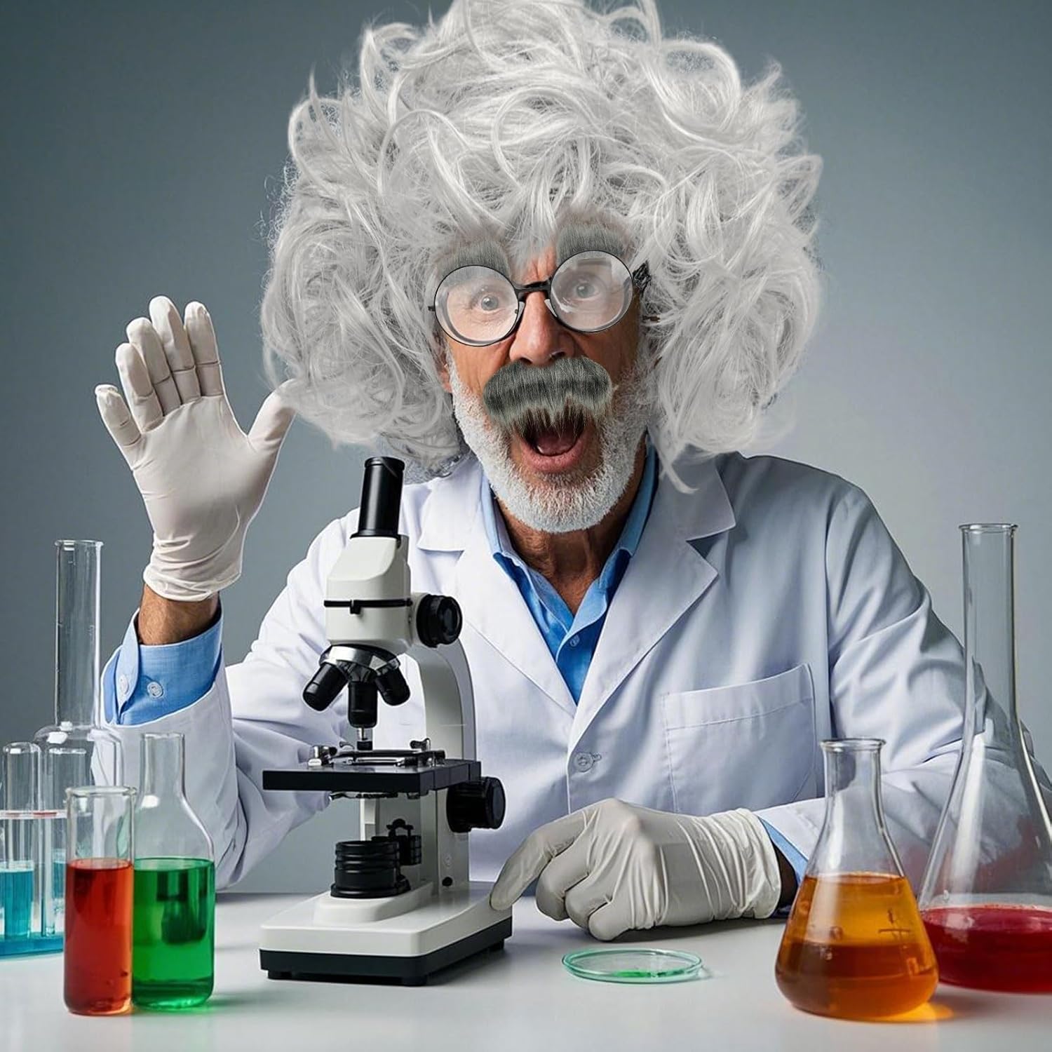 Pacchetto: Parrucca grigia Cappello parrucca Barba finta Sopracciglia finte Occhiali Materiale: fibra sintetica, PVC Colore: grigio Gli accessori per il costume da nonno completo ti permettono di goderti il divertimento di travestirti e di dire addio ai problemi di abbinamento!