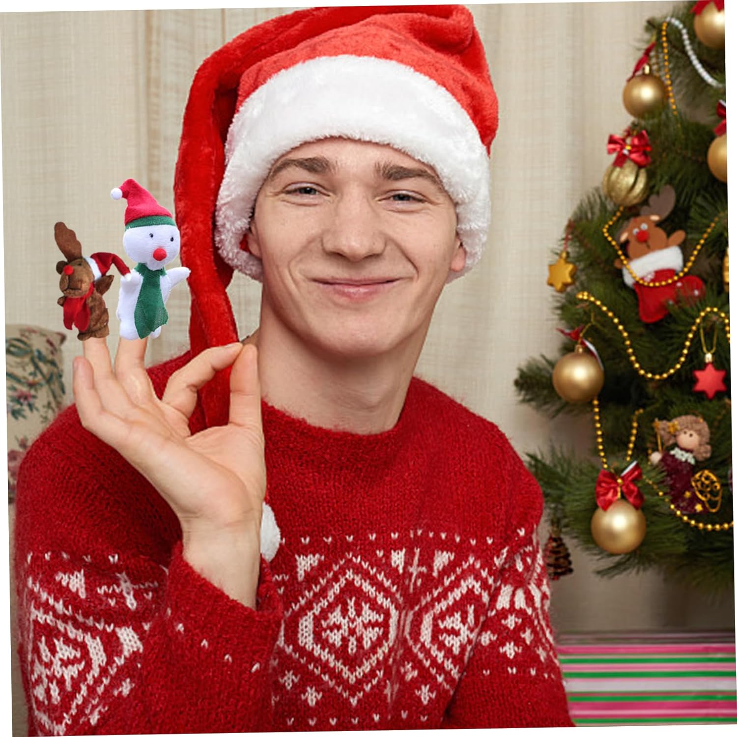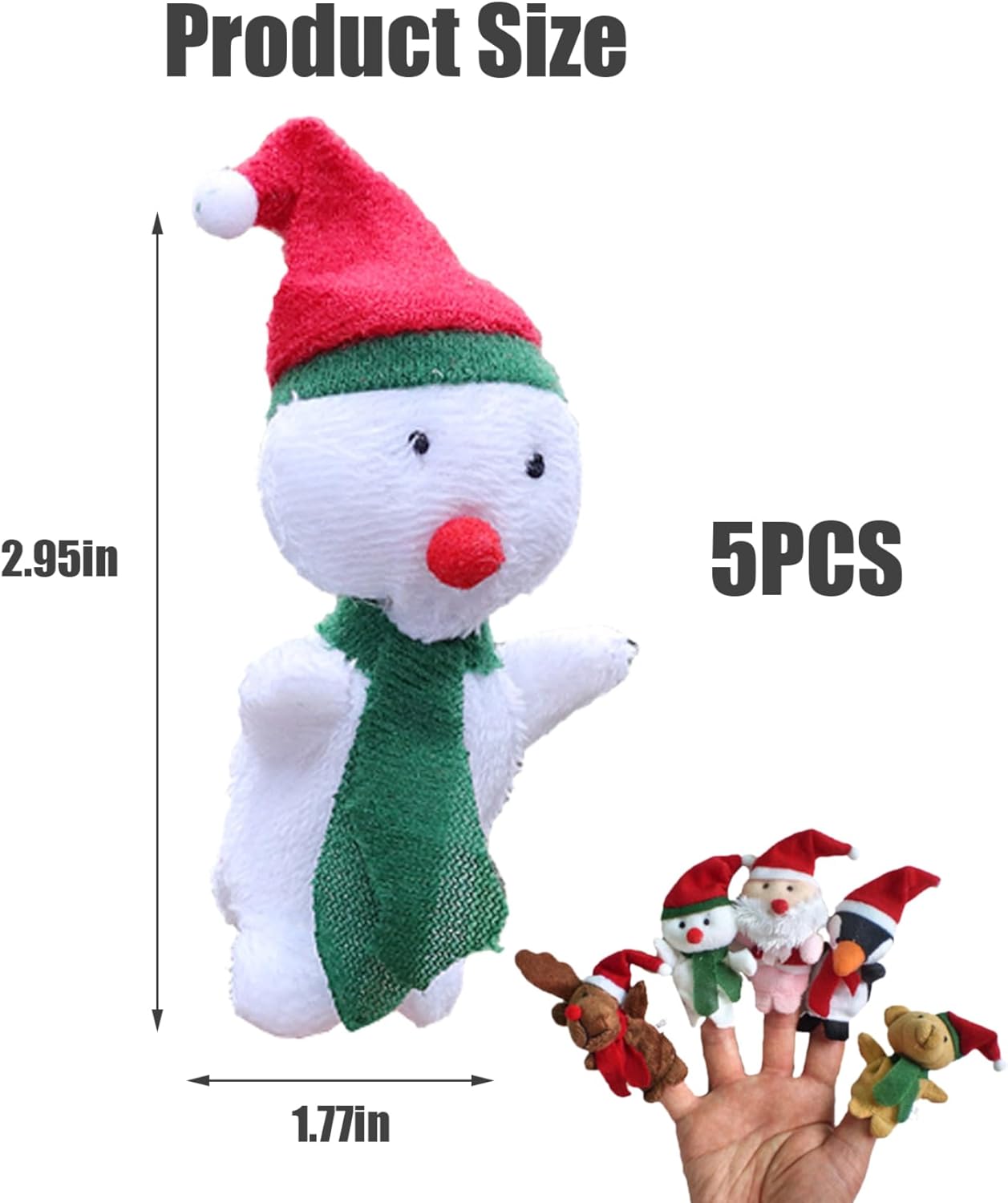 Perfetti per riempire i sacchetti delle feste: queste marionette da dito sono ideali come bomboniere per le feste di Natale dei bambini..Mettili nei sacchetti delle feste o distribuiscili come piccoli regali e guarda i volti dei bambini illuminarsi per l'eccitazione mentre ricevono queste simpatiche e divertenti bambole da dito. Materiale sicuro e adatto ai bambini: realizzati con materiali peluche, questi burattini da dito natalizi sono adatti a bambini di tutte le età..Sono progettati per essere facili da usare e adattarsi comodamente ai mignoli, garantendo ore di divertimento senza preoccupazioni. Narrazione interattiva: accendi l'immaginazione di tuo figlio con queste marionette da dito, rendendo le sessioni di narrazione durante il periodo natalizio davvero speciali..Questi affascinanti personaggi danno vita alle storie, rendendoli un meraviglioso strumento educativo per le giovani menti. Varietà di stili carini: le nostre marionette da dito natalizie da 1,8x3 pollici contengono una deliziosa selezione di 5 adorabili personaggi, tra cui renna, pupazzo di neve, Babbo Natale, pinguino e orso..Ogni marionetta da dito è decorata con un festoso cappello rosso da Babbo Natale, che la rende ancora più accattivante e perfetta per la narrazione delle vacanze. Divertimento per la festa di Natale: crea un'atmosfera gioiosa e festosa alla tua festa di Natale con queste marionette da dito..Usali come oggetti di scena per giochi interattivi, spettacoli di marionette o anche come decorazioni da tavola..Sia i bambini che gli adulti adoreranno il tocco magico che aggiungeranno alle tue celebrazioni.