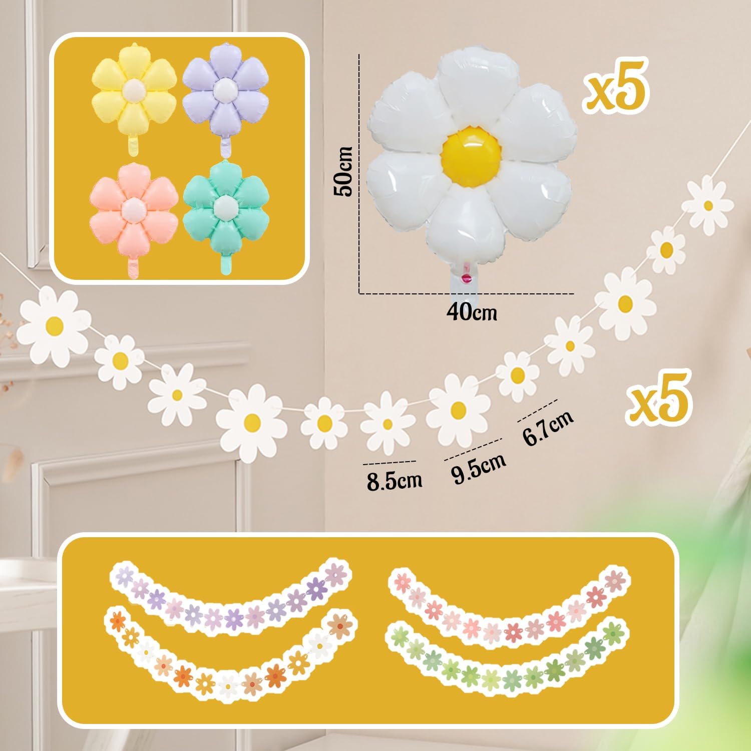 【Contenuto Del Prodotto】 Ottieni 5 Piccoli Punte Da Margherita E 5 Piccoli Palloncini Margherite. Le Piccole Dimensioni Della Margherita Sono 9, 5*9, 5 Cm E I Colori Sono Verdi, Bianchi, Rosa, Viola E Arancione; Il Piccolo Palloncino Margherita È Di 50*40 Cm E I Colori Sono Verdi, Bianchi, Rosa, Viola E Arancione, Adatti Per Feste Di Compleanno E Altre Decorazioni. 【Materiale Del Prodotto】 Questo Prodotto È Costituito Da Pellicole Di Carta E Alluminio Per Garantirne La Durata E I Colori Vivaci Durante L'Uso. I Materiali Di Carta Sono Rispettosi Dell'Ambiente E Sicuri, Mentre I Palloni Cinematografici In Alluminio Hanno Buoni Effetti Ermetici E Decorativi. 【Design Creativo】 Questo Prodotto È Unico Con Piccole Margherite E Fiori Progettati Come Argomento. Il Design Di Colore Alto Offre Un'Atmosfera Gioiosa E Calda Che È Molto Adatta Alle Feste Di Compleanno Per Bambini E Varie Celebrazioni. La Combinazione Di Pizzo E Palloncini Rende L'Effetto Ancora Migliore. 【Facile Da Installare】 Queste Decorazioni Sono Facili Da Usare E Possono Creare Un Bel Ambiente Per Feste Con Una Semplice Decorazione. Il Palloncino Può Essere Usato Direttamente, Mentre Il Sorteggio Può Essere Appeso A Pareti, Coperte O Altri Luoghi, Il Che Lo Rende Facile Da Usare. 【Ampliato】 Questo Prodotto Non È Solo Adatto Per Feste Di Compleanno, Ma Anche Per Vari Festival, Riunioni Di Famiglia E Altre Celebrazioni. Inside O Fuori, Aggiungi Colore E Divertimento Alle Tue Attività.