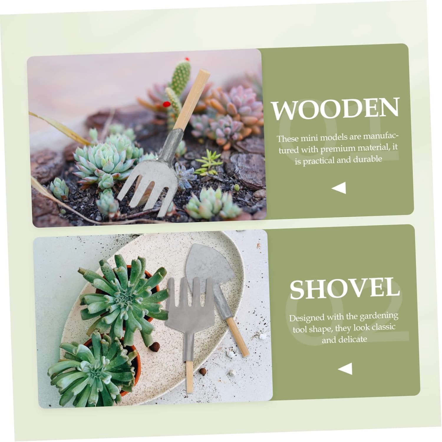 Mini decorazioni per la casa - progettate con forme classiche e antiche di attrezzi da giardino, sono ornamenti creativi in miniatura. Vividi mini attrezzi da giardino - possono aiutare i bambini ad aumentare il loro interesse, la loro immaginazione e le loro capacità cognitive. Giocattoli in miniatura Decorazioni in miniatura: cambia il tuo stile e aggiungi un tocco di stile antico, mini ornamenti Modello mini pala: questi prodotti possono aggiungere un tocco antico alla decorazione del tuo giardino fatato, decorazioni di micro scene Attrezzi da giardino creativi in miniatura - e con il peso appropriato, puoi facilmente usarli come mini ornamenti per attrezzi da giardino.