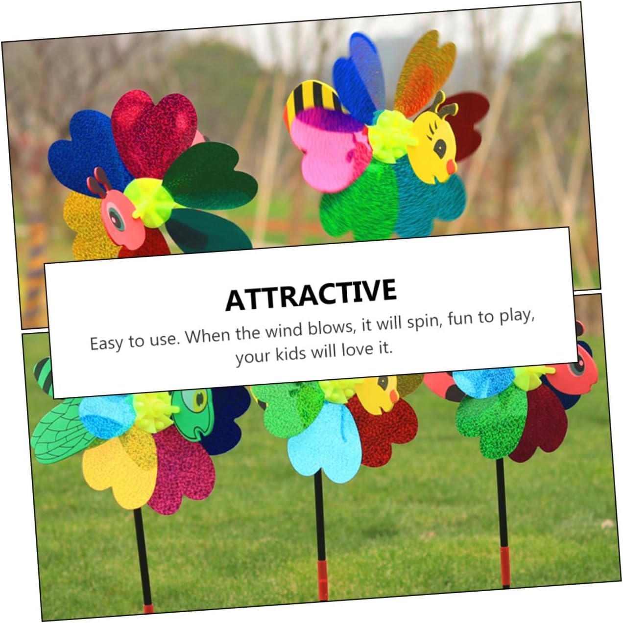Girandole da giardino: presentano un design dalla forma adorabile, molto adorabile e interessante, aggiungono più gioia alla tua vita quotidiana, girandole da giardino Mulino a vento giocattolo: può essere utilizzato come decorazione per il tuo giardino o come mulino a vento per far giocare i tuoi , mulino a vento da esterno Mulino a vento rotante colorato: lascia che i tuoi si avvicinino di più alla natura, corri nel vento, senti il respiro del vento, mulini a vento da giardino Mulini a vento colorati: non si danneggeranno poiché puoi tenerli con cura grazie alla robusta asta, mulini a vento multicolori Mulino a vento decorativo da giardino: curato in ogni dettaglio per conferirgli un aspetto attraente e accattivante, decorazione del mulino a vento da giardino