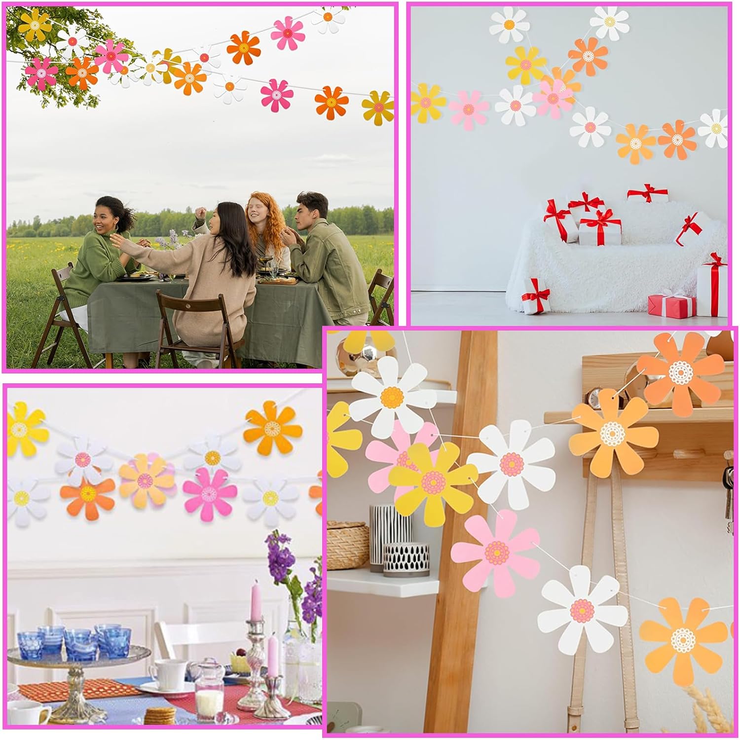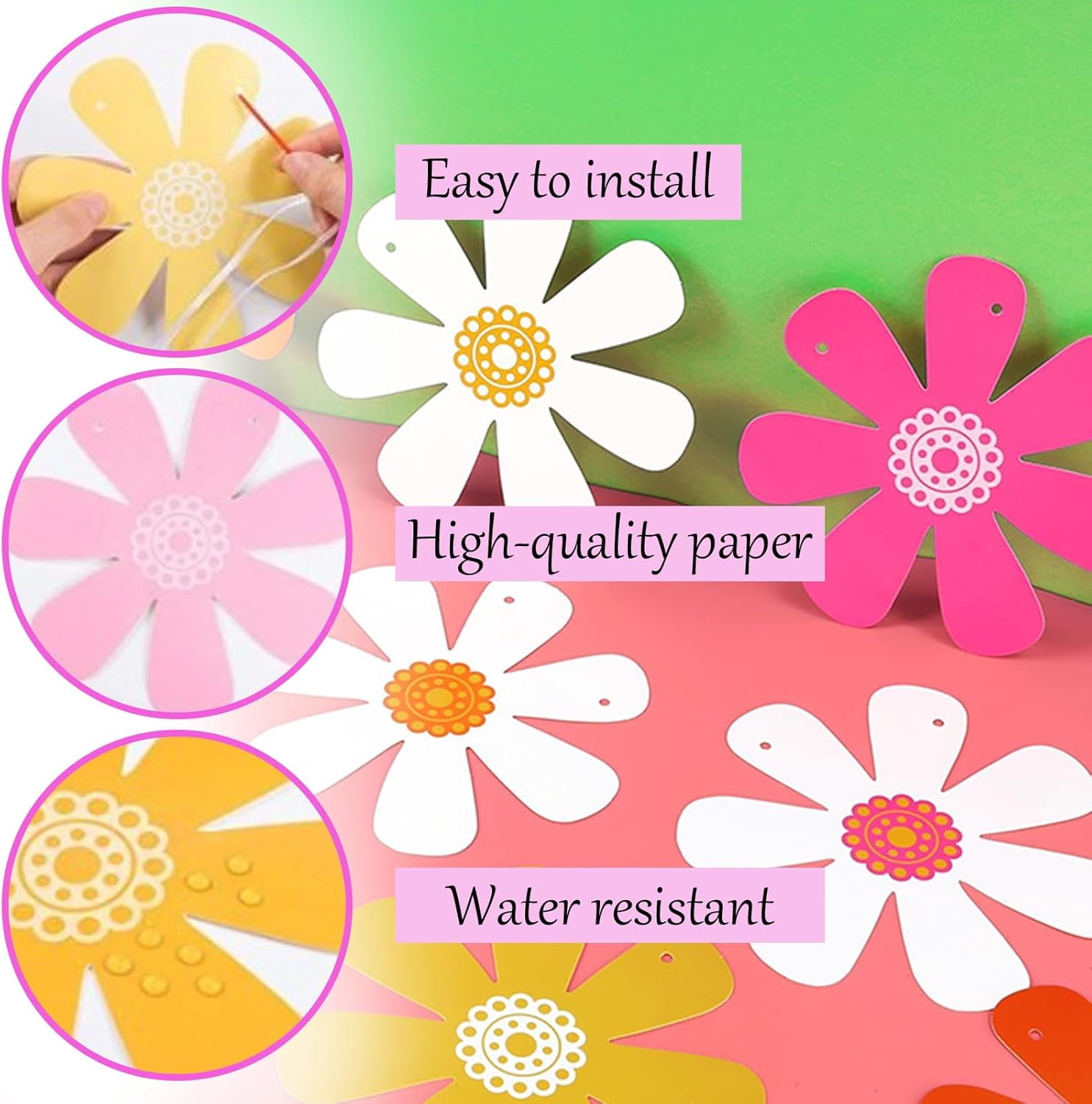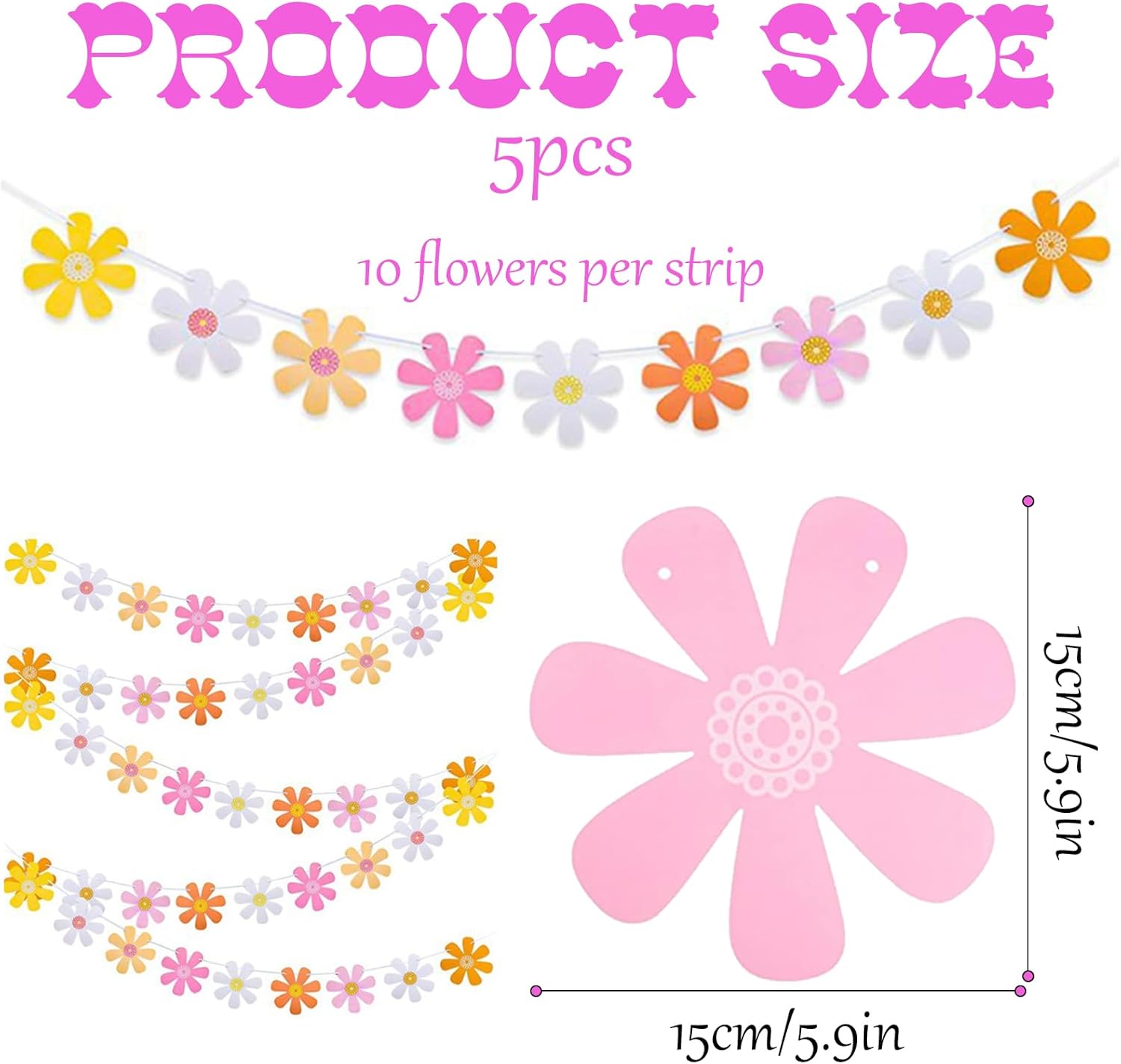 Materiali di Alta Qualità: Questo margherite finte per decorazioni è realizzato con materiali di carta di alta qualità ed è stato sottoposto a un raffinato processo di stampa fronte-retro per garantire che ogni fiore di margherita presenti colori vivaci e motivi delicati. Il materiale del set di decorazioni primavera di margherite di carta è inodore e non sbiadisce, assicurando che non causerà alcun impatto su di te o sull'ambiente durante l'uso Elenco di Imballaggio: Questo set di margherite di margherite di carta contiene 8 delicate ghirlande di margherite, ogni ghirlanda è composta da 10 ritagli di carta a margherita, ciascuno misura 5,9x5,9 cm, ricco di colore e squisito nel design. Ogni set del set di margherite finte di carta contiene abbastanza imballaggio per garantire che tu possa soddisfare le esigenze di decorazione di molte occasioni Stile Unico: Questo set di happy birthday decorazioni di margherite di carta è progettato con il suo stile bohémien unico e colori vivaci. Il set di ghirlande da festa di margherite di carta in stile bohémien, con il suo aspetto semplice e bello e la piacevole combinazione di colori, può aggiungere un tocco di natura e arte alla tua festa, al tuo matrimonio o alla decorazione della casa Comodo da Usare: il design preassemblato di questo set di ghirlande di margherite di carta ti offre grande praticità, rendendo la decorazione della festa facile ed efficiente. Il set di ghirland fiori di margherite di carta è anche molto facile da smontare e riutilizzare. Ogni ghirlanda di margherite di carta è dotata di un design con fori preforati, che consente di regolare la posizione e il metodo di sospensione secondo necessità Ampia Applicazione: Che questo set di decorazioni carnevale da appendere di margherite di carta sia appeso a finestre, pareti, soffitti o decorato su caminetti, mensole, alberi, ecc., questo set di ghirlande di margherite di carta può essere facilmente integrato in vari stili di casa, portando a te e alla tua famiglia e ai tuoi amici un divertimento decorativo duraturo, rendendo la tua casa più bella e calda