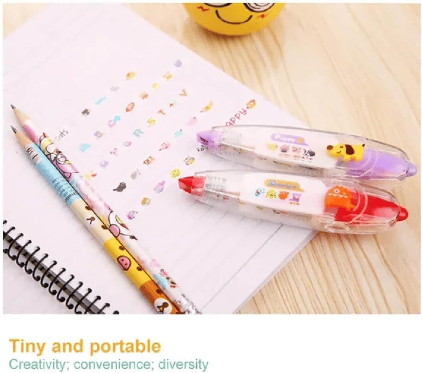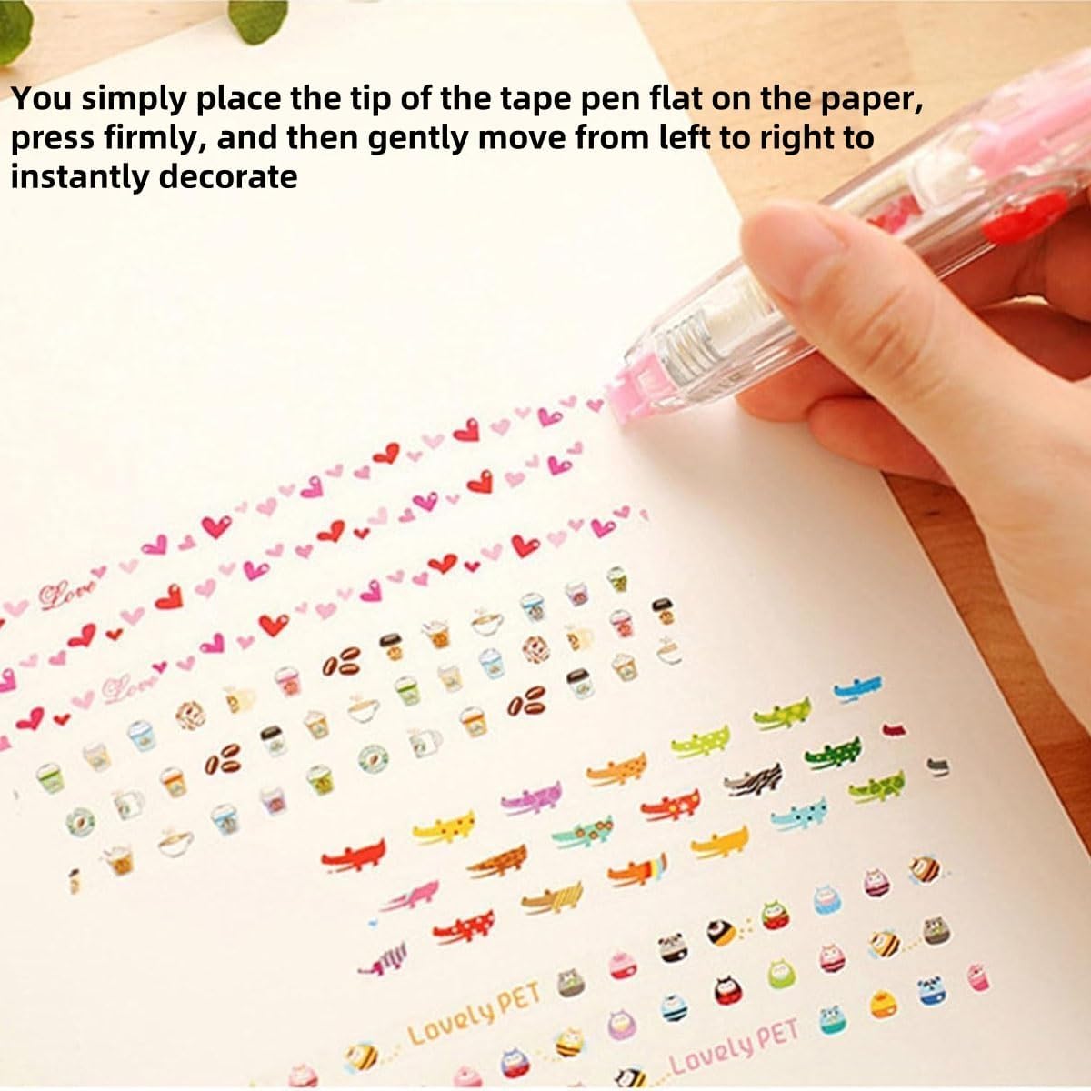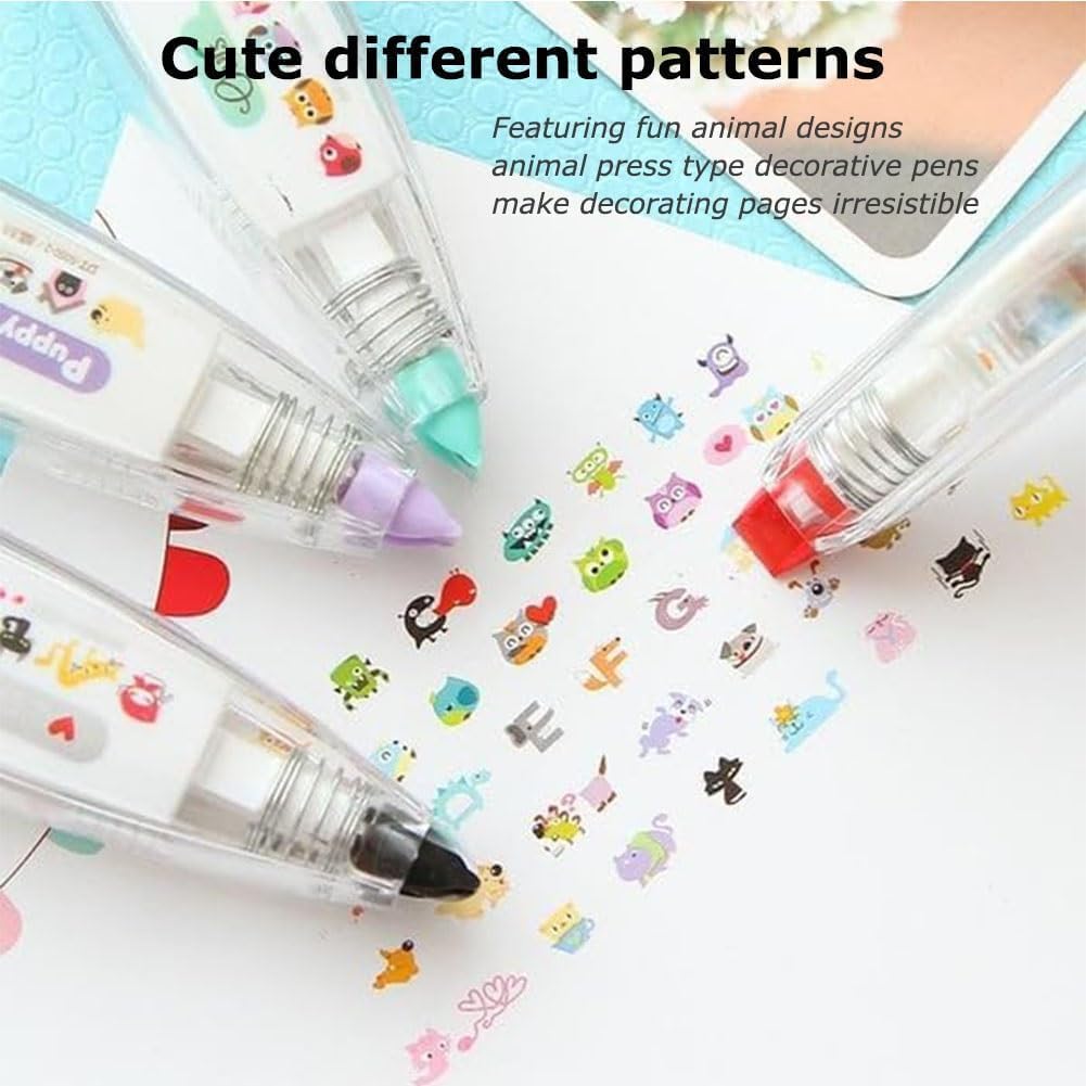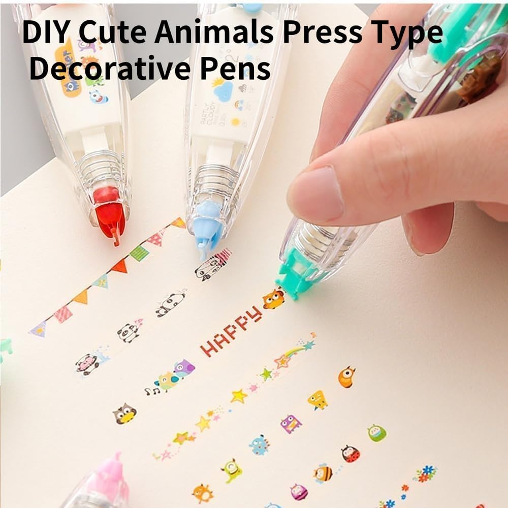 [Penne decorative fai da te a forma di simpatici animali]: questa simpatica penna a pressione a forma di animale funge anche da correttore trasparente e da strumento decorativo. Copri senza sforzo gli errori o abbellisci le pagine con motivi kawaii a forma di animale. Presenta design affascinanti per aggiungere un tocco di fantasia a diari, album e progetti fai da te [Qualità premium e durata infinita]: realizzate in plastica ecologica di alta qualità, le nostre simpatiche penne a pressione a forma di animale resistono alla rottura e scorrono fluidamente sulla carta. Il design ergonomico delle penne infinite garantisce il comfort anche per le manine più piccole, rendendole ideali per bambini, adolescenti e per la scrittura di diari dettagliati [Motivi colorati e carini]: combina penna e nastro adesivo in uno! Il sistema della penna decorativa a pressione ti consente di incollare motivi a cartoni animati con la massima precisione. Usalo per correggere errori, contrassegnare calendari o decorare biglietti: le penne decorative soddisfano una creatività senza limiti. Ogni tema include motivi e fumetti diversi che ti sorprenderanno [Facile da usare]: basta appoggiare la punta del pennarello a nastro sulla carta, premere con decisione e poi muoverlo delicatamente da sinistra a destra per decorare all'istante. Premi il pulsante di rilascio per aprire o chiudere e puoi sostituire facilmente le ricariche [Ampia applicazione]: questo grazioso nastro correttore decorativo per scrapbooking è perfetto per gli artisti che amano scarabocchiare e disegnare! Può essere utilizzato per decorare o etichettare oggetti fai da te, biglietti di Natale, buste, diari, quaderni, album fotografici, biglietti d'auguri, calendari da parete e altro ancora. Un regalo perfetto per un amico o un premio per uno studente