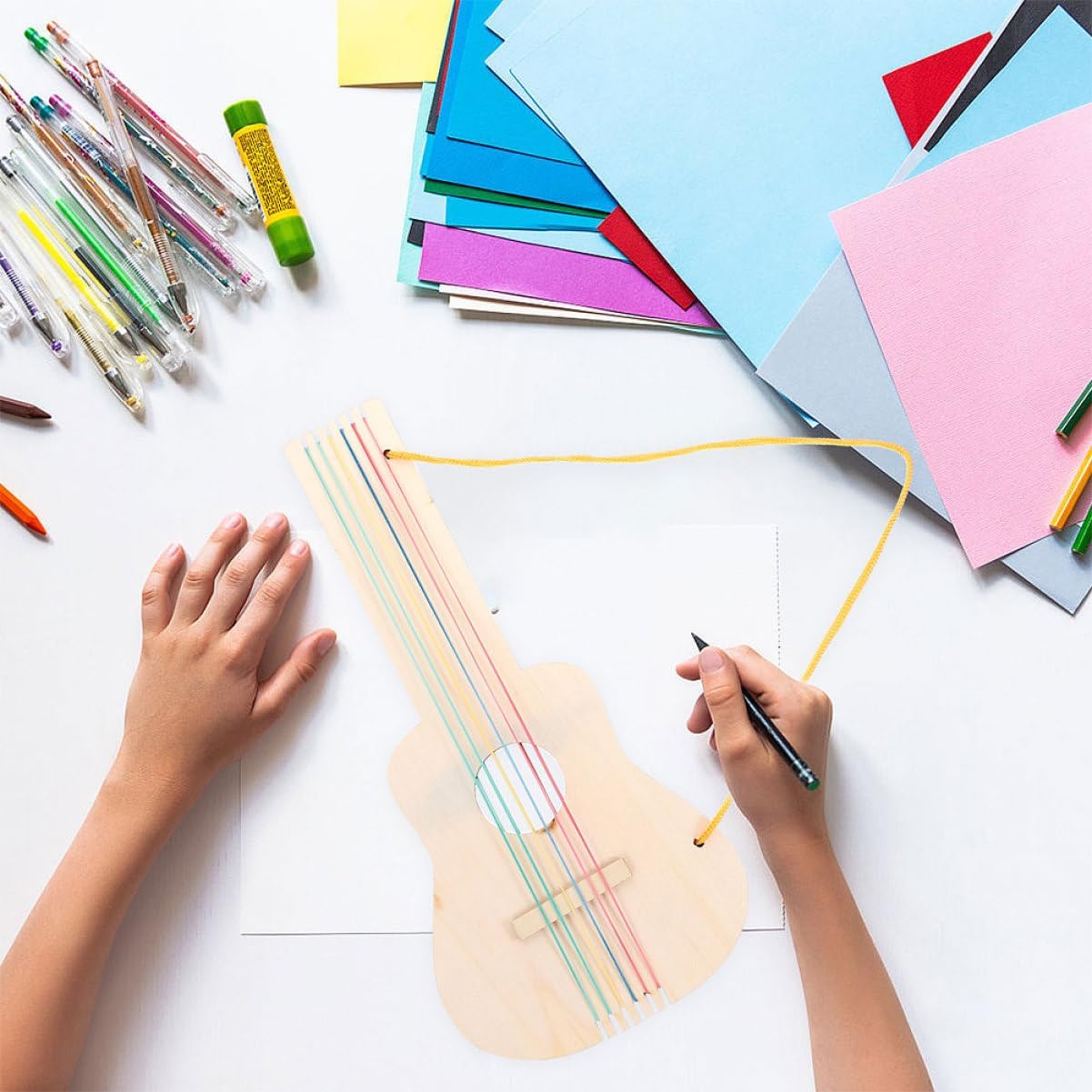 Chitarra in legno: aspetto semplice e delicato, lavorazione meravigliosa, soddisfa facilmente le tue esigenze, sfrutta appieno la tua creatività e immaginazione, Chitarre per giovani Chitarra: incoraggia a esprimere la propria creatività e usare la propria immaginazione attraverso attività artistiche e ritagli di chitarra Modelli di chitarra: questo strumento unico consente ai bambini di mostrare il proprio talento artistico creando i propri disegni sulla chitarra, modello di chitarra in miniatura Chitarra per bambini: il design è perfetto come decorazione ed è un divertimento per la tua chitarra giocattolo: è realizzata con materiali sicuri, la salute è la priorità. La chitarra incompiuta offre infinite possibilità da esplorare e scoprire, giocattoli per chitarra ukulele