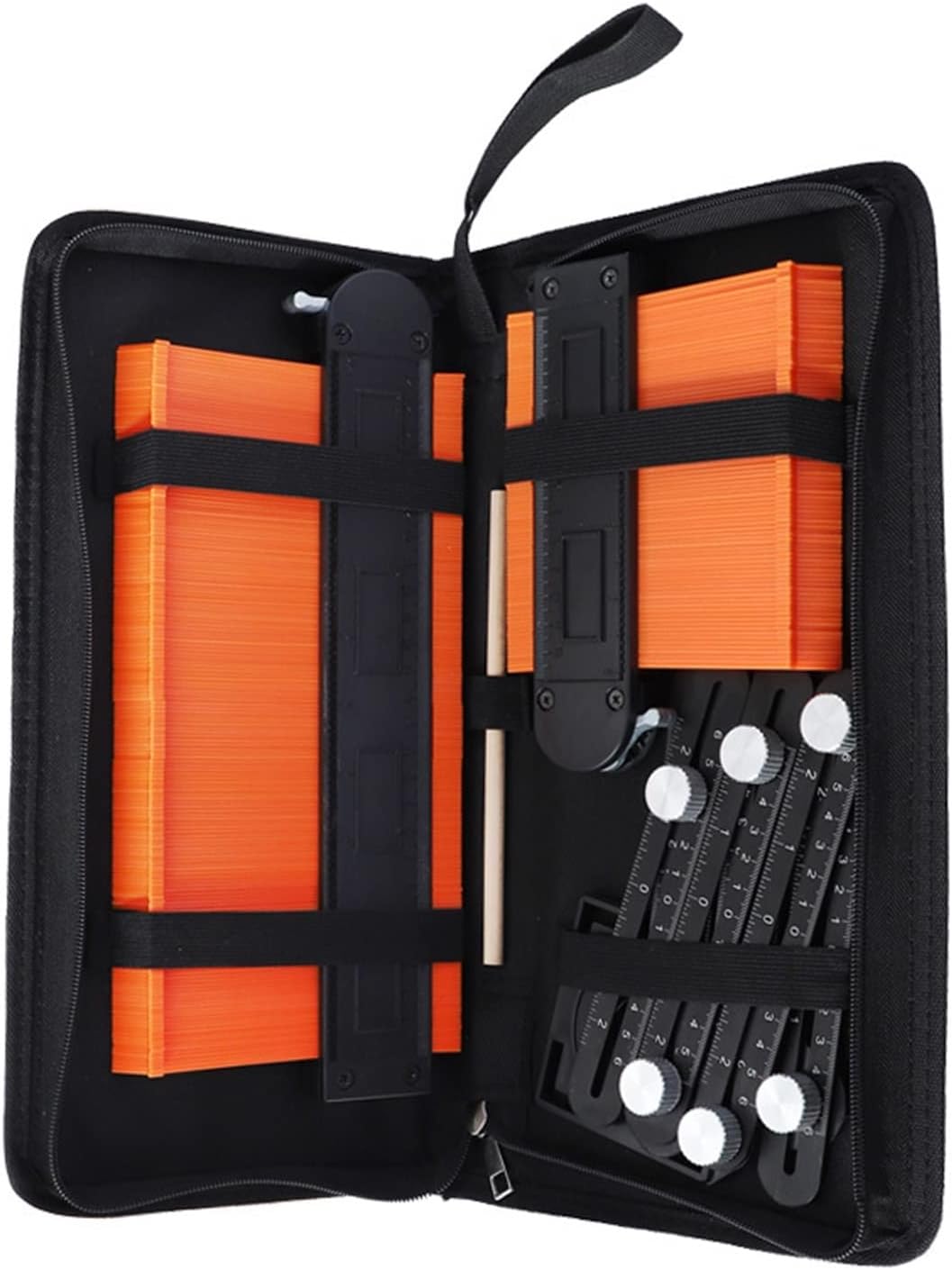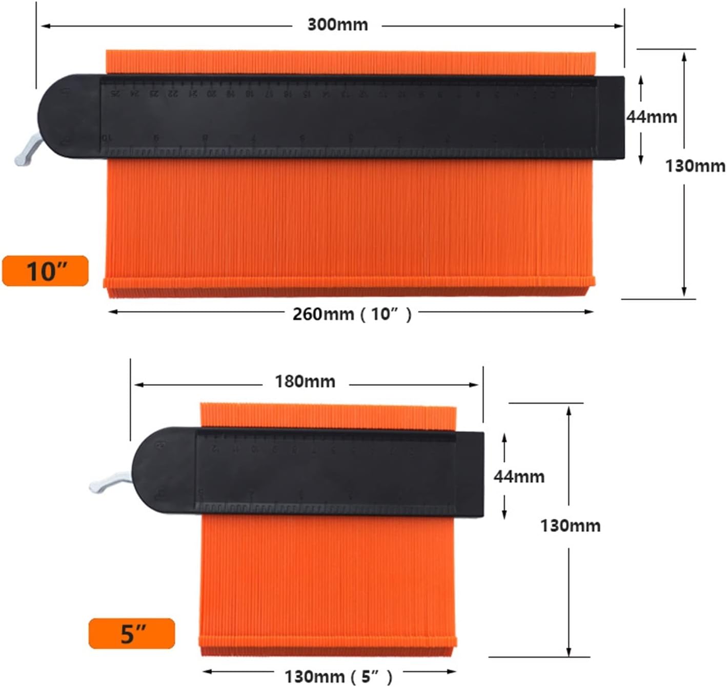 Indicatore di contorno del profilo: indicatore di contorno del profilo per regolare piastrelle, laminato, moquette, controllare dimensioni, modanature, ecc. Copia forma, strumento per la costruzione fai-da-te. Serratura in metallo: uso irregolare del duplicatore profondo della serratura in metallo, più resistente della serratura in plastica, chiusura più stretta. Non facile da rompere. Ampliamento e alta precisione: l'indicatore di contorno è largo a 60 mm mentre la larghezza dell'indicatore di contorno ordinario è di soli 25 mm. Utilizzo conveniente: il profilo del modello ha 2 dimensioni 5 "10" con strumento di misurazione del righello pieghevole regolabile, è molto comodo da usare. Materiale del calibro: plastica ABS e anima in metallo