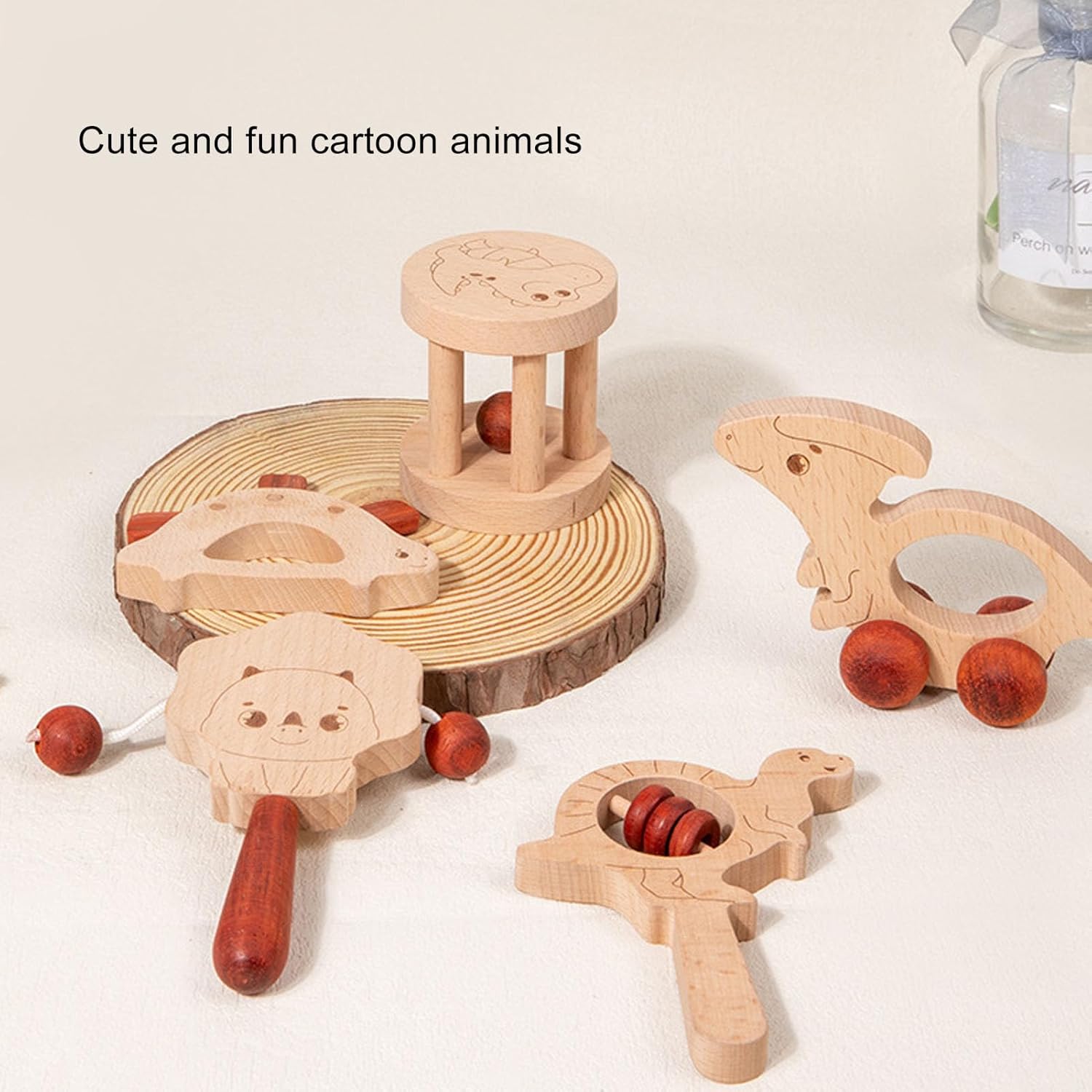 Materiali naturali: i giocattoli per bambini che afferrano il bambino e giocattoli a sonnuscolo in legno sono realizzati in legno naturale puro, garantendo la sicurezza, rendendoli ideali per i bambini da masticare senza effetti dannosi. Design multifunzionale: con un design multifunzionale che include un handbell, un clacker e altri elementi giocosi, questo giocattolo che afferra il bambino promuove lo sviluppo del tuo bambino. Interazione per bambini genitore: il giocattolo che afferra il bambino incoraggia il gioco interattivo, stimolando l'innata curiosità del tuo bambino e contribuendo a coltivare importanti abilità sociali attraverso attività coinvolgenti con genitori o caregiver. Musica e colori rilassanti: con suoni delicati e colori morbidi, questo giocattolo da culo in legno calma le emozioni dei bambini, aiutando a calmarli e aiutarli a dormire in pace. Dimensioni portatili: progettato per essere compatto e leggero, questo giocattolo che afferra il bambino è conveniente da trasportare, rendendolo adatto per giocare a casa o all'aperto, garantendo che il bambino si diverta ovunque.