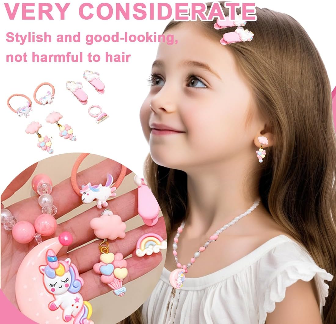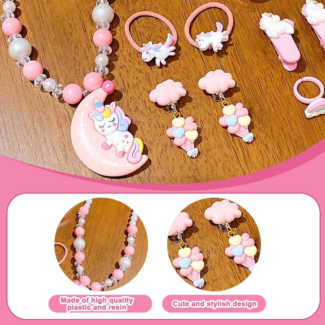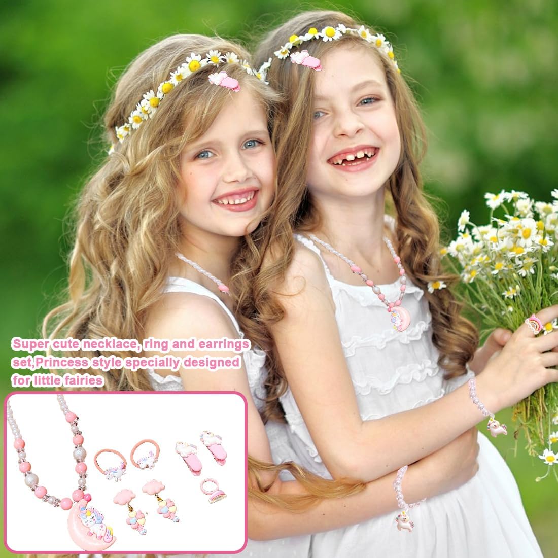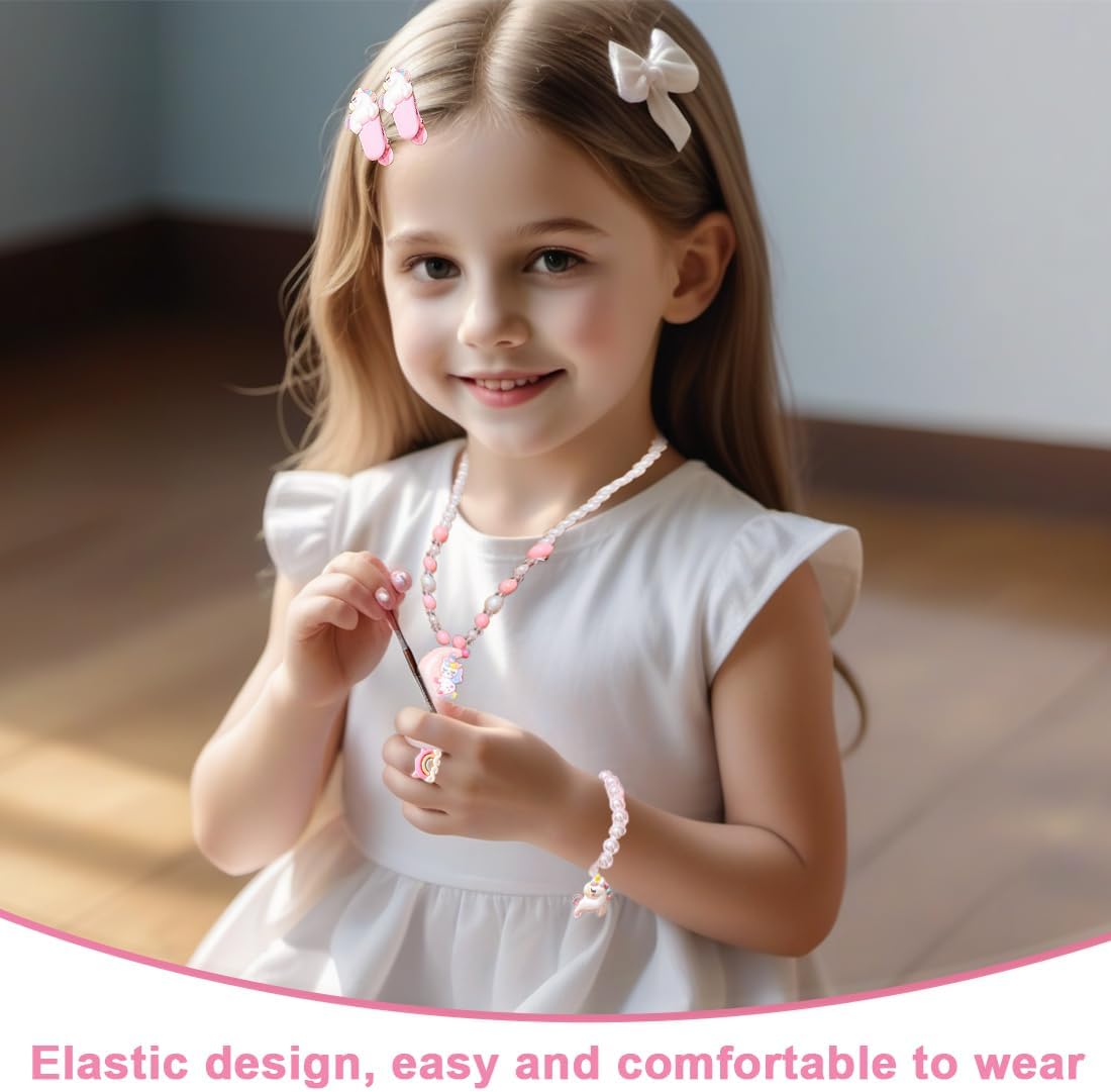 Design Creativo: Il set di gioielli a tema unicorno è perfetto per feste di principesse e giochi di abbigliamento, che non solo divertono, ma realizzano anche il sogno di essere una principessa per la vostra bambina Materiale di Alta Qualità: Il set di gioielli a tema unicorno è realizzato in un resina sicura e resistente all'usura, che non si rompe facilmente né sbiadisce, permettendo alla vostra figlia di sentirsi a proprio agio tutto il giorno Dimensioni Regolabili: Collane, anelli e bracciali sono tutti adattabili in dimensione, perfetti per bambine di diverse conformazioni corporee, garantendo un comfort ottimale Set di Gioielli per Bambina: Include 1 braccialetto, 1 collana, 2 orecchini e 1 anello, che renderanno la vostra bambina carina e affascinante, ricevendo molti complimenti Gioiello Unicorno di Eleganza: Il set di gioielli a tema unicorno è un regalo meraviglioso per le bambine, perfetto per compleanni, Natale, feste a tema unicorno, carnevale e altre occasioni divertenti