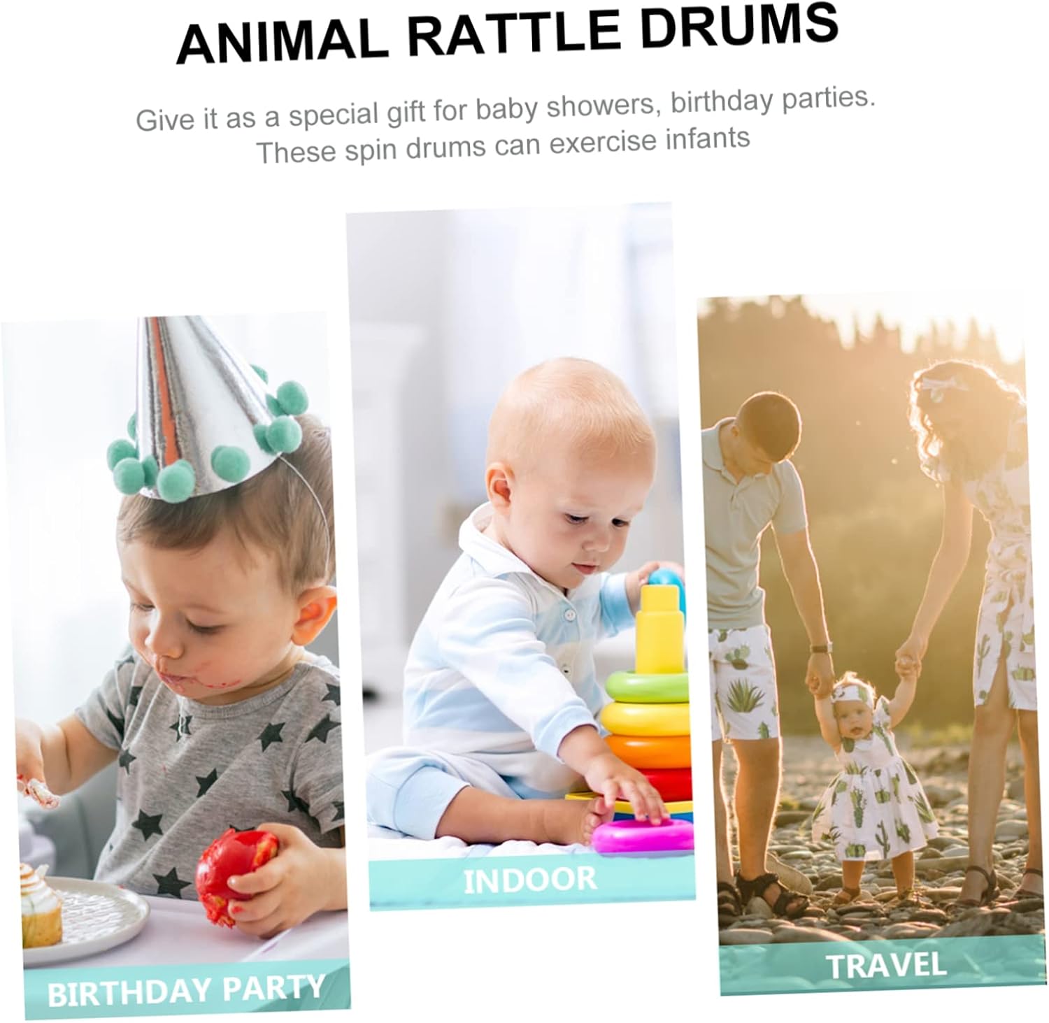 Tamburi a sonagli per : i tamburi hanno dimensioni adeguate per far giocare i in qualsiasi momento e ovunque, sonagli dei cartoni animati Sonagli per : questi tamburi sono sicuri e comodi per neonati e piccoli, tamburi a sonagli per animali Giocattoli shaker: i tamburi a sonagli hanno funzione antigoccia e resistente all'usura, tamburi di legno Giocattoli a sonagli per neonati: leggeri e portatili, per giocare al chiuso e all'aperto sempre e ovunque, sonagli in legno Sonagli per : realizzati in materiale, durevole e praticabile, senza sbavature, tamburi