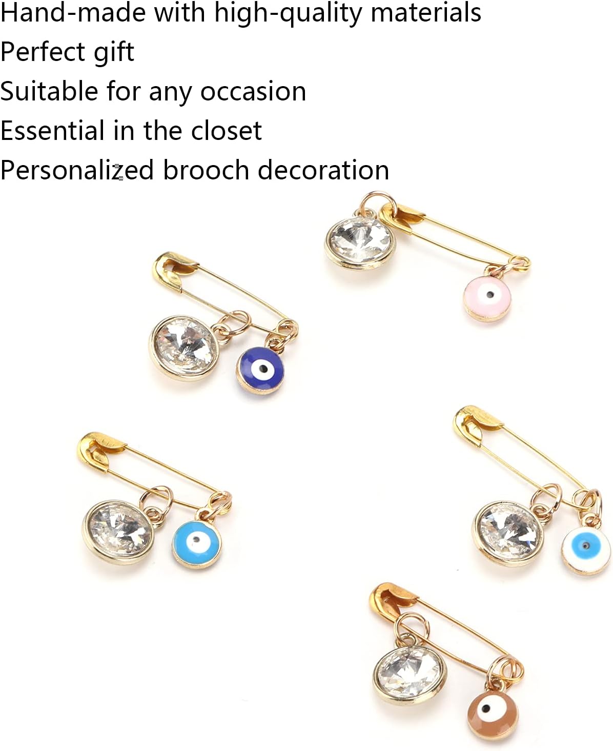 Set decorativo versatile: queste spille per vestiti offrono un abbellimento distintivo per vari indumenti e accessori. Questa collezione di spille per la spilla per abiti da donna consente un'espressione personalizzata attraverso l'arte indossabile, ideale per migliorare gli abiti quotidiani con stile simbolico Moda da abbinare: eleganti spille possono adattarsi bene abiti diversi, facili da ripararli su maglione, camicie, vestiti o cappelli, sciarpe e borse, bello da indossare quando fai shopping, lavori, appuntamenti, studia o organizzano feste, facendoti sembrare attraente tra le persone Buona fortuna per spillo: colore bello e brillante, lucentezza duratura, processo di lucidatura fine, questi decori possono essere utilizzati per un po '. Malte Eye Pin facile da indossare e decollare, può essere usato per molte volte Materiali di ferro e lega: questi malvagi pezzi di fascino degli occhi realizzati con materiali di ferro e lega con perle di vetro, mantengono il loro aspetto con cura adeguata, che catturano la luce attraverso i loro componenti di perline di vetro e finiture metalliche Il pacchetto include: il set include 5 pin per spille da spilla da 5 pezzi.
