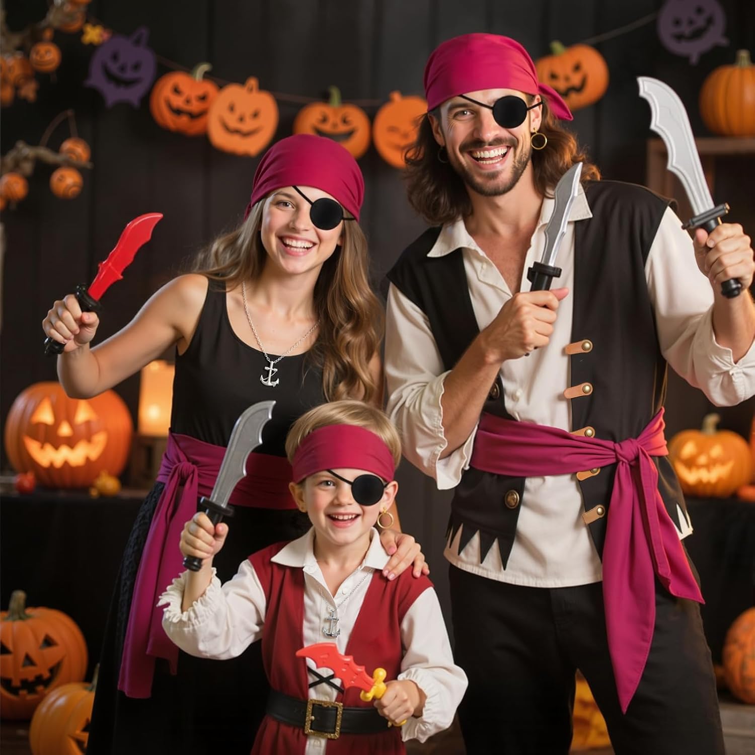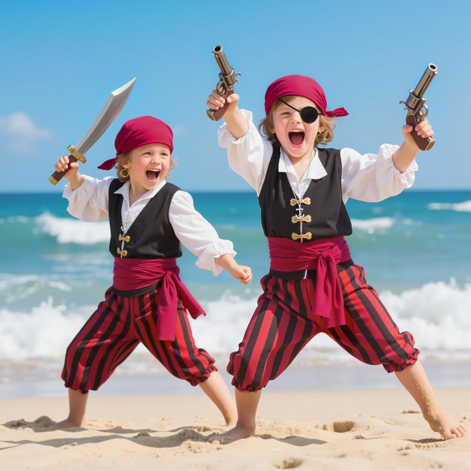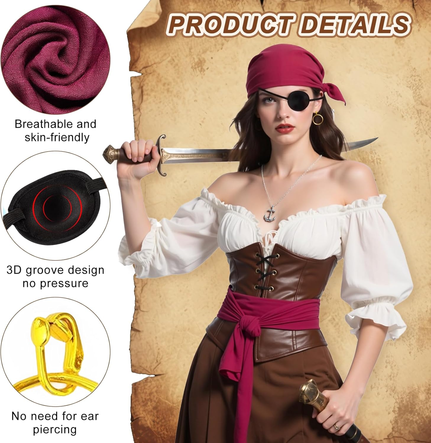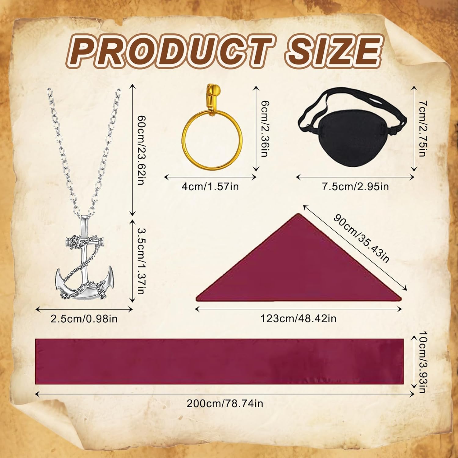 Descrizione prodotto Costume Pirata & Set Accessori - Completo Set Avventura Contenuto della confezione: Set accessori pirata da 5 pezzi Colore: Nero/Rosso/Oro Materiale: Poliestere Occasioni d'uso: Halloween, Carnevale, feste a tema, celebrazioni tematiche, giochi di ruolo Dettagli prodotto: ① Costume pirata in materiali morbidi e traspiranti ② Accessori pirata con regolabili ③ Taglia unica (adattabile universalmente) ④ Design autentico da pirata con accessori dettagliati ⑤ Include: foulard, cintura, orecchino, collana, benda per l'occhio Nota: Possibili lievi variazioni di colore e dimensione Avviso di sicurezza 48