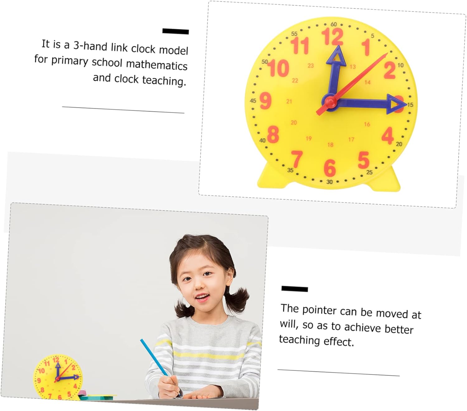 Strumento per l'apprendimento del tempo: i genitori possono giocare con i bambini per interagire con loro, modelli di orologio Giocattoli per l'apprendimento precoce: è anche una decorazione da tavolo per la casa, il soggiorno, la camera da letto, l'ufficio, ecc., per imparare a leggere l'orologio Bambini: il puntatore può essere spostato a piacimento per ottenere un migliore effetto didattico e insegnare l'orologio con connessione a 3 lancette: questo modello di orologio può stare stabilmente sul tavolo, il che è l'insegnamento degli oggetti di scena dell'orologio che rendono i giocattoli di apprendimento più intuitivi per i bambini: questo è un modello di orologio a 3 lancette per lezioni di matematica e orologio nelle scuole elementari, nonché per giocattoli da scrivania