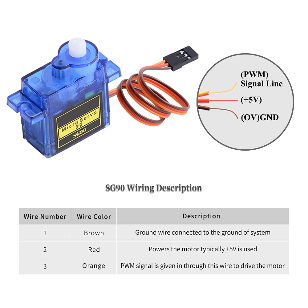 Adatto per la maggior parte degli elicotteri radiocomandati (RC) e aerei, robot giocattolo RC, barche giocattolo RC, ecc. Leggero, di alta qualità e veloce. Il servo è progettato per quasi tutti i sistemi di controllo radio. Un ottimo servomotore Arduino ad alta coppia che può ruotare in una posizione specifica Velocità di lavoro: 0,1 s / 60° (4,8 V); angolo di rotazione Coppia di sovrapposizione (4,8 V): 1 kg/cm Larghezza della banda morta: 7 usec Tensione di esercizio: 4,8 V ~ 6,0 V