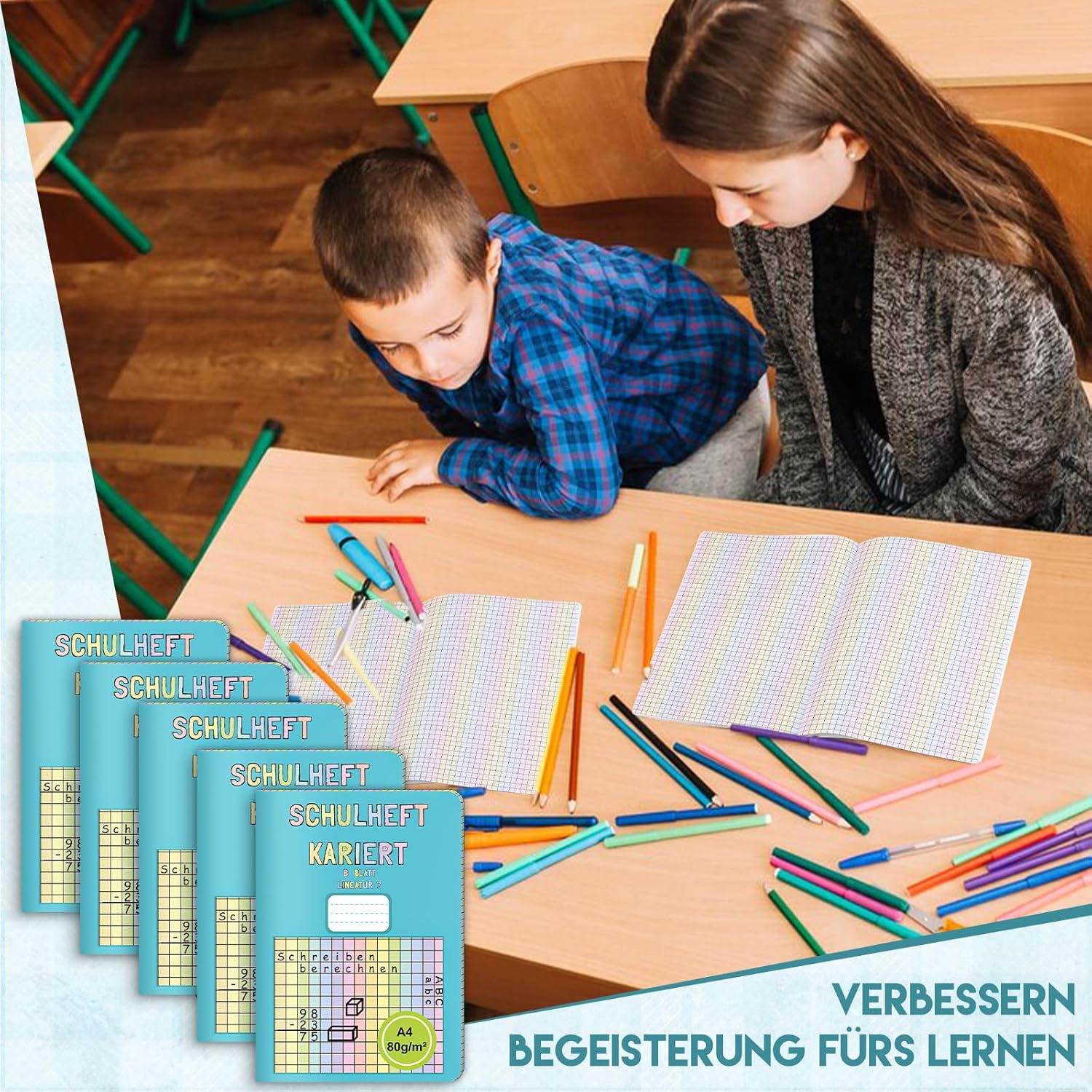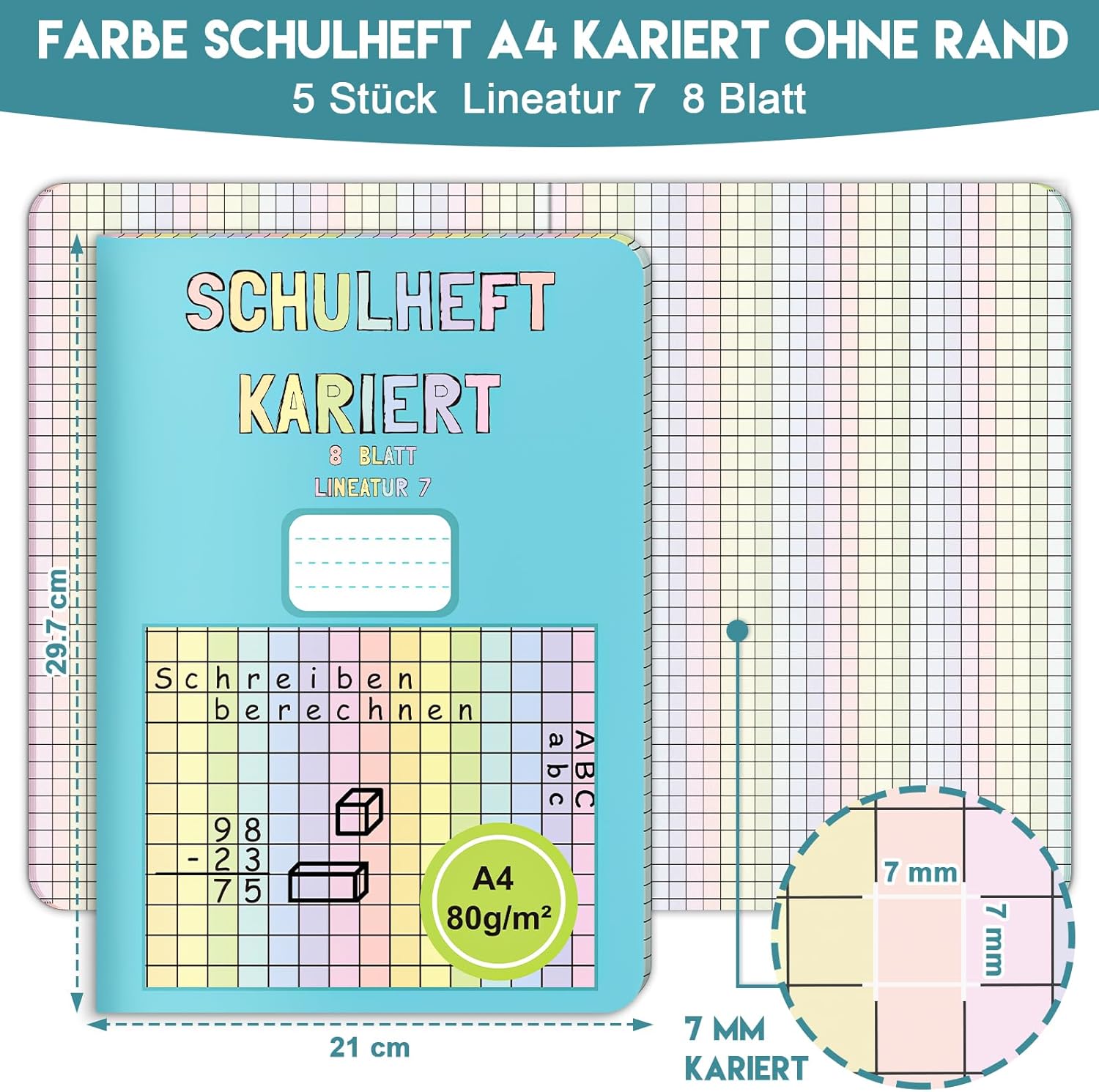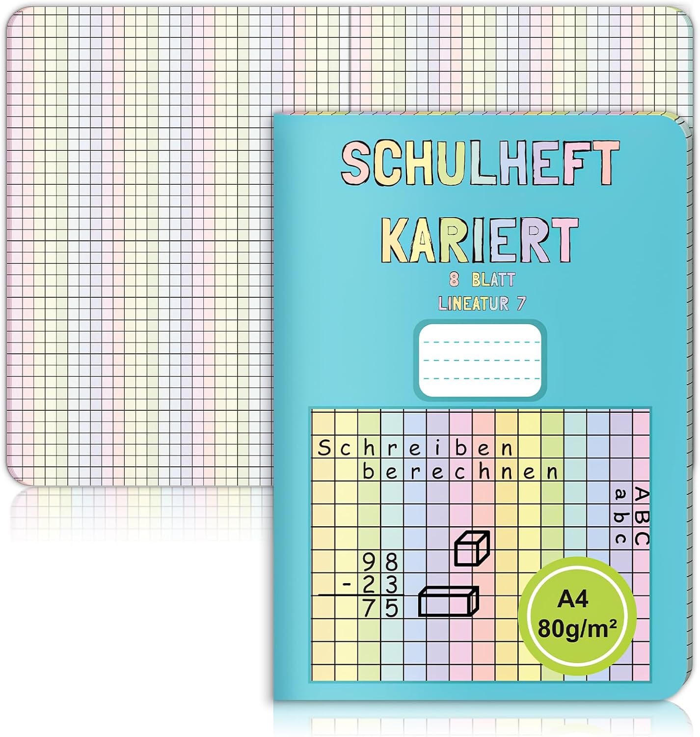 【Applicazioni di apprendimento】Questo set di 5 quaderni colorati A4 a quadretti è realizzato su misura per bambini in età inferiore e un pratico quaderno educativo. È ideale per esercizi di scrittura, calcoli matematici in classe, consolidamento della conoscenza e pittura creativa dopo la scuola. Perfetto come quaderno per matematica 1. Quaderno a scacchi di classe o versatile. Esperienza di scrittura migliorata: le pagine interne del quaderno A4 a quadretti rigatura 7 sono costituite da 80 g di carta A4 di alta qualità per la stampa a colori su entrambi i lati. I colori delicati proteggono gli occhi dei bambini, riducono l'affaticamento degli occhi e consentono una scrittura concentrata anche dopo un uso prolungato. Durevole e affidabile: la busta di carta da 250 g di rame di questo quaderno educativo è resistente alla stampa esterna. La rilegatura a punto sella assicura che il taccuino a quadretti rimanga robusto anche in caso di uso frequente nello zaino della scuola. Così il quaderno A4 a quadretti lineatura accompagna in modo sicuro 7 bambini nella vita scolastica. Rotondo sicuro degli angoli: gli angoli rotondi adatti ai bambini del quaderno scolastico formato A4 a quadretti proteggono le mani piccole da lesioni. Questo dettaglio ben congegnato rende il quaderno di matematica 1. Classe non solo più sicura, ma anche visivamente accattivante, così il quaderno di apprendimento diventa il compagno popolare. Quadratura da 7 x 7 mm: i lati senza bordi del quaderno A4 a quadretti lineatura 7 con quadri colorati offrono un perfetto orientamento. Sia come libretto di matematica 1. Quaderno a quadretti di classe o creativo: la rigatura 7 favorisce il lavoro concentrato e fa desiderare l'apprendimento. Il colore del quaderno scolastico A4 a quadretti supporta in modo ottimale i primi passi a scuola.
