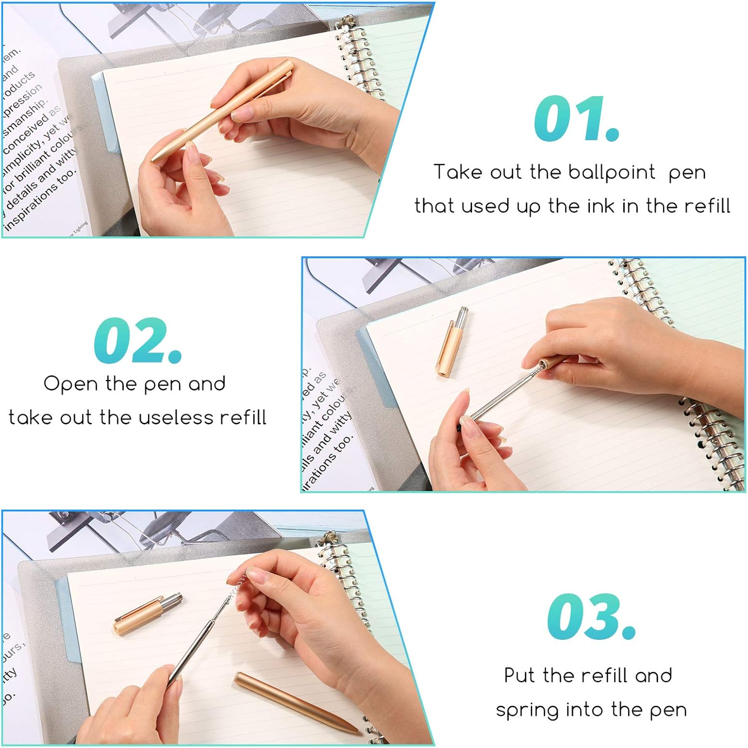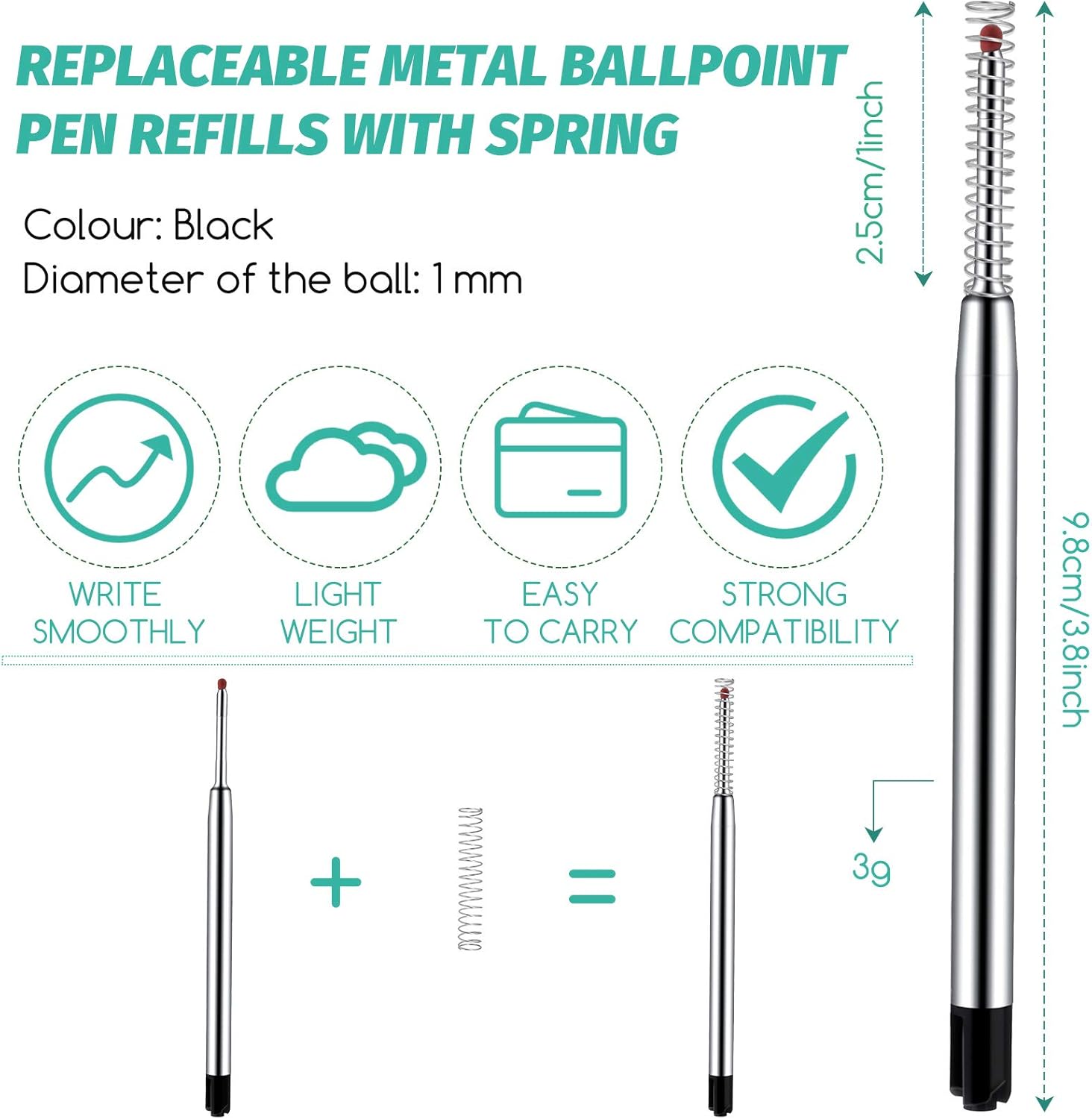 Dimensioni adatte: le ricariche per penna a sfera in metallo sostituibili da 1 mm sono lunghe circa 9,8 cm/ 3,8 pollici, facili da trasportare; Puoi metterle in studio o in ufficio, così puoi usarle quando serve, adatte alla maggior parte delle penne a sfera con la stessa ricarica; Si prega di controllare lo stile della ricarica prima di ordinare per assicurarsi che si adatti alla penna a sfera Materiale di qualità: la parte esterna di queste ricariche per penne a sfera è in metallo, sono resistenti e robuste, con un buon tocco, aspetto liscio e finitura lucida Resistenti e lisce: queste ricariche per penne a sfera in metallo possono essere applicate a lungo e prolungano la vita della tua penna preferita; Inoltre, il design del pennino è liscio, l'inchiostro della ricarica della penna non si romperà improvvisamente durante la scrittura, offrendoti un piacevole tempo di scrittura; Ogni ricarica è dotata di una molla per evitare il mancato utilizzo della penna preferita a causa della mancanza di molla o danni alla molla Contenuto della confezione: riceverai 5 pezzi di ricariche per penne a sfera in metallo con inchiostro nero, perché sono molto resistenti, 5 pezzi sono sufficienti per l'uso a lungo; Si prega di prestare attenzione al numero di colori prima di effettuare un ordine Design accurato: l'inchiostro di queste ricariche per penne a sfera in metallo si asciuga rapidamente, non devi preoccuparti che l'inchiostro si attacchi alle mani, alla scrivania, ecc; Inoltre, c'è un cappuccio sulla punta della penna prima dell'uso, che può impedire che l'inchiostro si asciughi e mantenerlo a lungo, il che è comodo per l'apprendimento e il lavoro