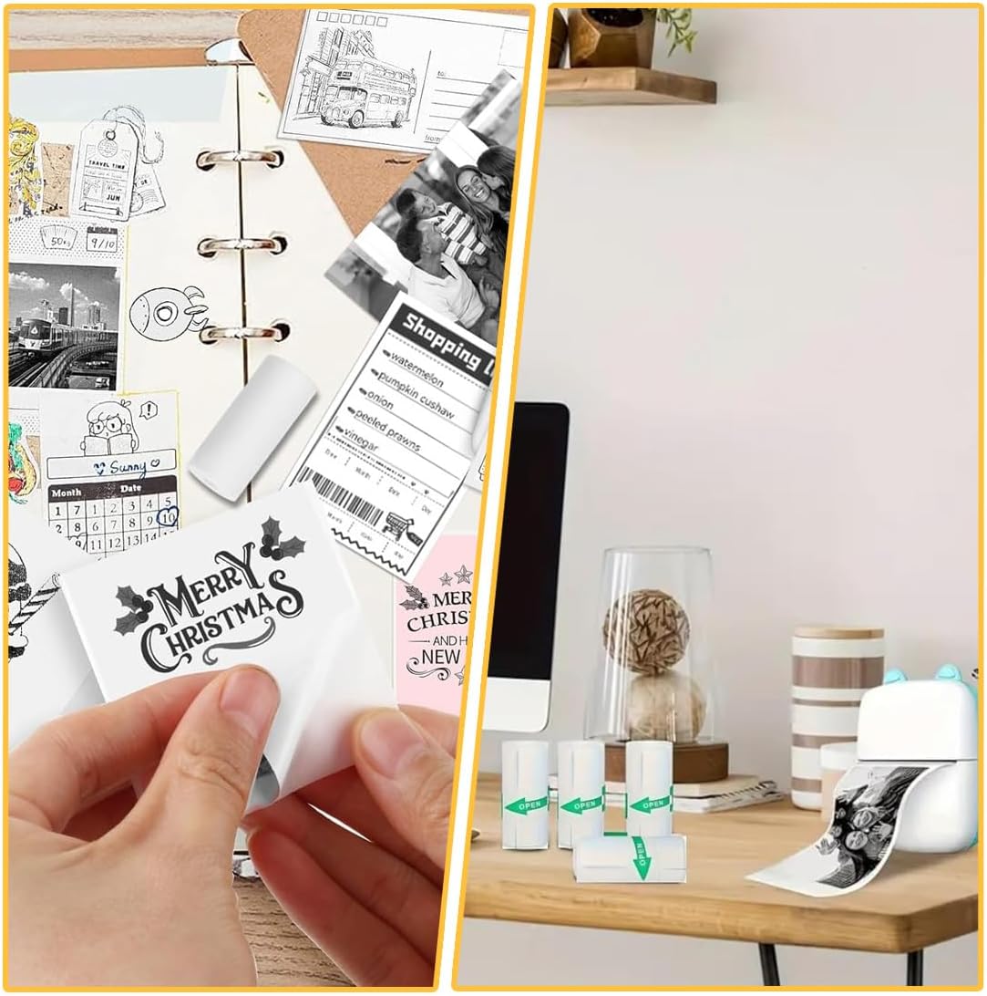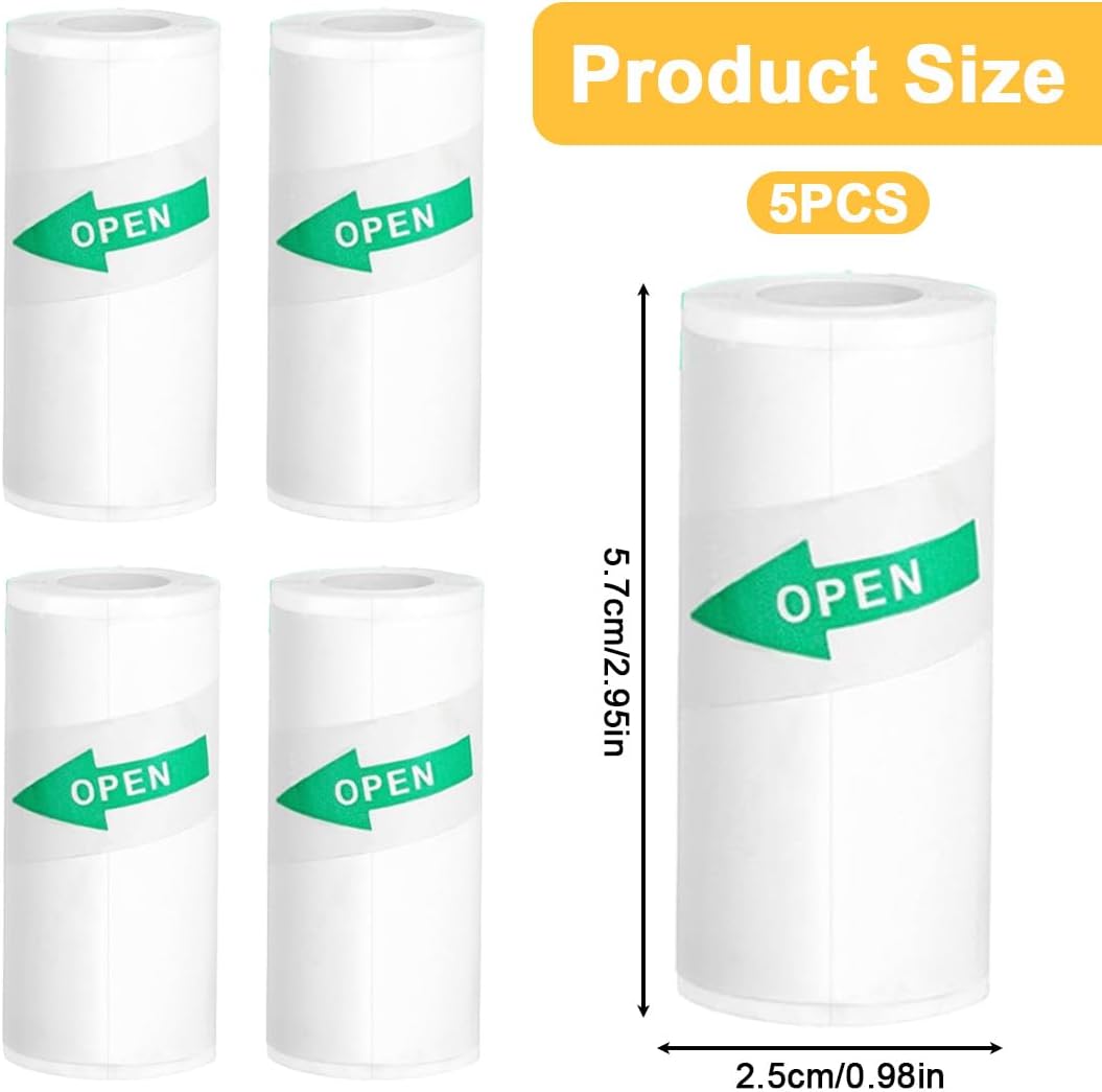 Carta termica versatile per bambini: Include 10 rotoli di carta termica, con adesivi bianchi autoincollanti. Dimensioni: 57 mm x 25 mm, compatibile con tutte le mini stampanti termiche più comuni. Perfetta per progetti creativi e ideale per condividere momenti speciali con amici e familiari Materiali di alta qualità: Realizzata in materiale resistente e privo di BPA, la carta termica è impermeabile, resistente all'umidità e ai graffi. Garantisce risultati di stampa chiari senza bisogno di inchiostro e aderisce in modo affidabile su superfici lisce. Sicura per i bambini e durevole nel tempo Facile da usare: Puoi tagliare la carta termica con le forbici per ottenere la dimensione desiderata. Disponibile in 4 colori, è perfetta per stampare foto, note o design creativi. Grazie al retro autoadesivo, l'applicazione è semplice e veloce, rendendola ideale per ogni occasione Ideale per progetti creativi: Perfetta per stampare foto, etichette, note adesive, album di ricordi e adesivi personalizzati. La carta termica può essere decorata con matite colorate, permettendoti di personalizzare e organizzare i tuoi disegni preferiti in modo unico e divertente Installazione pratica: L'installazione della carta termica è semplice e intuitiva, ma è importante posizionarla nella direzione corretta per garantire una stampa ottimale. Segui le istruzioni per evitare errori e ottenere risultati perfetti ogni volta