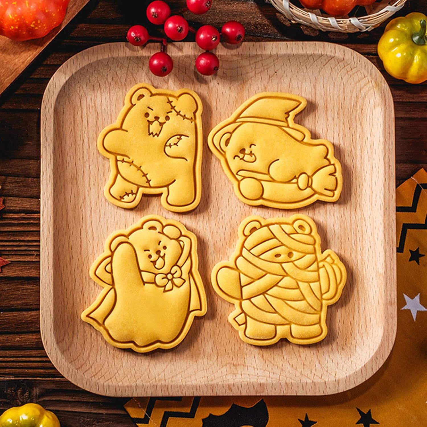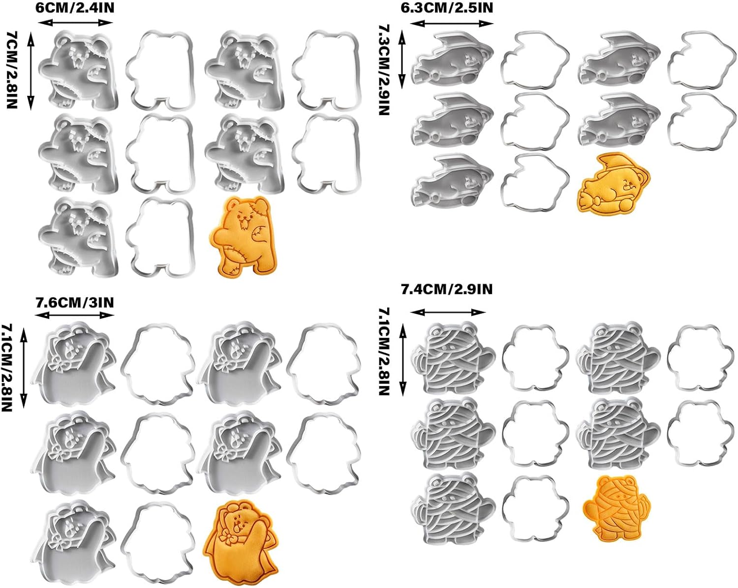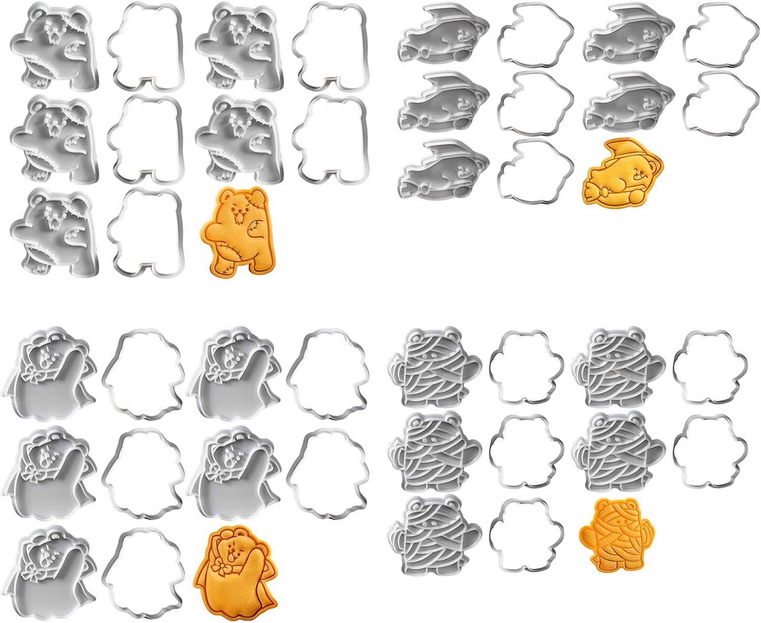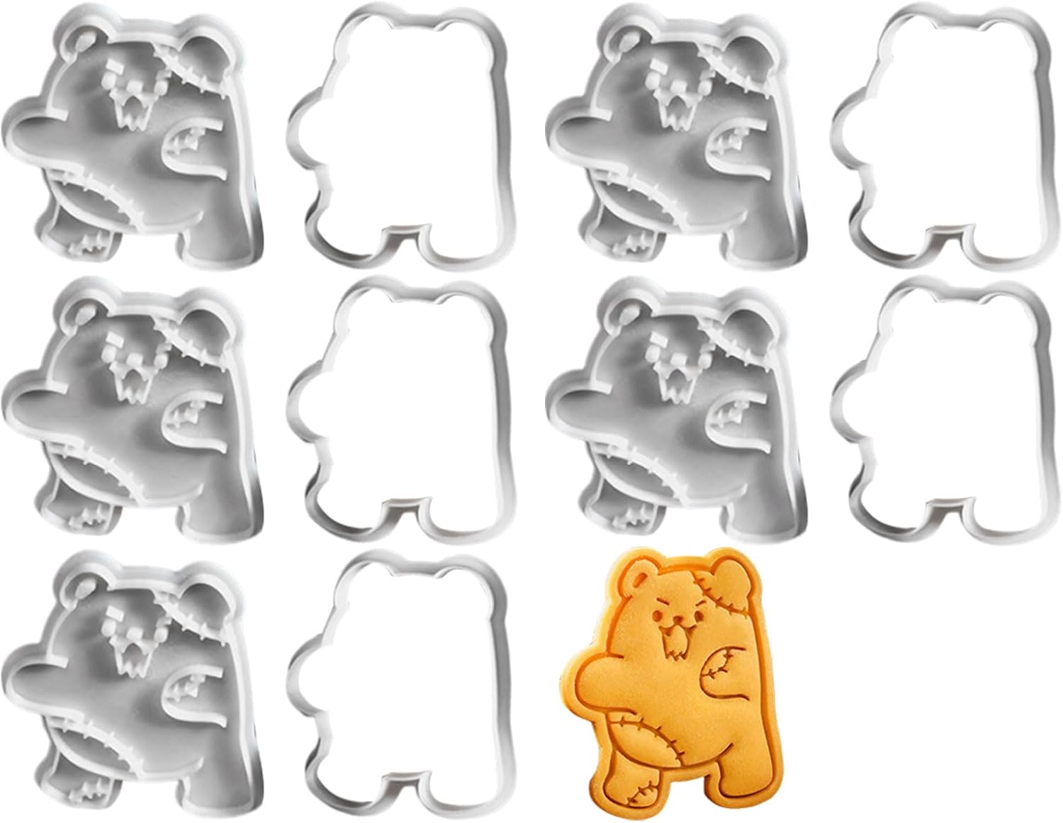 Con questi stampi per biscotti facili da usare, stupisci gli ospiti e dai vita al tuo dessert e assicurati che la tua creazione di dolci sia il successo di un incontro spettrale. Dotato di stampi per biscotti a forma di orso di Halloween, dotati di stampi senza strati che producono dolci e caramelle. Adatto agli appassionati di pasticceria, ai genitori creativi e a chiunque desideri aggiungere un tocco alla propria festa di Halloween. Trasforma la tua cucina in panetteria e crea dolcetti per feste di Halloween, eventi scolastici o come amuleto per amici e familiari. Questo set completo include una varietà di stampi per orsi perfetti per vacanze senza fine. Il divertimento è stato creato