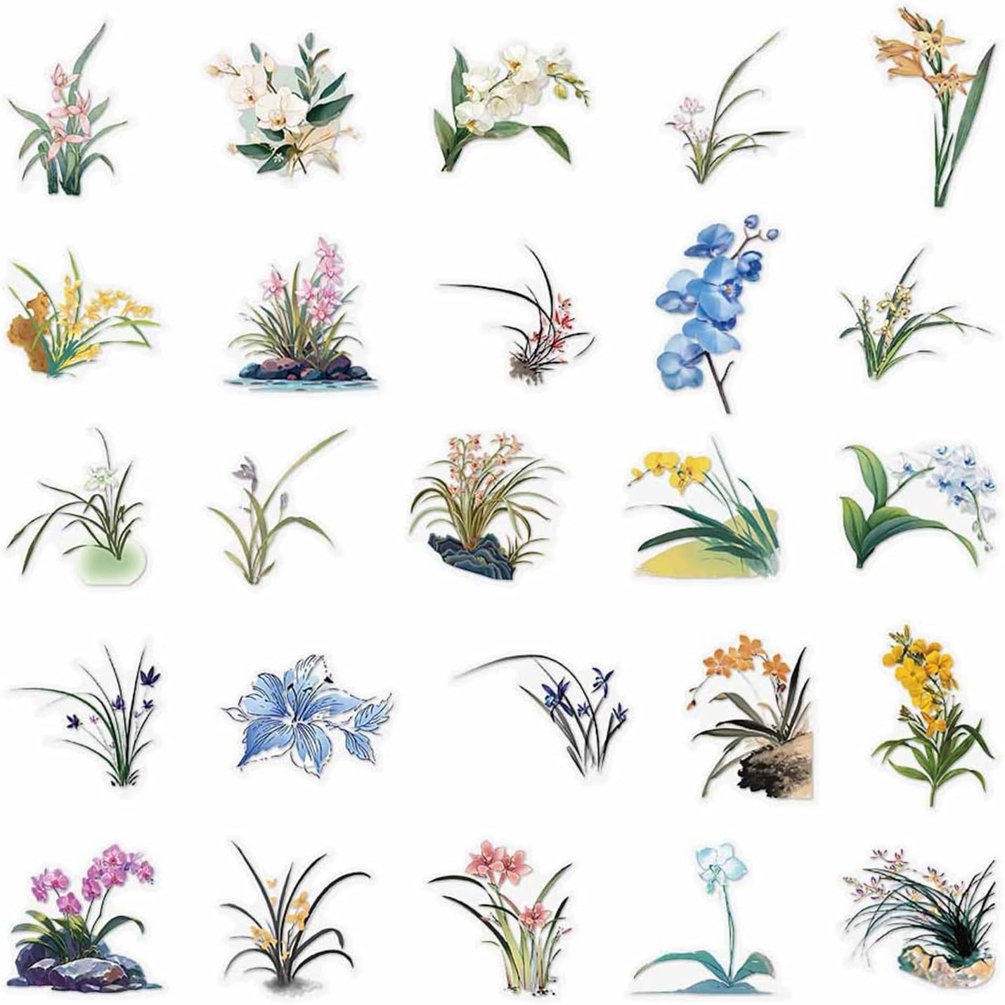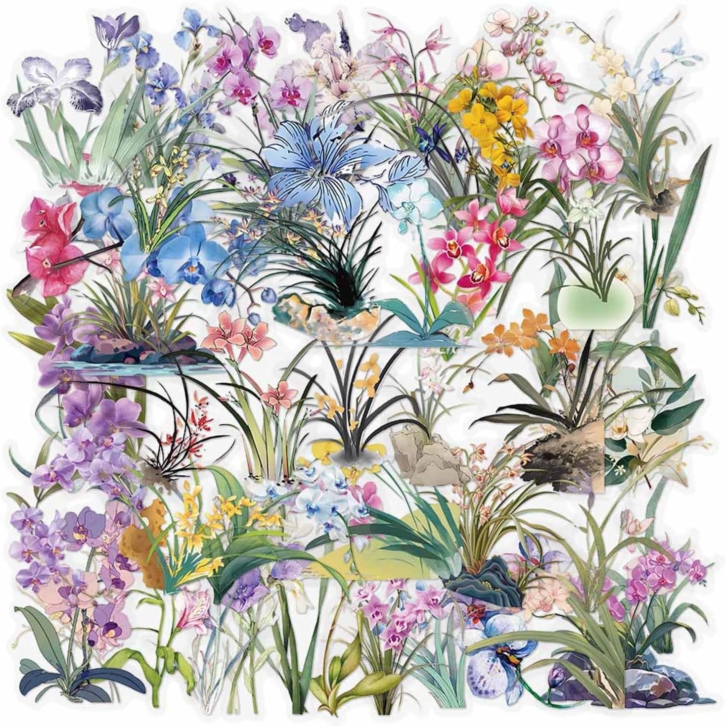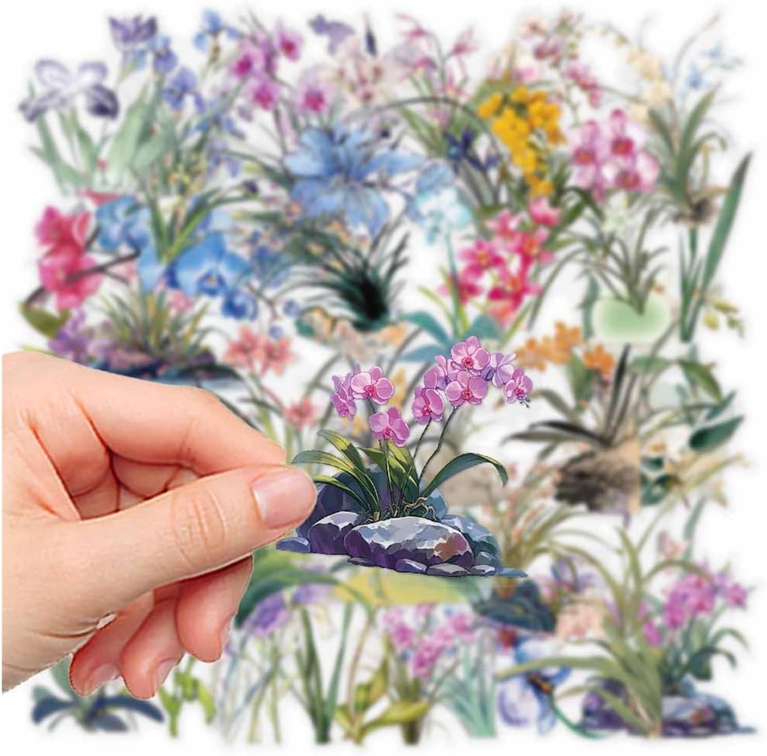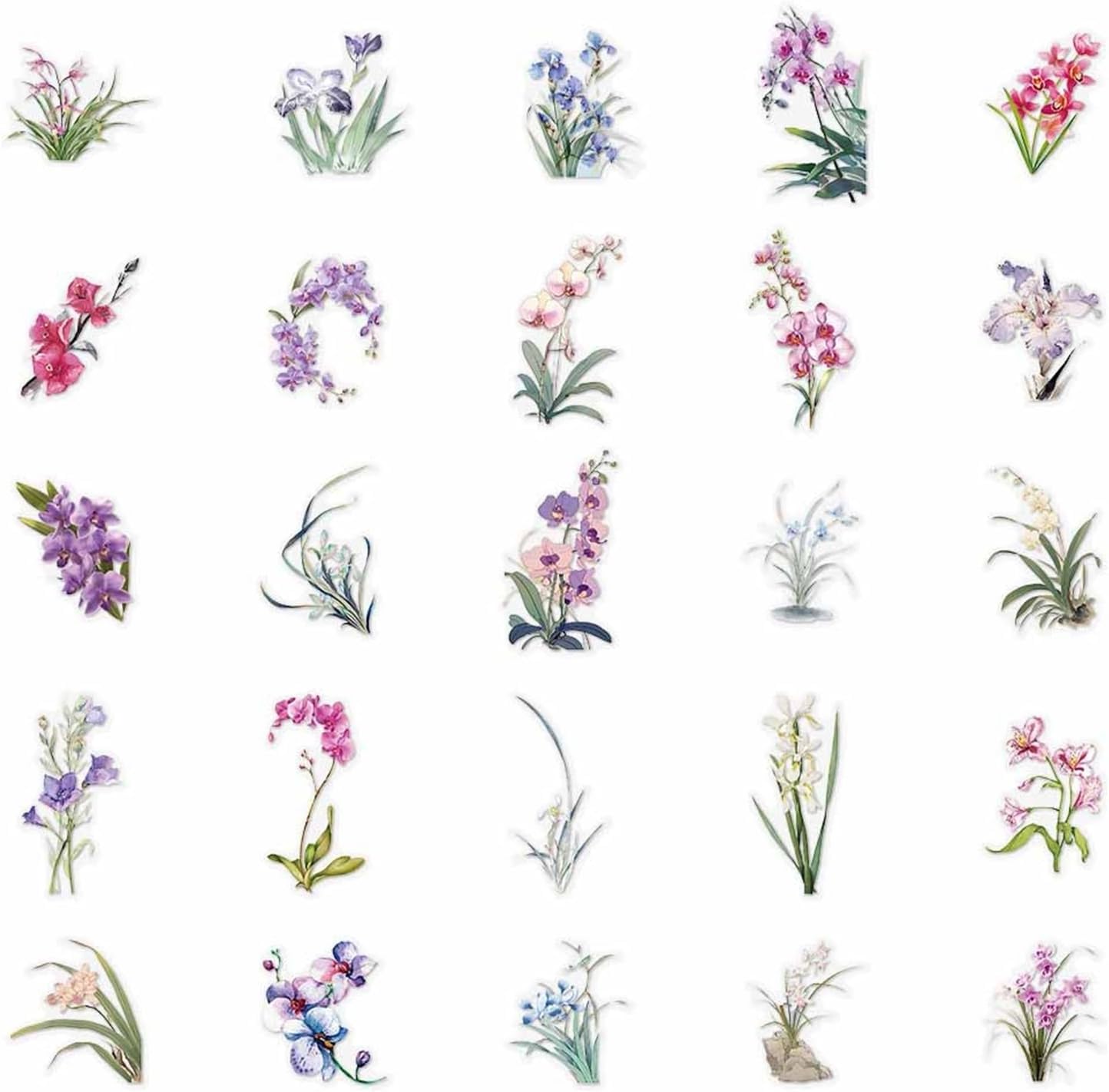 50 adesivi in vinile impermeabili con estetica floreale orchidea per diario, valigia, laptop, per ragazze e adolescenti