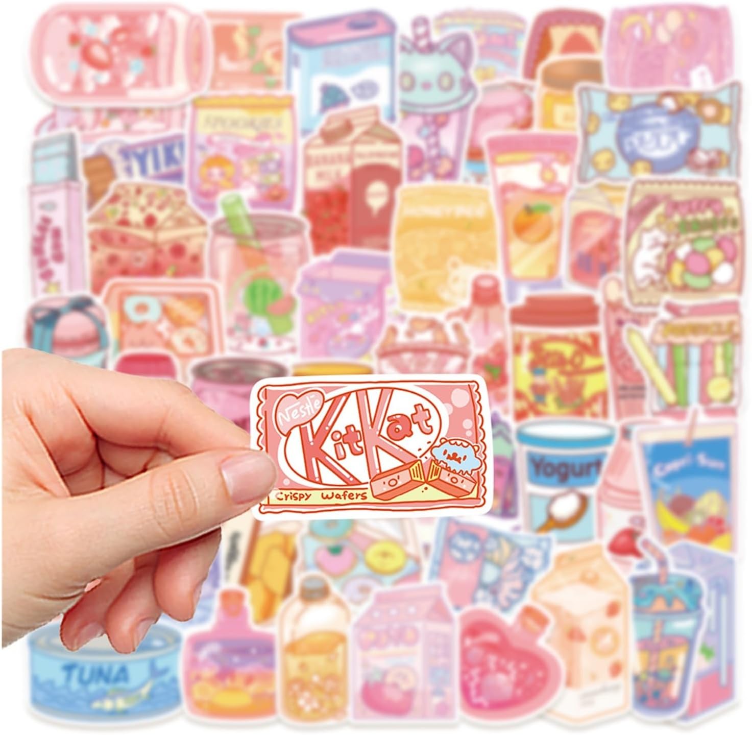 50 adesivi in vinile per snack, stile cartone animato, adesivi impermeabili estetici carini per notebook, valigia, bottiglia d'acqua, ragazze, adolescenti