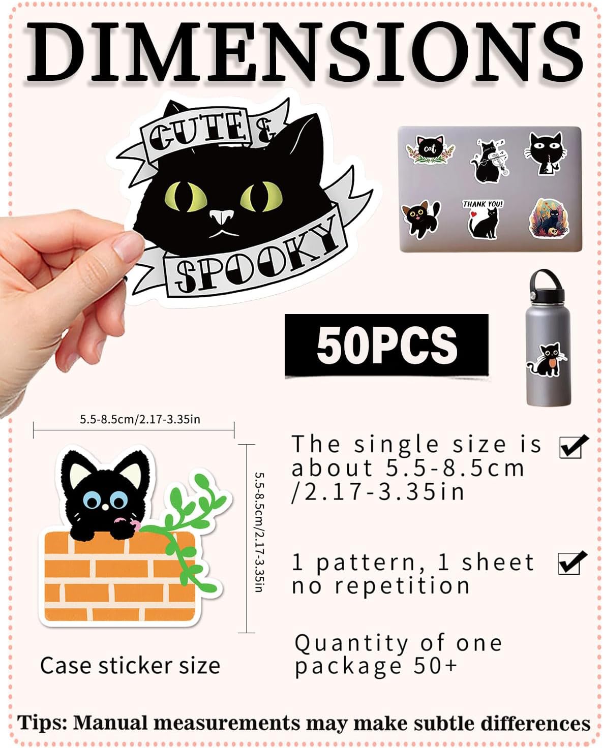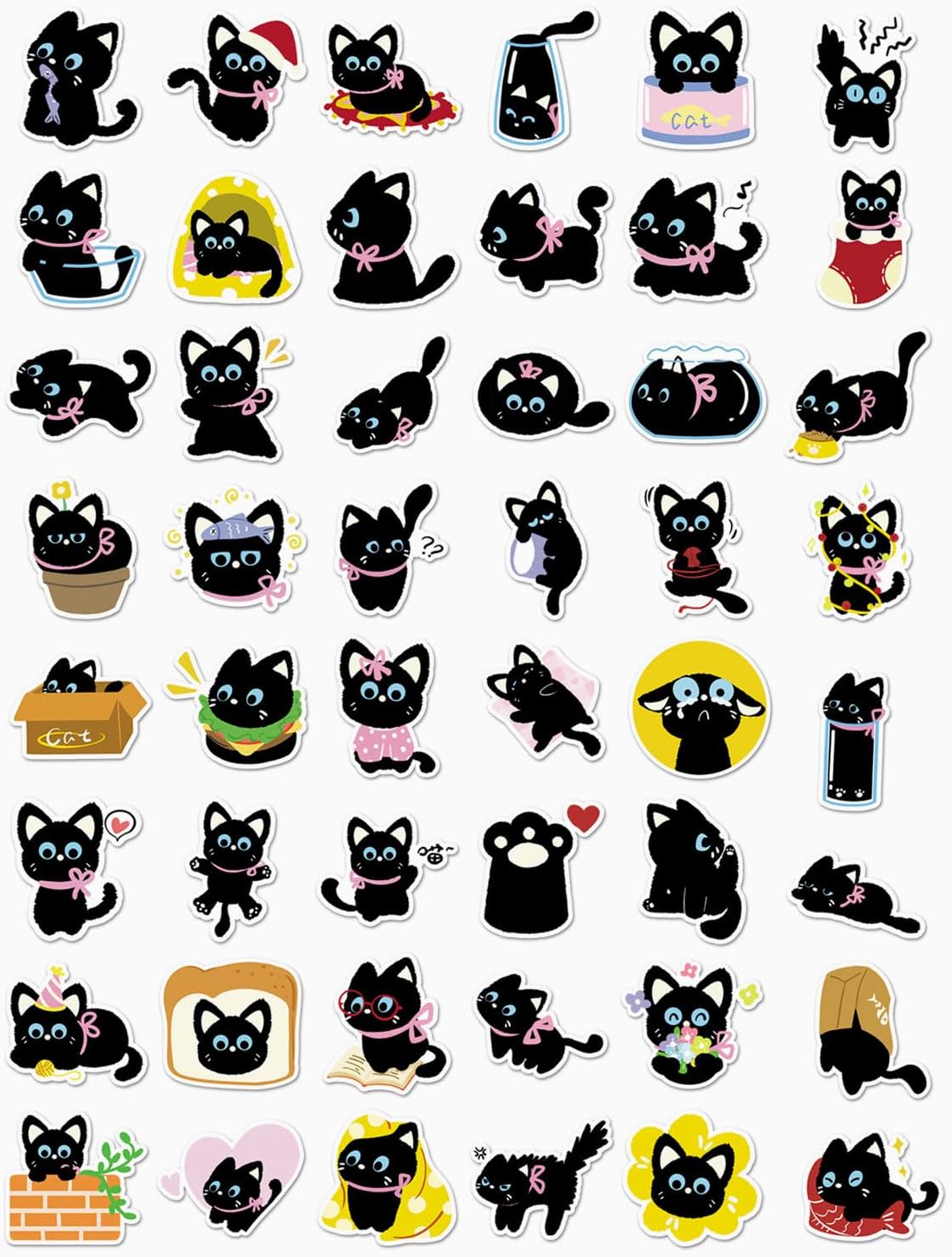 Adesivi con gatti carini: ogni confezione contiene 50 adesivi con gatti carini. Modello unico e personalizzato perfetto per le bambine! Gli adesivi colorati danno vita al colore. Lode e umorismo! Il miglior regalo per amanti, amici e adolescenti. Materiale adesivo: vinile impermeabile al 100%. Gli adesivi sono realizzati in materiale PVC impermeabile, impermeabile e resistente ai raggi UV. Inoltre abbiamo un W.P.S. impermeabile. Aggiunto 2,35 strati per evitare sbiadimenti. Applicazione senza problemi: gli adesivi possono anche essere rimossi facilmente. Ogni adesivo viene tagliato nella forma e dimensione corrette. Ricompensa e regalo: il miglior regalo per i tuoi bambini, amici e amanti come decorazione fatta in casa. Circa 2-3,23 pollici. Riceverai il disegno dell'adesivo che vedi nelle immagini. Non a caso. Decorazione alla moda: adatta per abbellire vari oggetti. Come laptop, bottiglie d'acqua, skateboard, valigie, biciclette, automobili, valigie, camere da letto, telefoni cellulari, tablet, ecc.