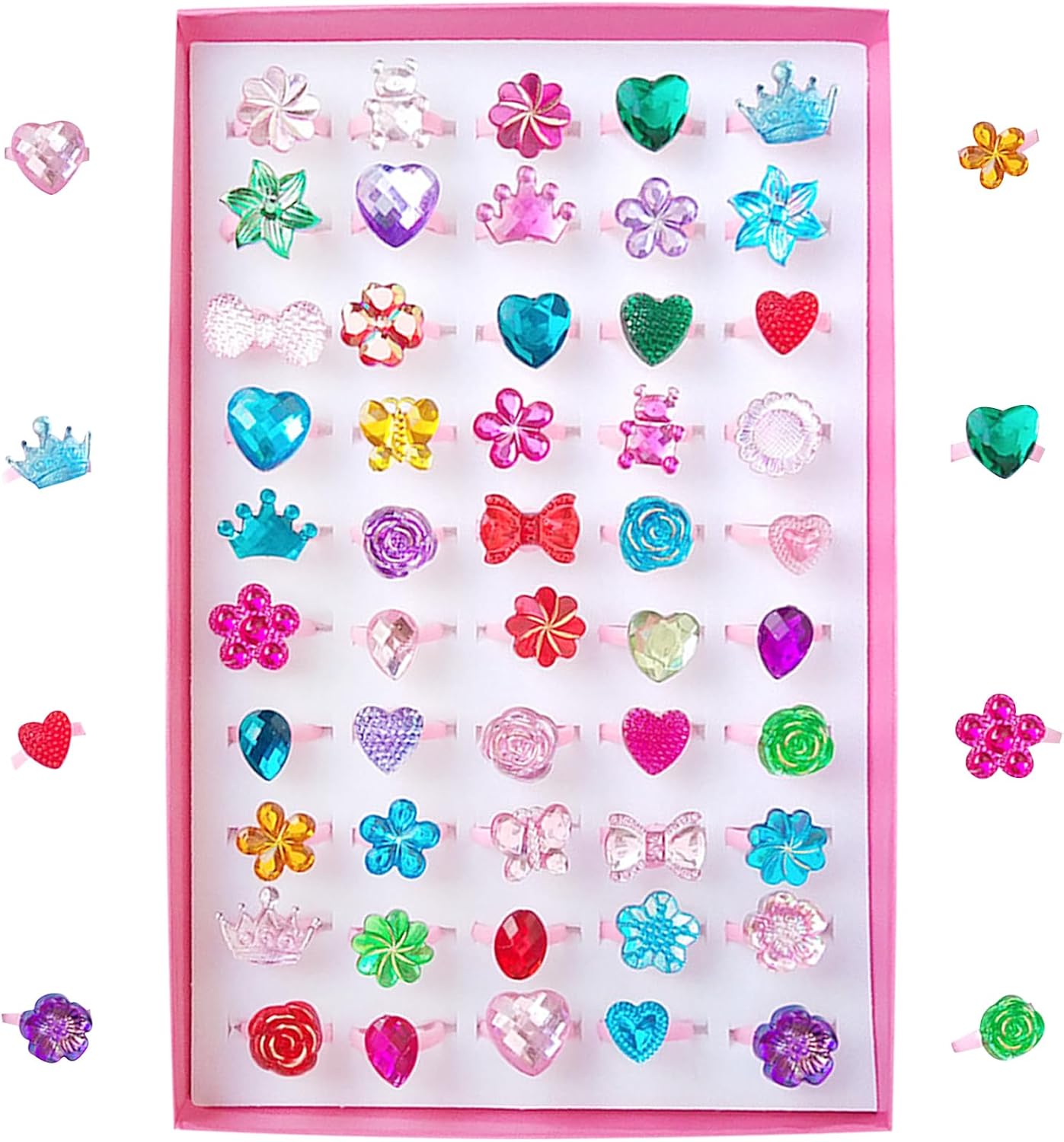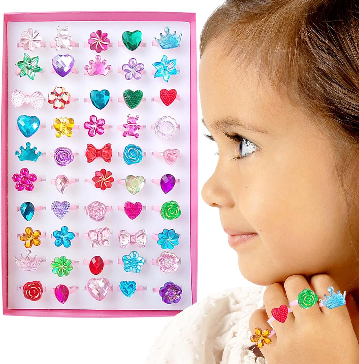 Descrizione del prodotto Design alla moda: anello da ragazza confezionato con stili diversi che affascineranno la tua ragazza. Esistono molti colori e stili diversi e puoi abbinare diversi abiti da principessa ogni giorno per mostrare stili diversi. Misura dell'anello per bambini regolabile: questi anelli per bambini per ragazze sono regolabili per adattarsi alle dita delle tue bambine. Il diametro interno dell'anello è di circa 15 mm, regolabile e adatto alla maggior parte delle bambine. Acquistalo come regalo di compleanno per bambine di 3-8 anni senza preoccupazioni. Dolci ricordi: anelli adorabili e carini per bambini, perfetti per riempire borse da festa, riempitivi di pinata, finto tea party, travestimenti da principessa, forniture per feste di compleanno, abbigliamento quotidiano, carnevale, scrigni del tesoro e altro ancora. I tuoi bambini lo adoreranno! Specifica Opzioni colore: Colori multipli come rosa, blu, viola, verde, giallo e altri Quantità: 50 anelli per set Confezione: Viene fornito in una comoda scatola di immagazzinaggio La confezione include 50 anelli colorati con pietre preziose per bambini in diversi colori e forme