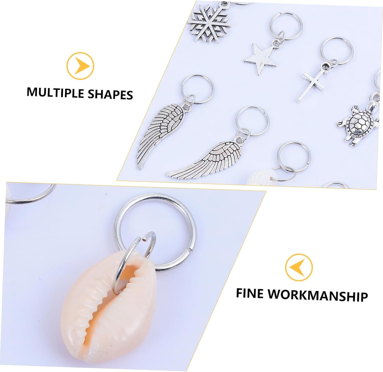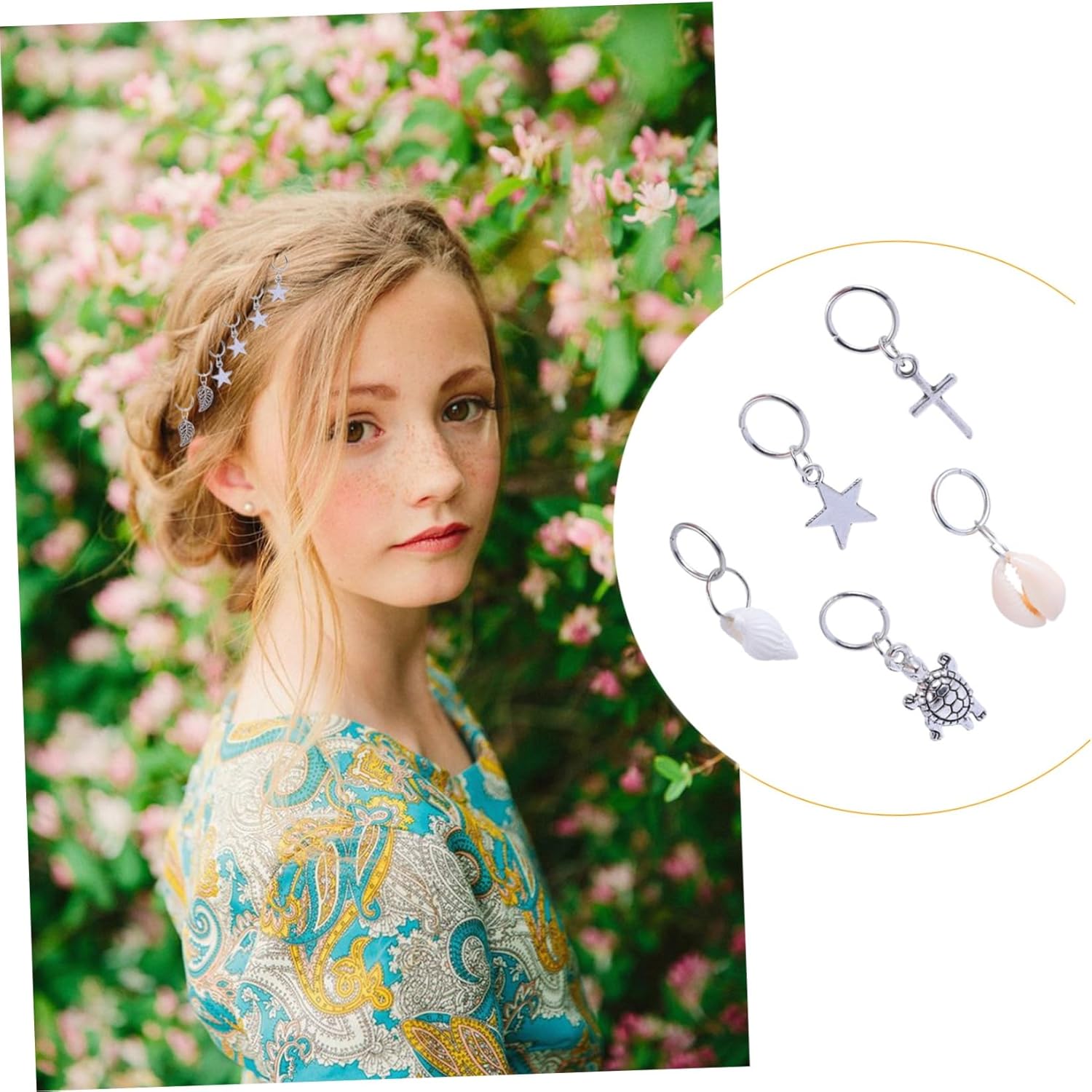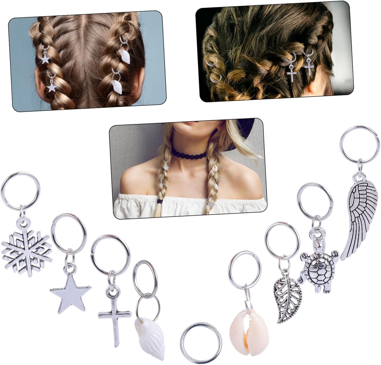 Accessori per fermagli per capelli: devi solo intrecciare i capelli e aprire l'anello per posizionarli nel posto desiderato, potrebbe anche essere il ciondolo per capelli dei tuoi amici per le trecce Capelli: sono fatti di materiali e usi, anelli per trecce e accessori Intrecciatura per capelli: è l'accessorio per capelli per feste in maschera di Halloween, feste di Natale, spettacoli teatrali, feste in maschera, balli in maschera ecc. Accessori per capelli Anelli per gioielli per capelli: facili da usare, intreccia o dividi i capelli nello stile che desideri, quindi apri l'anello per capelli e posizionalo nel posto desiderato, accessori per capelli tribali Capelli con gioielli clip: sono disponibili diversi stili in base alle tue esigenze, come ad esempio: b. foglie, stelle e altro, anelli per capelli vichinghi