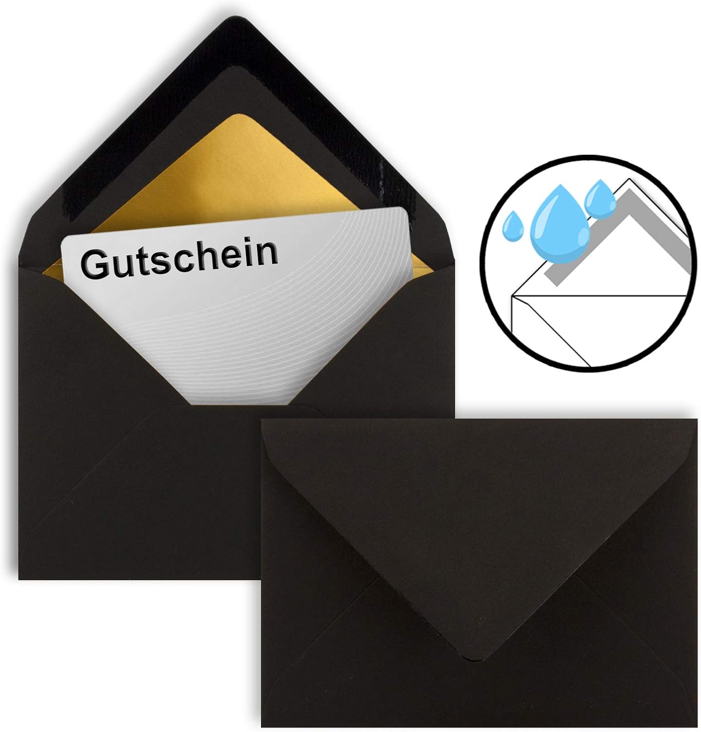 - Questo formato è perfetto per la spedizione di carte regalo (in formato carta di credito), regali in denaro, saluti floreali, inviti per feste, biglietti di ringraziamento e molto altro ancora. Formato: DIN C7. Dimensioni: 81 x 114 mm (8,1 x 11,4 cm). Grammatura: 120 g/m². Tipo di chiusura: adesivo da inumidire con gommatura, aletta appuntita da inserire o chiudere. Questa busta nera con interno dorato renderà il tuo messaggio importante e prezioso. Già al tatto, il destinatario apprezzerà questa busta di alta qualità. Contenuto: 50 buste con interno dorato. Produzione e vendita dalla Germania. GUSTAV NEUSER. Passione per la carta da oltre 100 anni.