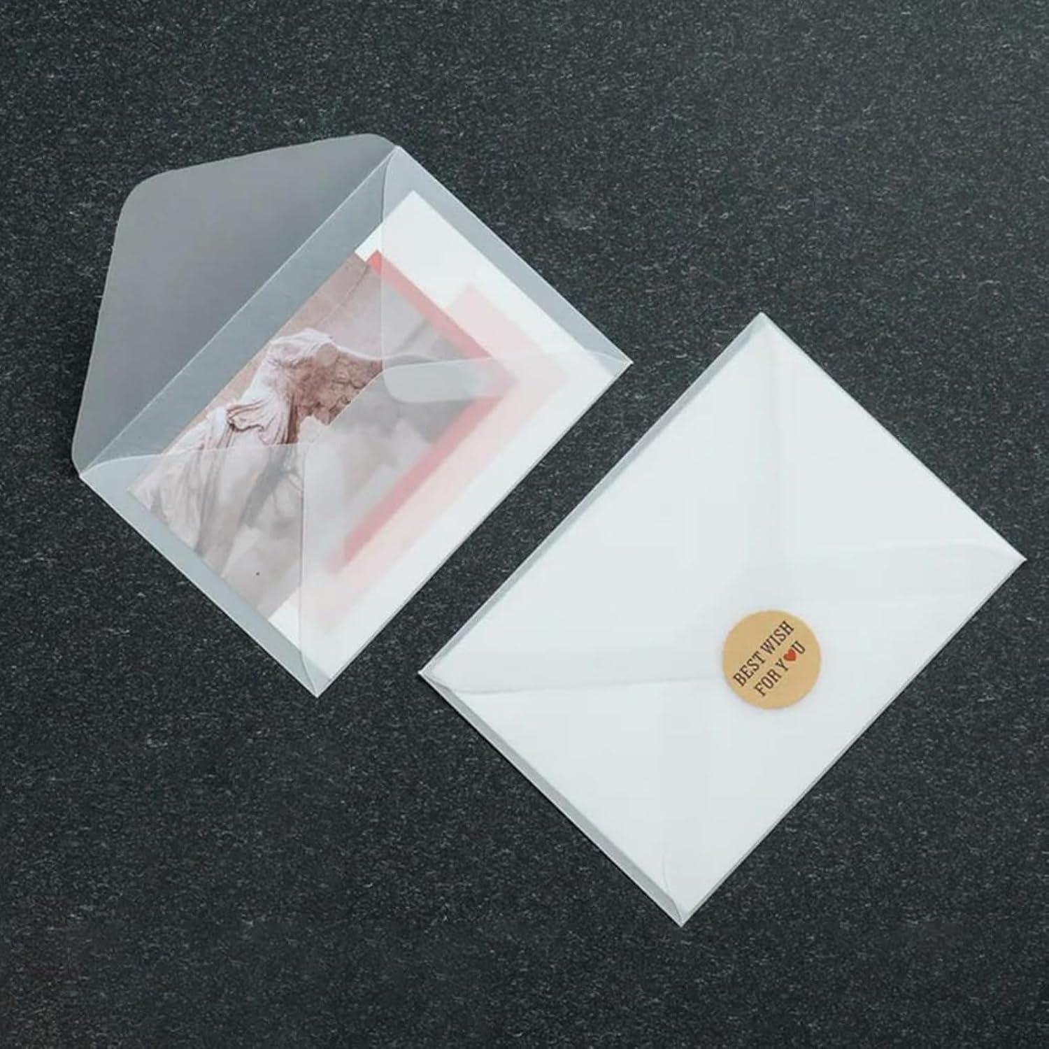 【Materiale】: Le nostre buste sono realizzate in carta kraft, la carta è fine e delicata, spessa e ruvida e risulta piacevole al tatto. Lascia che il destinatario la conservi a lungo, la busta non si romperà facilmente, inoltre l'abbellimento del nastro, è bellissima e ha un senso di cerimonia allo stesso tempo. 【Design trasparente】le buste per biglietto di auguri sono progettate con una superficie traslucida e bianca, che è comoda per distinguere il contenuto della lettera. Puoi anche disegnare motivi o adesivi sulla copertina per goderti il divertimento fai da te. 【Ideale Per Il Fai Da Te】 le nostre buste kraft colorate hanno copertine vuote per il fai da te per creare il tuo stile. Puoi scrivere le tue parole o disegnare immagini di persone a cui tieni particolarmente. Questa sarebbe un'ottima lettera per esprimere il tuo amore o la tua gratitudine nel tuo modo unico. 【Contenuto della confezione】 questo set di buste in vetro include 50 buste in carta trasparente, semplici e belle, sufficienti per soddisfare le diverse esigenze di utilizzo e sostituzione. 【Ampio Utilizzo】le mini buste piccole sono perfette per cartoline di Natale, partecipazioni di nozze, inviti a feste, biglietti di ringraziamento, biglietti d'auguri e altre occasioni.