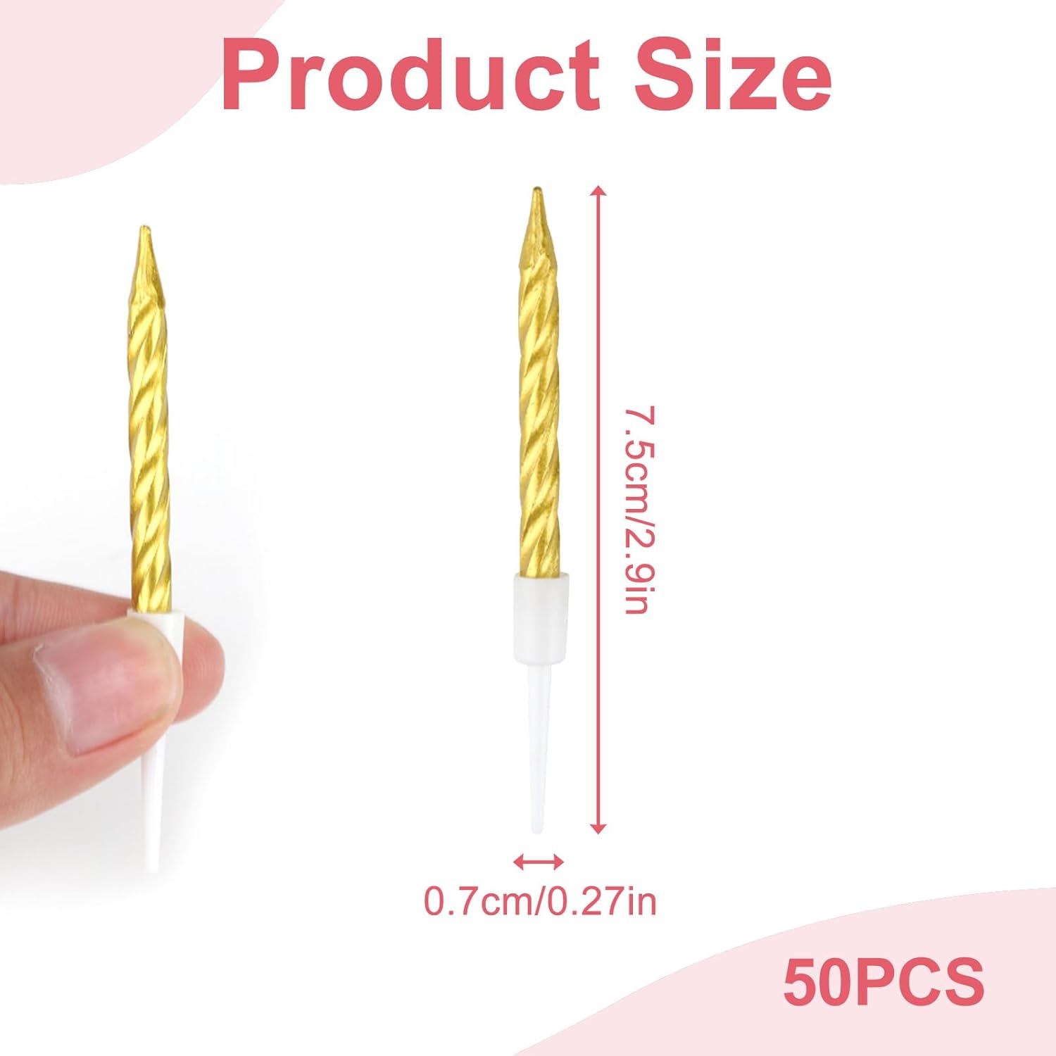 【Materiale di alta qualità】: le nostre candeline per torta a spirale sono realizzate con cera di alta qualità e sono prive di sostanze chimiche nocive, rendendole sicure per compleanni, matrimoni e altre occasioni festive in cui il cibo e la famiglia sono al centro. 【Elegante metallizzato】: candeline per torta a spirale ciascuna abbinata a semplici supporti bianchi per aggiungere un tocco di lussuosa lucentezza alle tue torte o cupcakes. Queste candele si adattano perfettamente a qualsiasi tipo di decorazione di eventi e migliorano l'atmosfera festosa. 【Per varie occasioni】: Candele di compleanno per torta Ideale per tutti i tipi di celebrazioni inclusi ma non limitati a compleanni, matrimoni, anniversari e feste. Queste candele aggiungono accenti eleganti a qualsiasi dessert o torta. Facile da usare: ogni candela per torta di compleanno è dotata di un robusto supporto in plastica che non solo mantiene le candele saldamente in posizione, ma facilita anche l'inserimento e la rimozione senza danneggiare la glassa della torta. 【Dimensioni ottimali】: con candeline di compleanno lunghe 7,5 cm e un diametro di 0,5 cm, queste candele sono ideali per una varietà di dimensioni e stili di torte. Sono abbastanza discreti, ma accattivanti, da servire come punto focale della tua celebrazione.