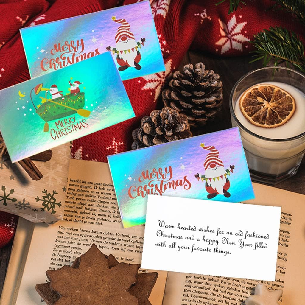 Perfettamente progettato con raffinatezza e presentazione elegante ed efficace. Splendidamente stampato con colori ricchi e tipografia raffinata. La giusta dimensione, comoda da trasportare e riporre. Misura 3,54x1,97 pollici quando piegato e tirato in avanti a metà per piegarlo facilmente e trasformarlo in un biglietto per appunti ordinato. Ideale per biglietti di auguri di Natale e Capodanno, inviti per feste, biglietti di auguri personali o aziendali, partecipazioni di nozze e molto altro ancora. Realizzato con una carta di carta di alta qualità per una maggiore durata. Ogni biglietto è dettagliato in modo professionale utilizzando colori vivaci e caratteri vibranti ed eleganti senza sbavature.