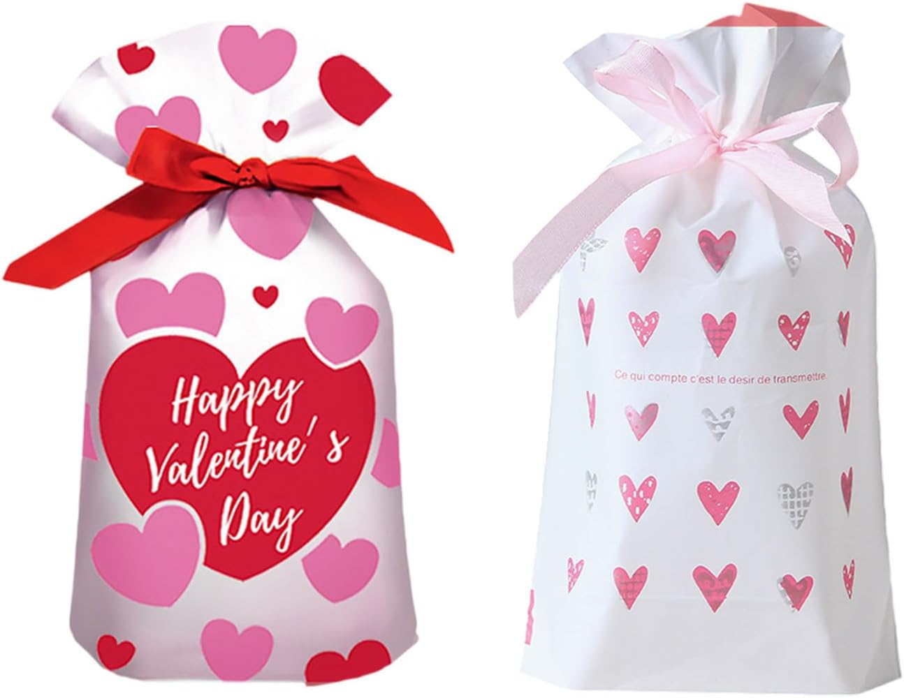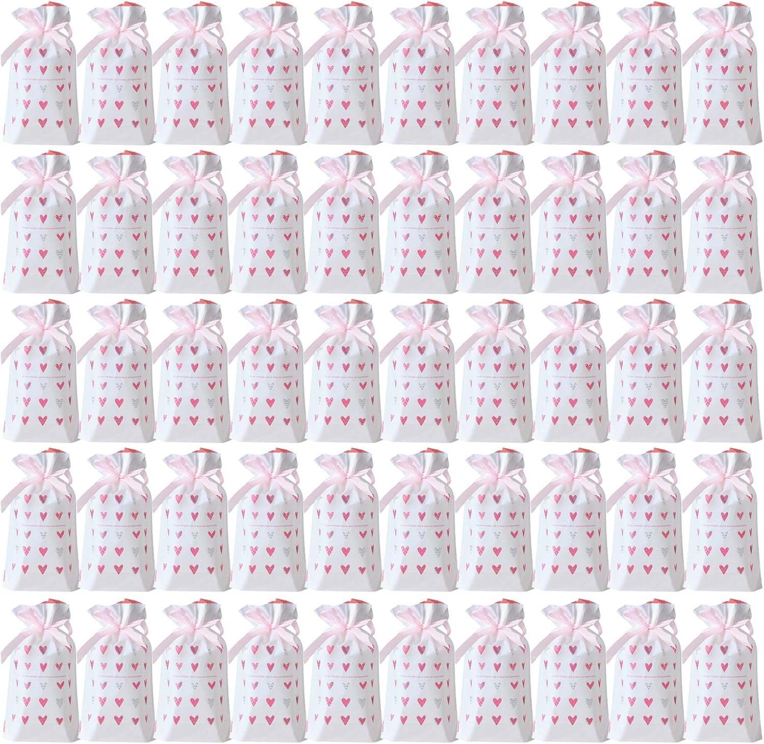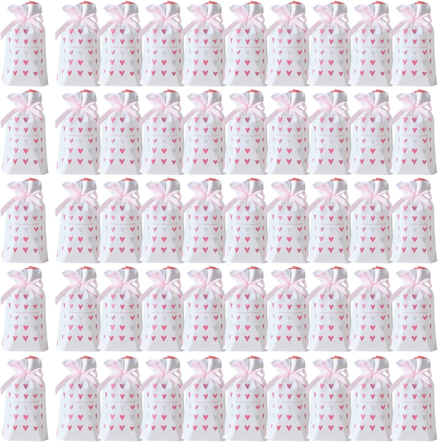 50 eleganti sacchetti con coulisse con design a cuore per regali di San Valentino e occasioni romantiche, sacchetti con nastro robusto morbido e sacchetti