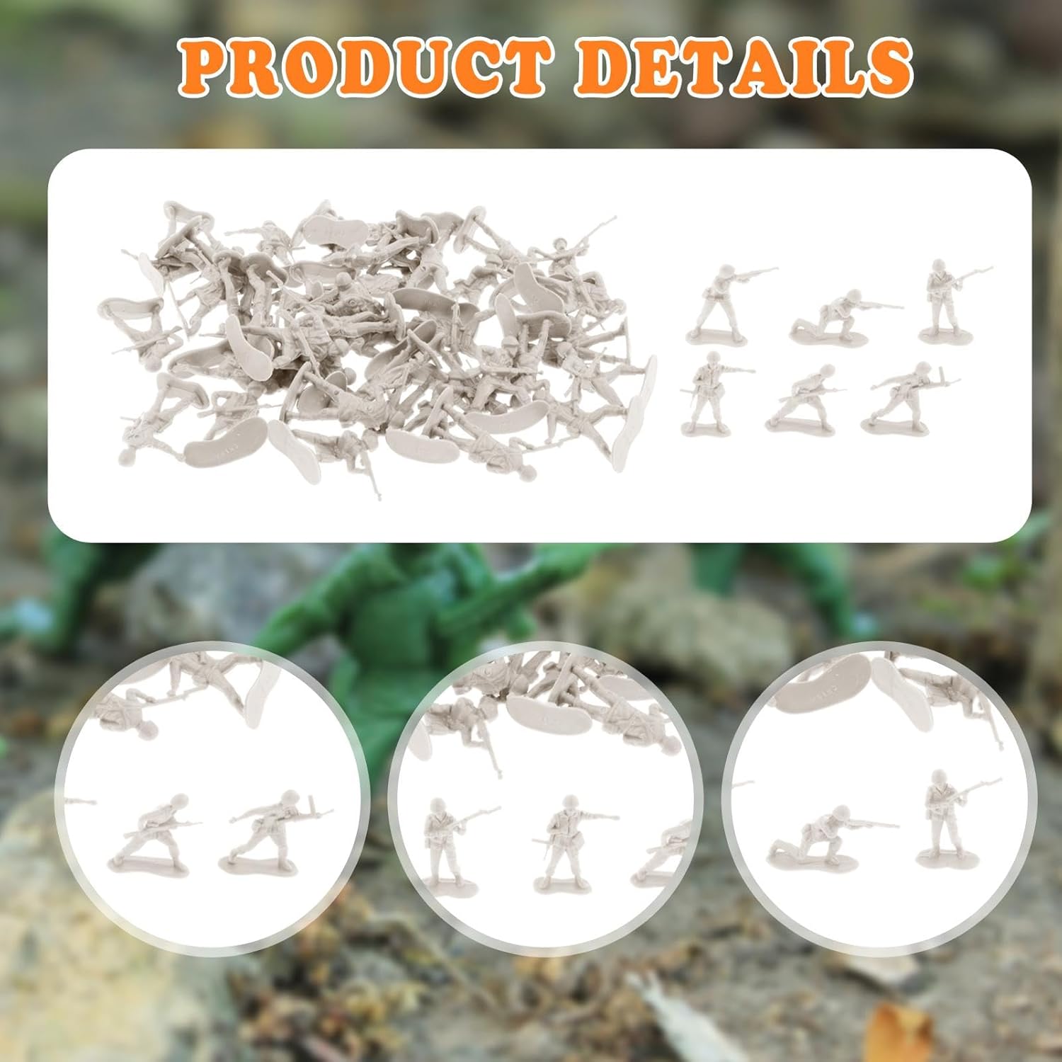 【Materiale premium】: realizzate in PP di qualità, queste statuette in miniatura sono progettate per resistere a ore di gioco mantenendo la loro forma e i loro dettagli 【Set di gioco coinvolgente】: questo kit di modelli di soldati in scala 1:35 è progettato con una varietà di pose di soldati, ottimo per creare scenari coinvolgenti 【Istruttivo e divertente】: incoraggia la creatività e il del tuo bambino consentendogli di disporre le figure dei mini soldatini in varie formazioni 【Set completo】: il pacchetto include 50 modelli di soldati in scala 1:35, fornendo ampi pezzi per creare diverse scene di battaglia o combinarli con altri set per un divertimento ancora maggiore 【Dimensioni adatte alle manine】: Ogni mini soldato è alto circa 4 cm-5 cm/1,57 pollici-1,97 pollici, il che lo rende facile da maneggiare e manovrare anche per le manine più piccole durante il gioco.