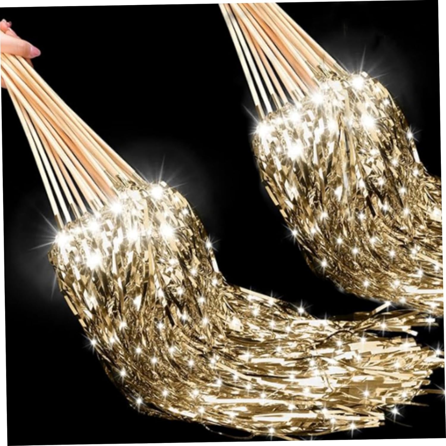 Bastone di legno: realizzate con robusti bastoncini di legno, queste bacchette sono facili da tenere e agitare, garantendo un utilizzo confortevole durante il ricevimento di nozze o i momenti di saluto senza scivolare o rompersi Oggetti di scena versatili: perfetti per i matrimoni, le bacchette luminose fungono anche da stelle filanti e bastoncini di nastro, fornendo un'alternativa elegante e sicura alle tradizionali stelle filanti per matrimoni per foto di invio memorabili Confezione sfusa per grandi eventi: questo set da 50 consente la partecipazione di grandi gruppi, ideale per dare a tutti gli ospiti una partecipazione all'esperienza di addio festivo senza rimanere a corto, aumentando l'eccitazione e la celebrazione collettive Elegante design luminoso: queste bacchette da matrimonio in tinsel dorato a LED da 50 pezzi sono dotate di luci brillanti e scintillanti che creano un'atmosfera magica per l'addio del tuo matrimonio, migliorando la tua celebrazione con una luce calda e incantevole Facile da usare e sicuro: le bacchette LED alimentate a batteria non richiedono fiamme, il che le rende un'opzione più sicura rispetto alle tradizionali stelle filanti pur offrendo straordinari effetti di luce che completano magnificamente il tuo evento