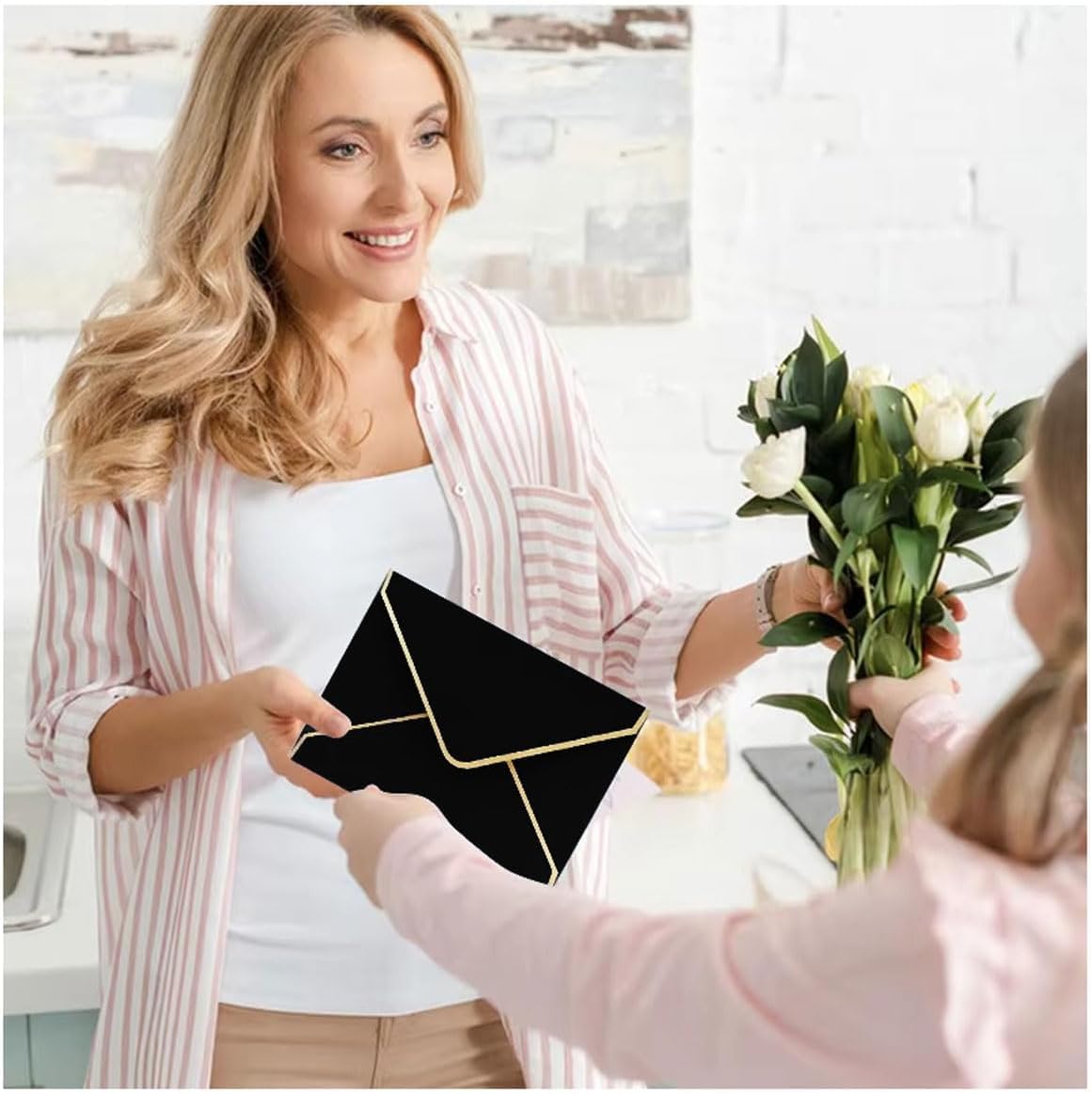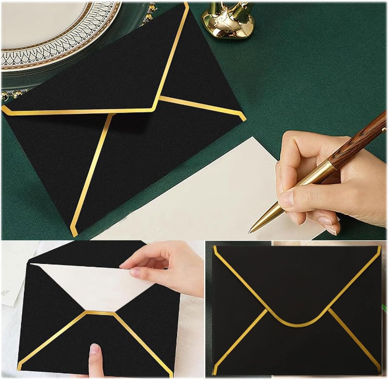 Buste di invito formato applicazione: Buste di invito formato sono una scelta elegante per le tue occasioni speciali. Il loro aspetto semplice e il bordo dorato conferiscono loro un'aria elegante e misteriosa. Sono perfetti per matrimoni, compleanni o eventi aziendali. Con il loro design classico, puoi invitare gli ospiti con stile e lasciare un ricordo indelebile. Buste Eleganti per biglietti di auguri quantità e dimensioni: Riceverai 50 Buste Eleganti per biglietti di auguri all'arrivo, con dimensioni 13,5 x 18,5 cm. Buste per invito materiale: Buste per invito sono realizzati in carta kraft di alta qualità per proteggere in modo sicuro i tuoi inviti. La superficie è liscia e piacevole al tatto. Sono ideali per eventi esclusivi come feste o balli. Il design semplice ma accattivante li rende un accessorio elegante e accende la curiosità dei tuoi ospiti. Buste vuote versatili: Questi lussuosi Buste vuote e i loro colori vivaci conferiscono loro un aspetto creativo. Sono adatti per matrimoni, compleanni, feste, lauree, spettacoli musicali e altro ancora. Piccolo Buste da lettera design: Piccolo Buste da lettera presenta una busta per inviti con patta a V e bordo in lamina dorata, raffinata ed elegante. Il materiale di alta qualità non si strappa o si rompe facilmente, il che lo rende la nostra scelta ideale.